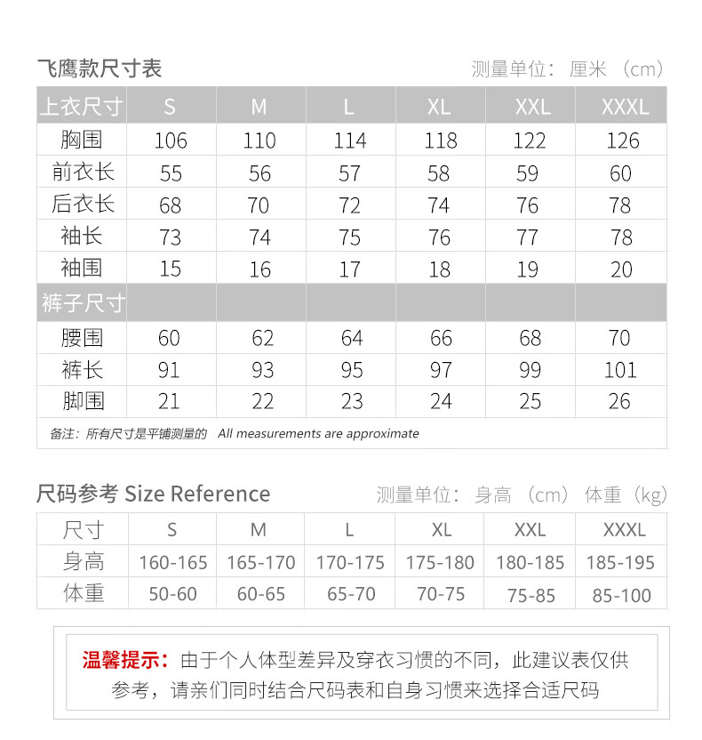 China (cm) 165 / 88-90 170 / 96-98 175 / 108-110 180 / 118-122 185 / 126-130