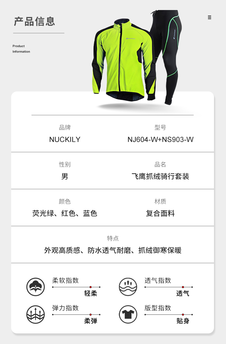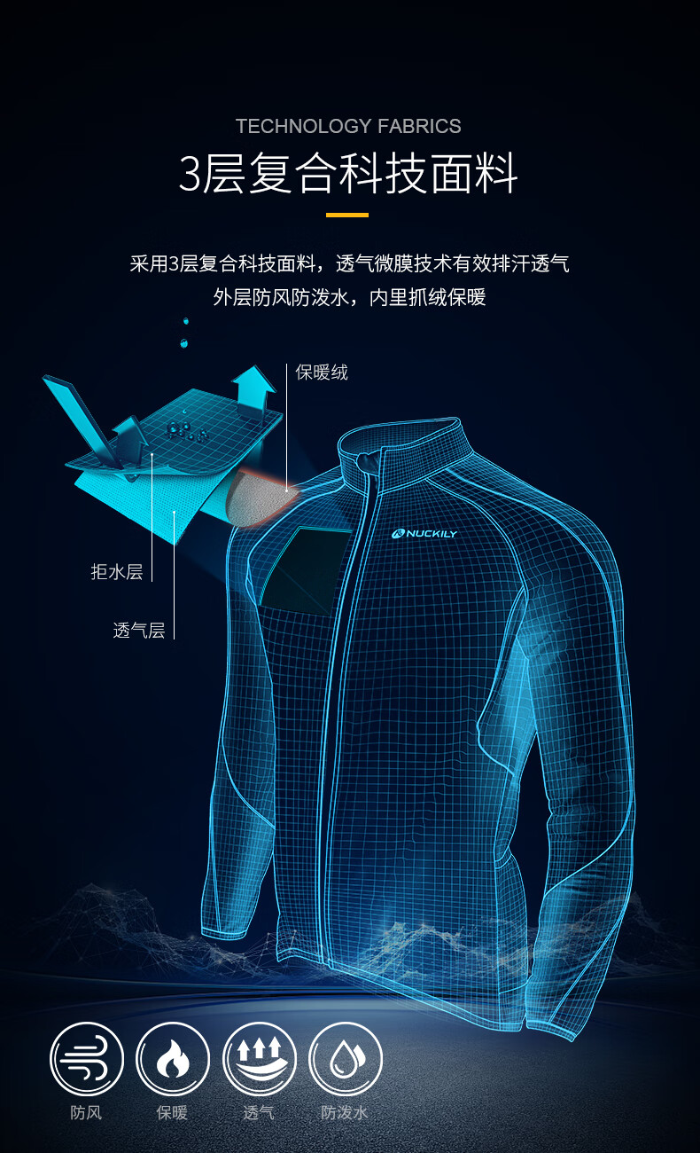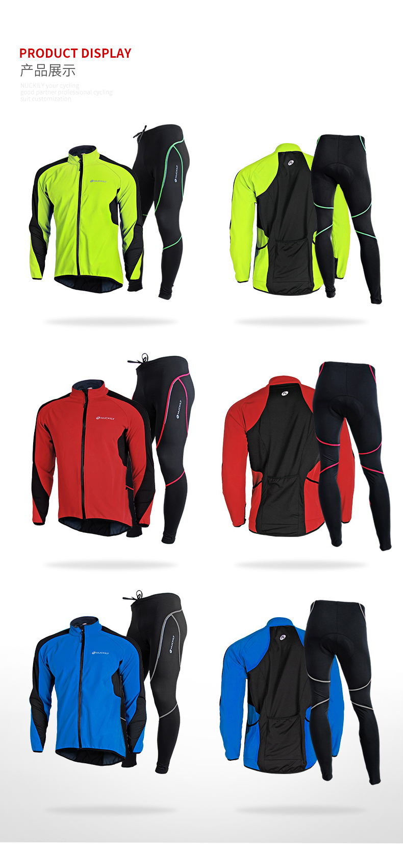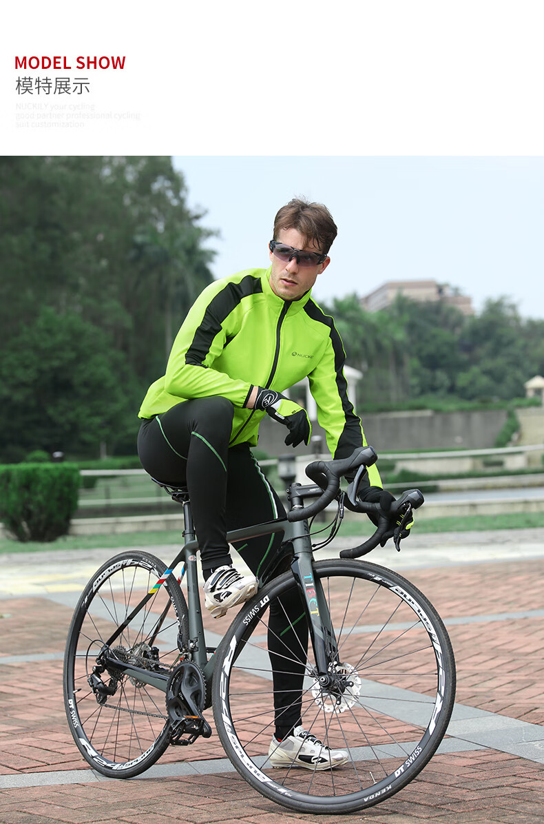 NUCKILY Cycling Suit Road Bicycle Men's Long Pants Long Sleeve Top Jacket Cycling Equipment Windproof Warm Suit NJ604 Blue XL Recommended Weight 70-75kg
