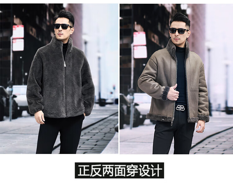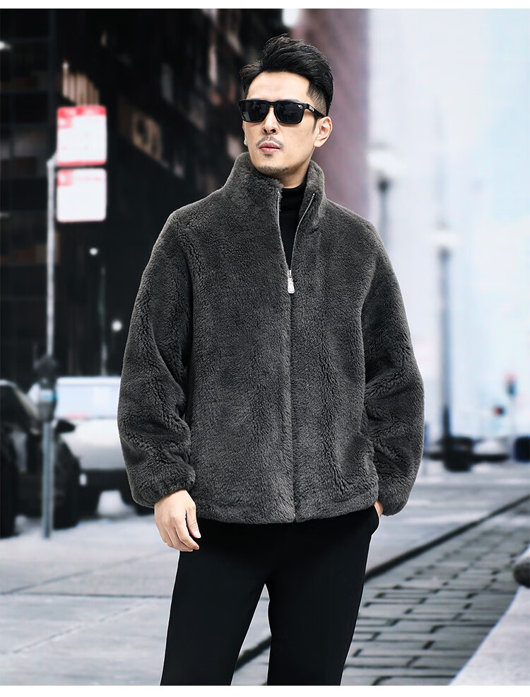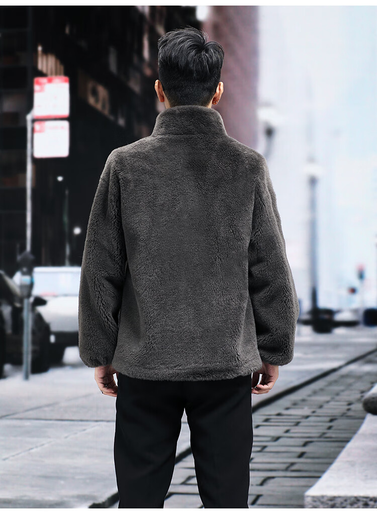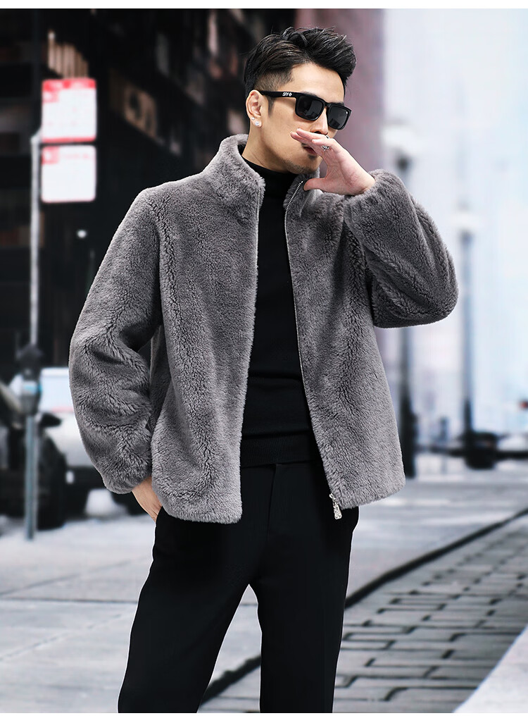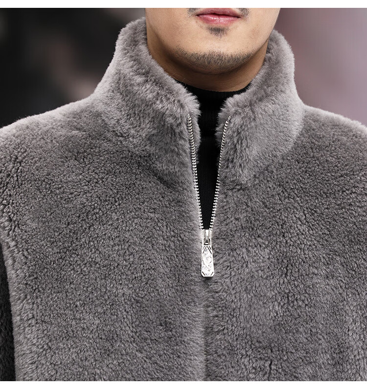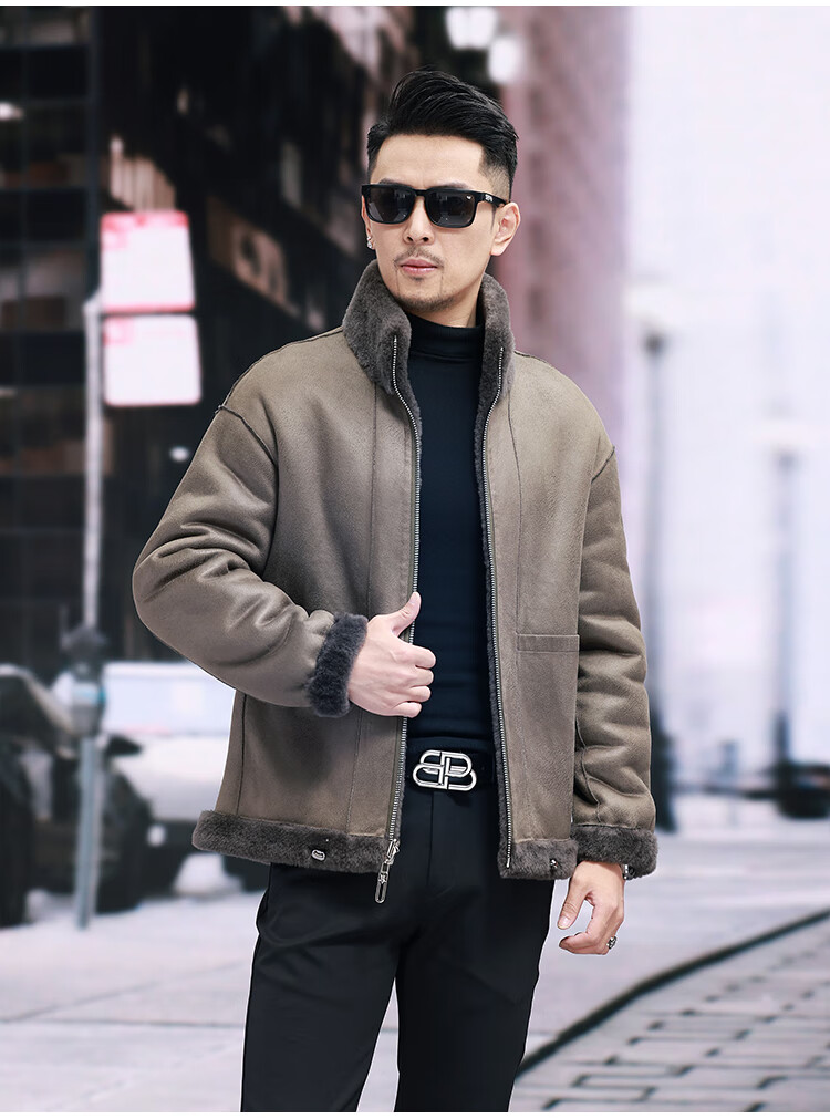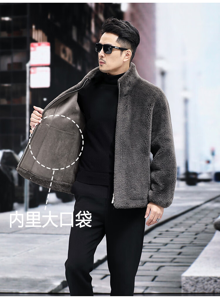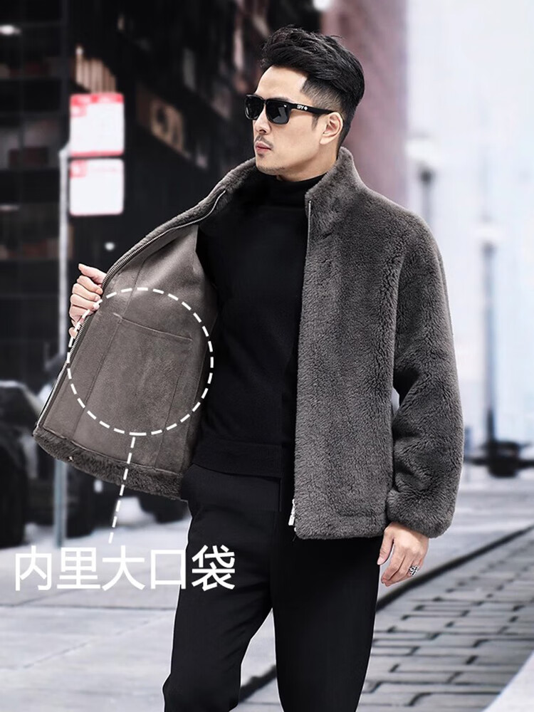 Pierre Cardin 100% Wool Fur Jacket Men's Autumn and Winter Stand Collar Sheep Shear Fur One-piece Thick Coat Sheep Wool Jacket Tan XL 130 to 145 Jin Jin equals 0.5 kg Wear