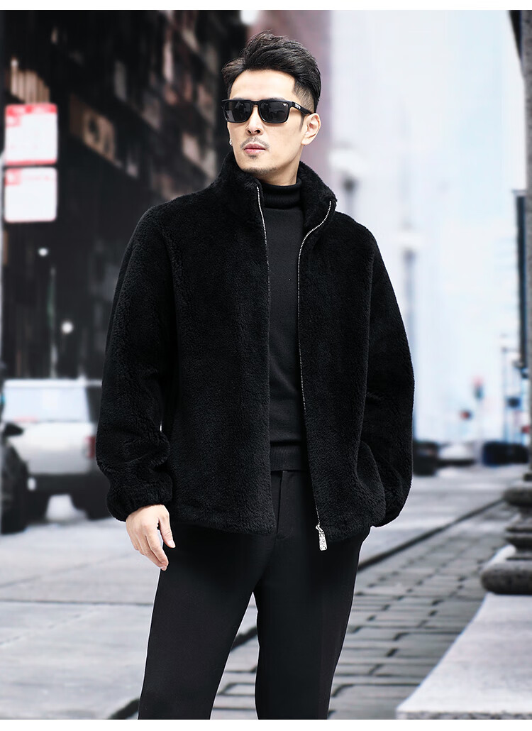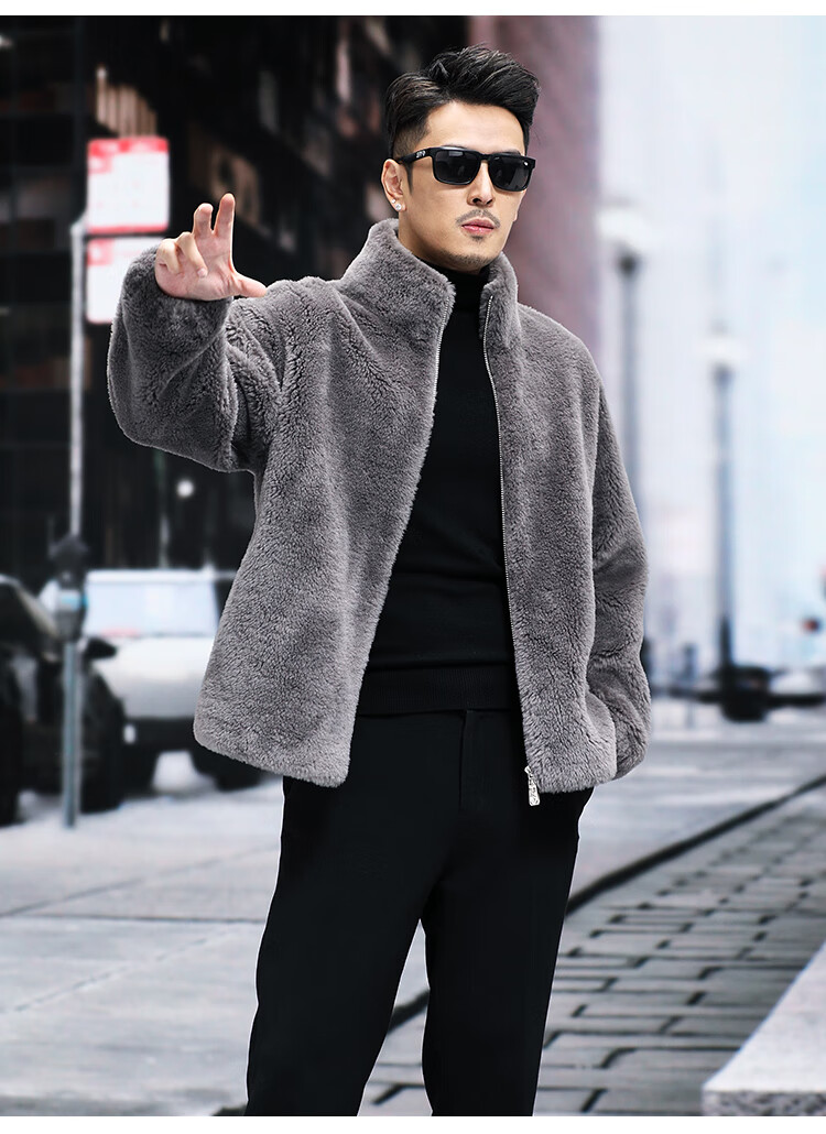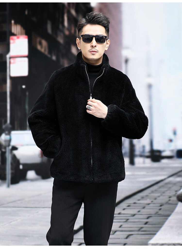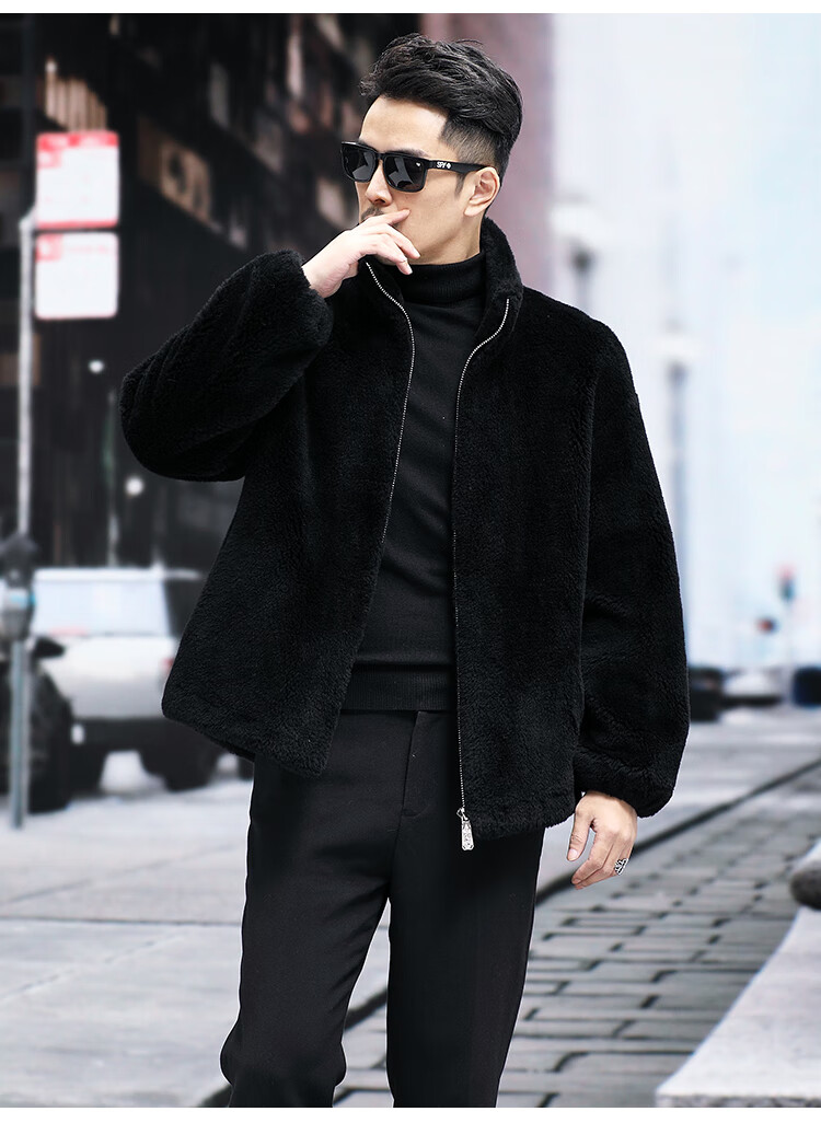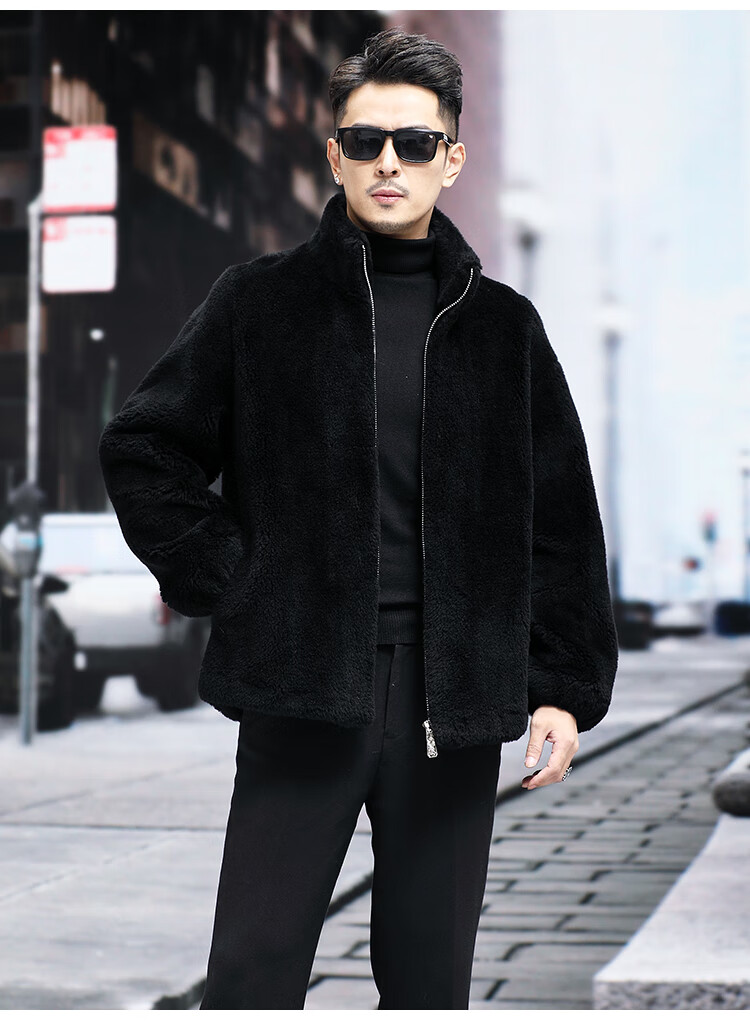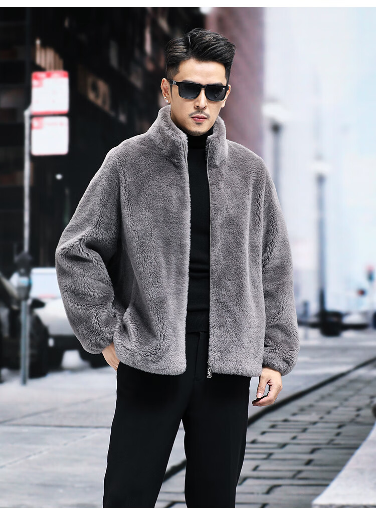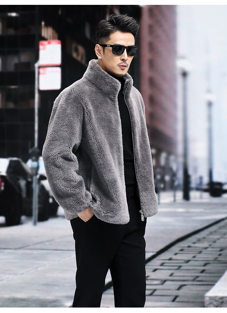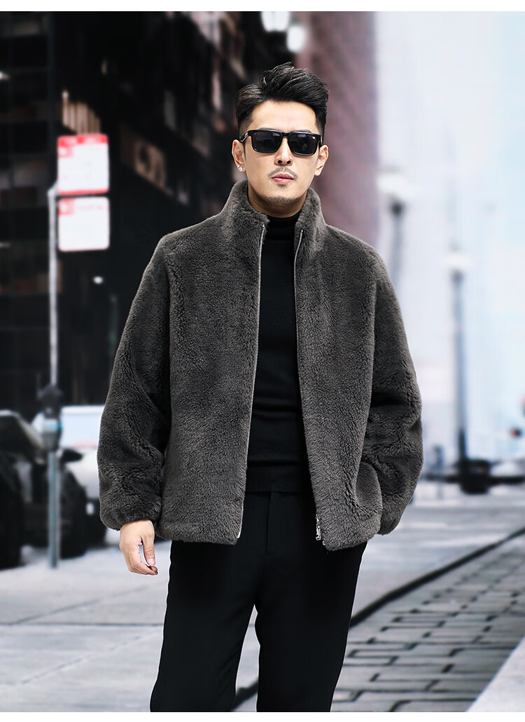 Pierre Cardin 100% Wool Fur Jacket Men's Autumn and Winter Stand Collar Sheep Shear Fur One-piece Thick Coat Sheep Wool Jacket Tan XL 130 to 145 Jin Jin equals 0.5 kg Wear