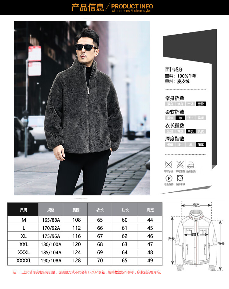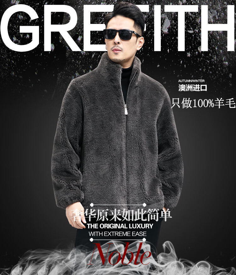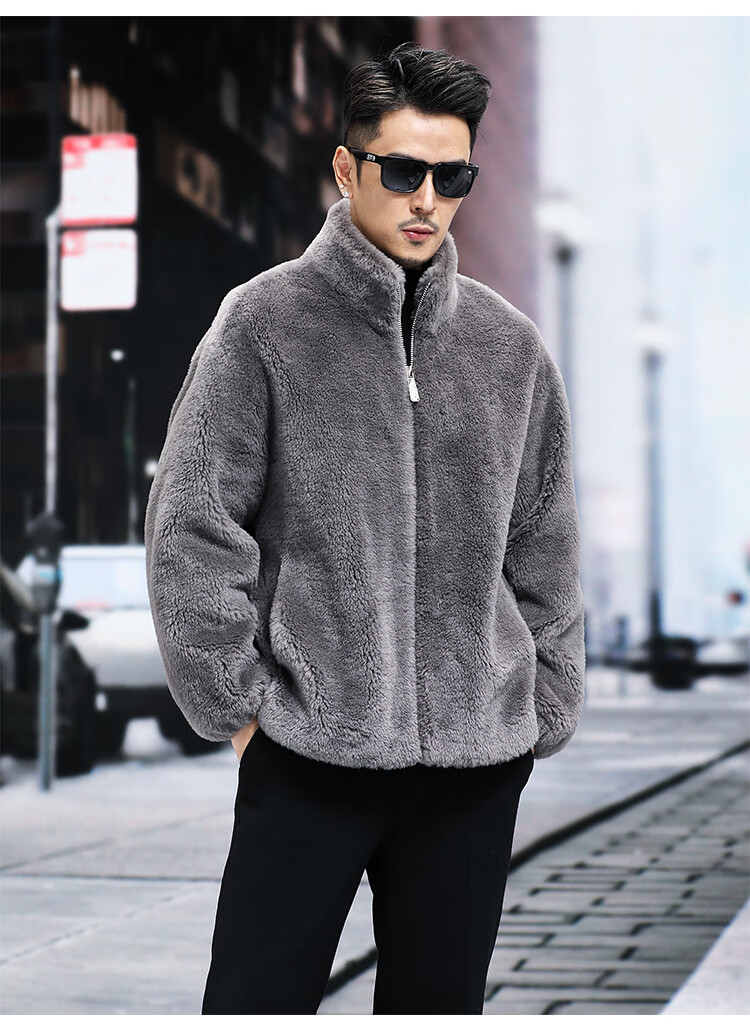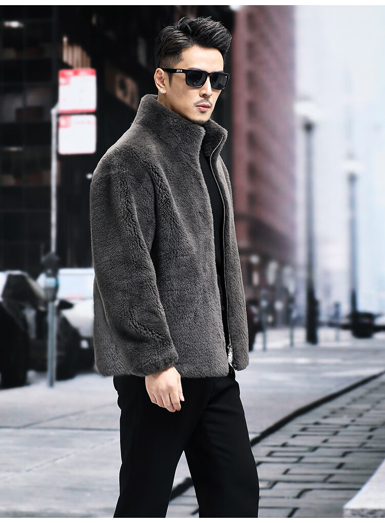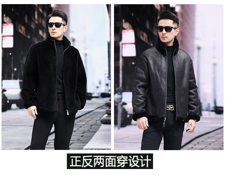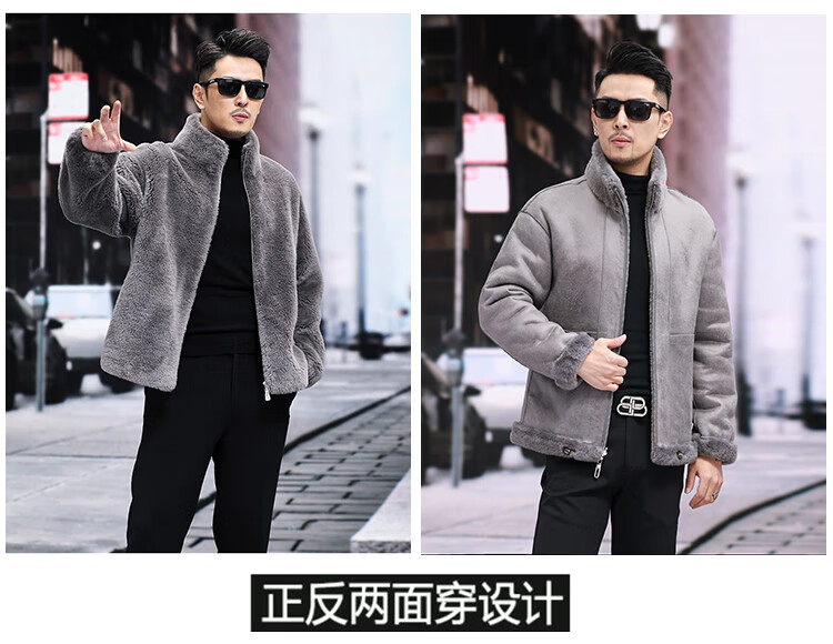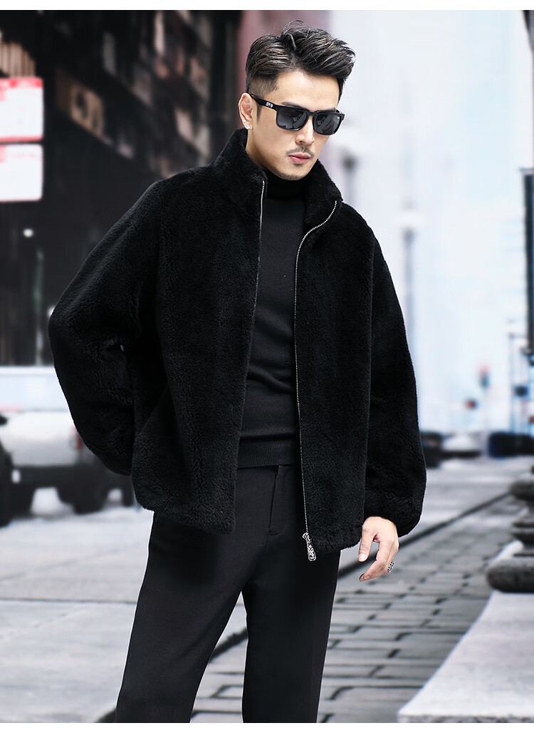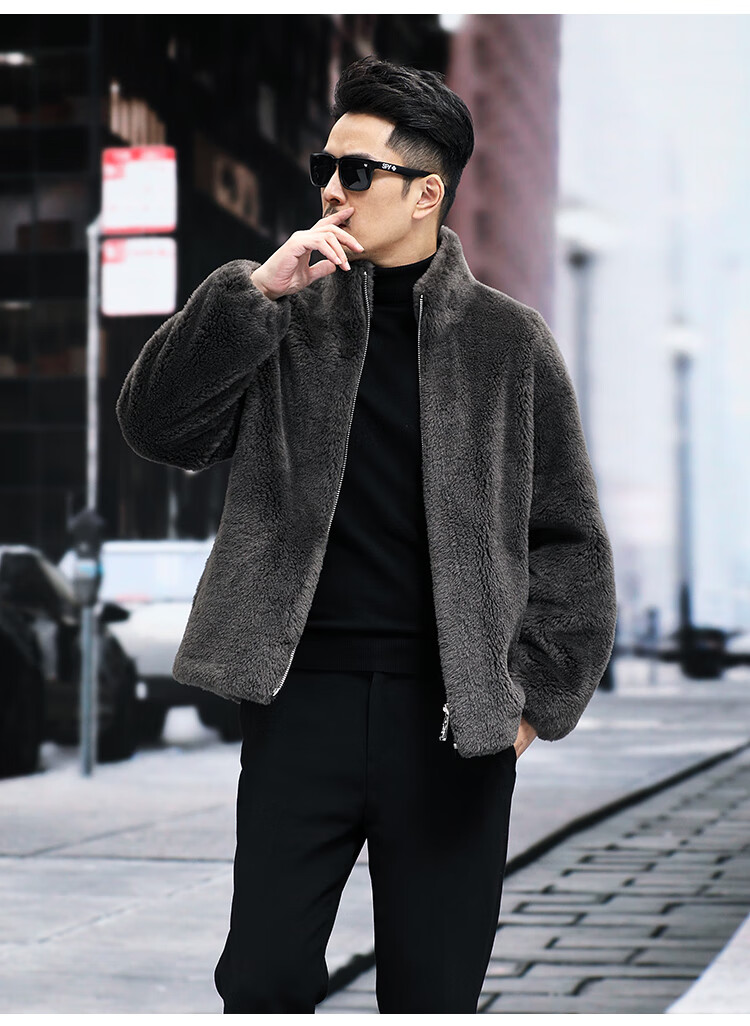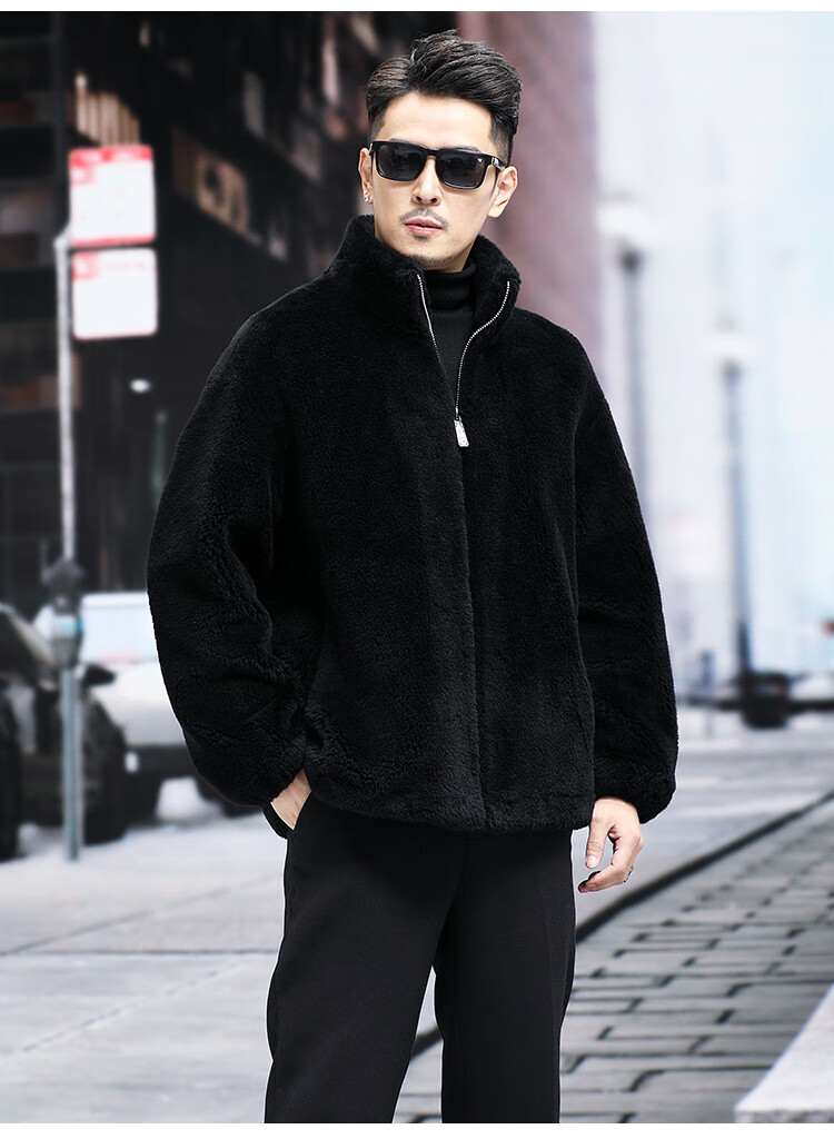 Pierre Cardin 100% Wool Fur Jacket Men's Autumn and Winter Stand Collar Sheep Shear Fur One-piece Thick Coat Sheep Wool Jacket Tan XL 130 to 145 Jin Jin equals 0.5 kg Wear