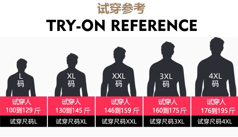 China (cm) 165 / 88-90 170 / 96-98 175 / 108-110 180 / 118-122 185 / 126-130