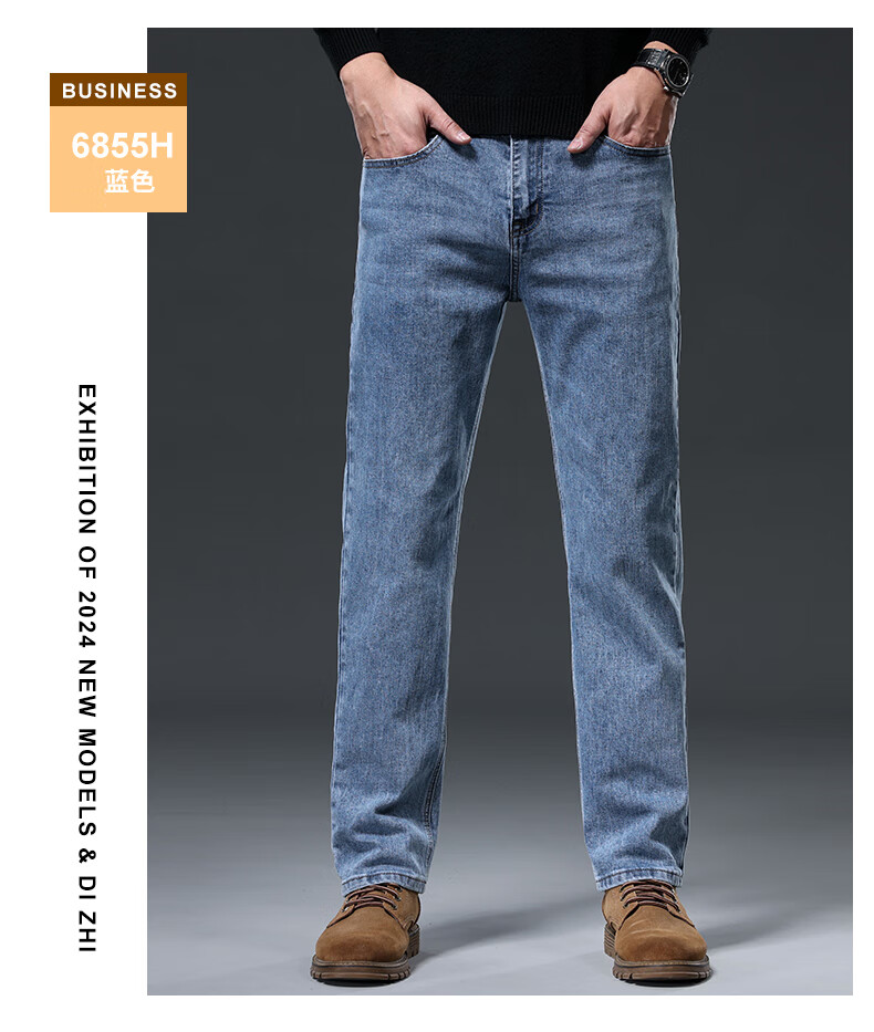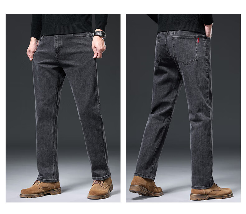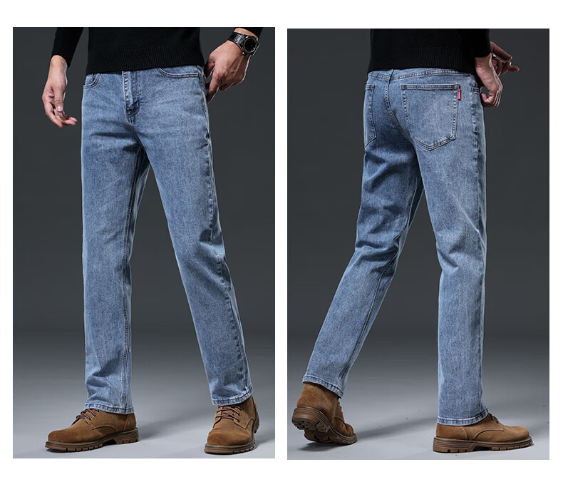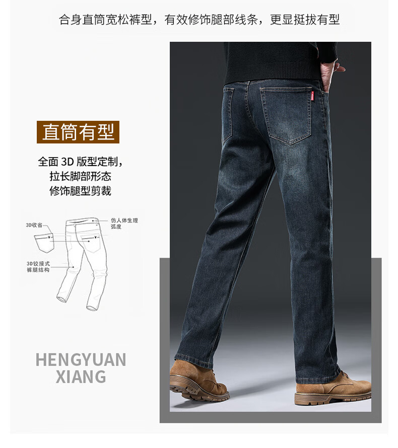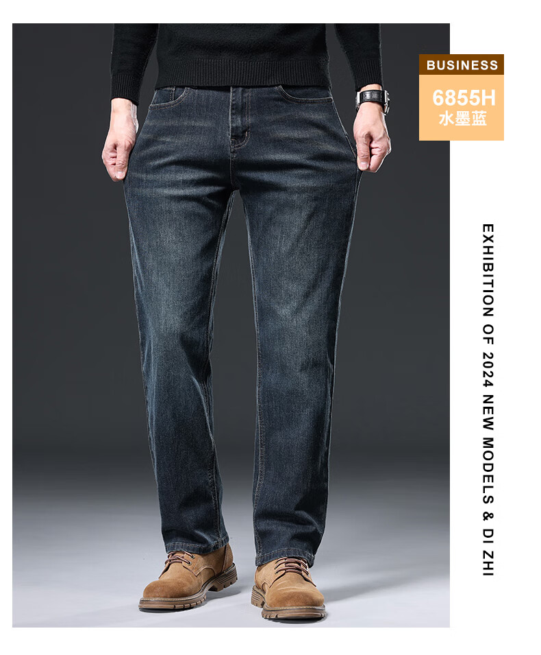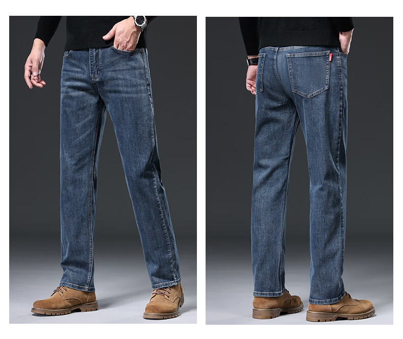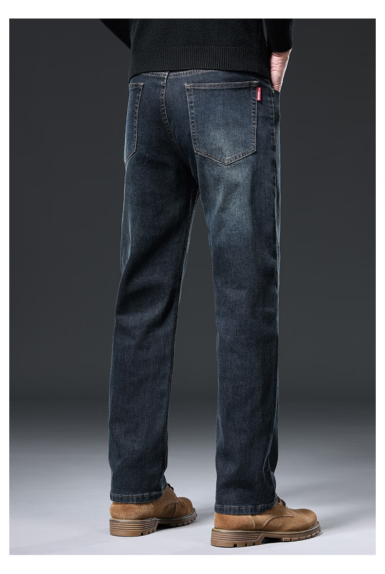 Baleno S&K series jeans for men in autumn and winter plus velvet and thickened straight loose wide-leg elastic casual business long pants for men 6855 ink blue 32 waist circumference 2 feet 5