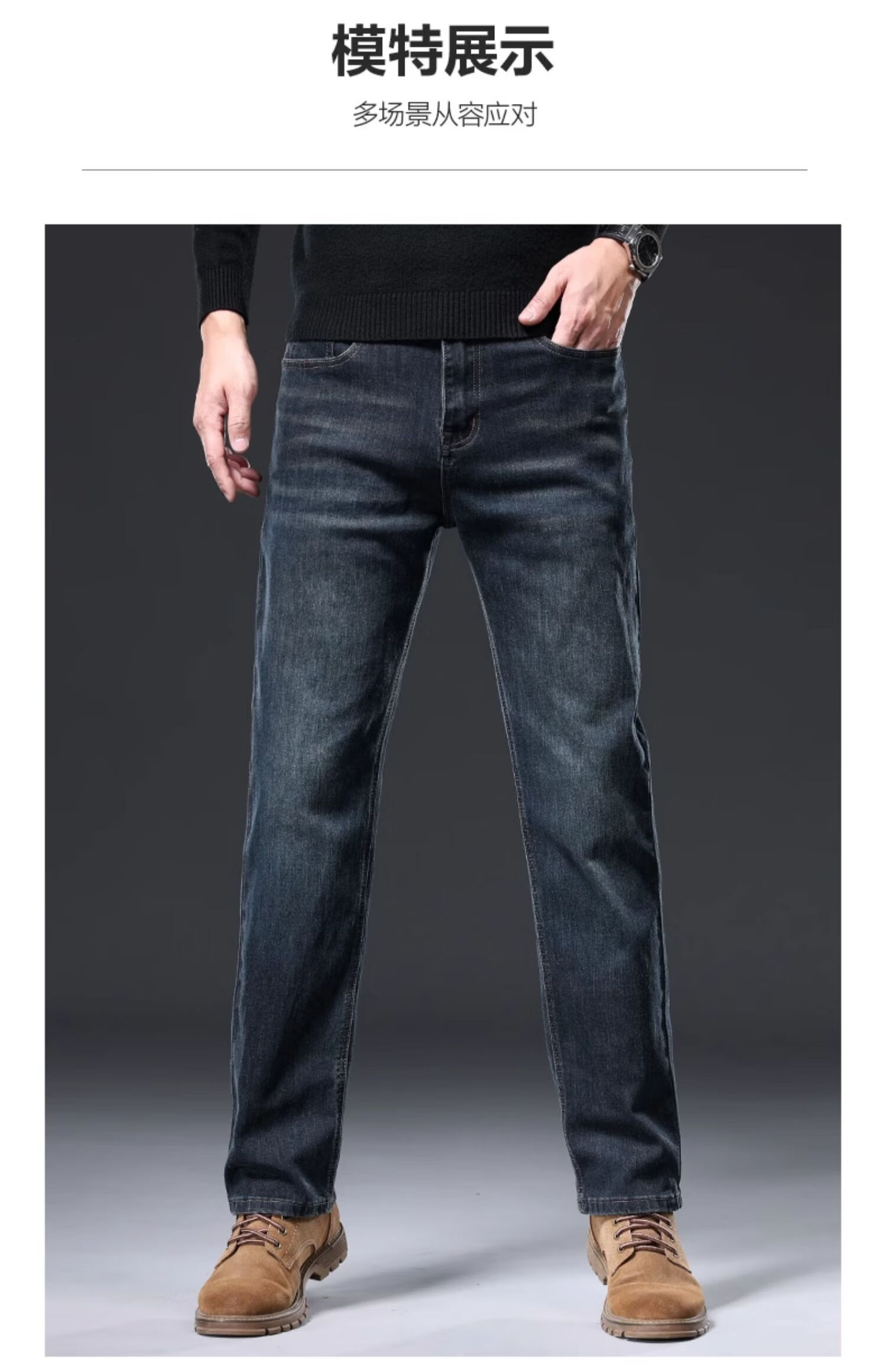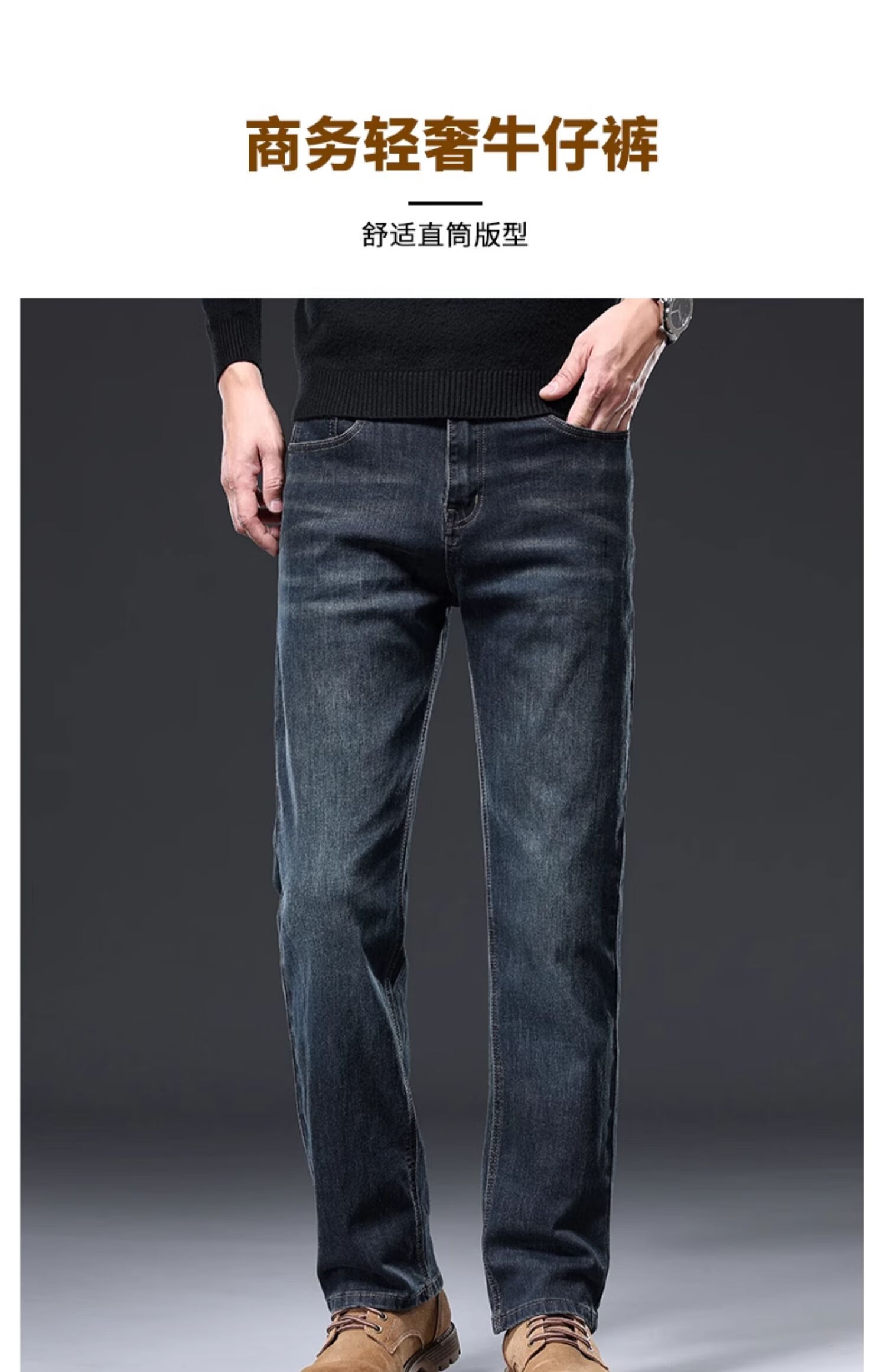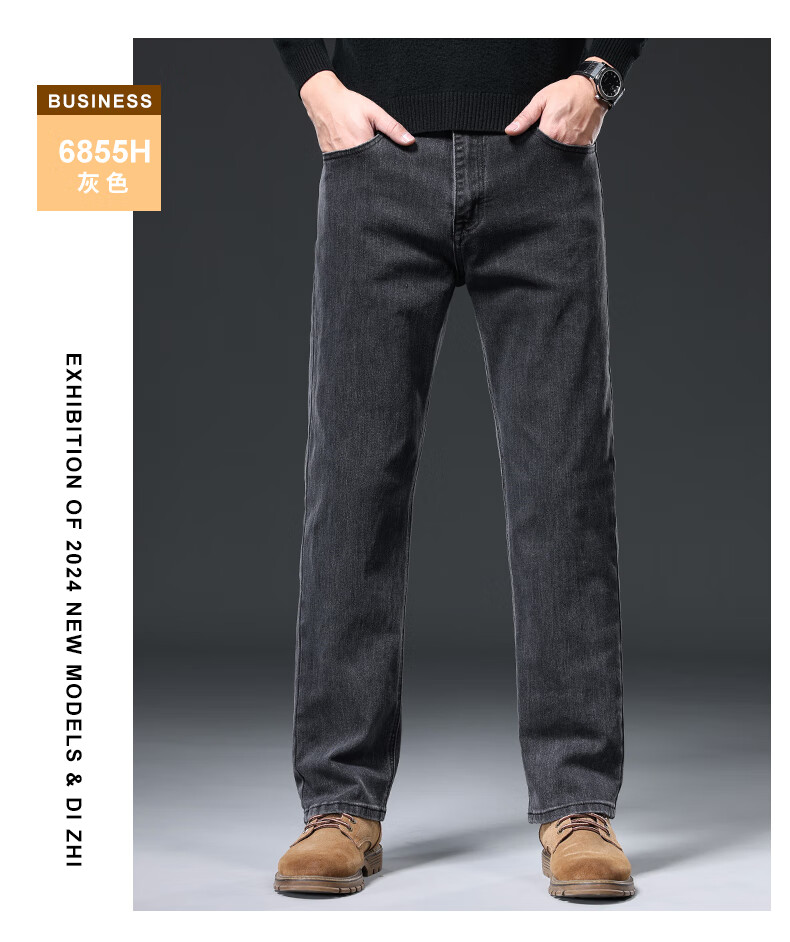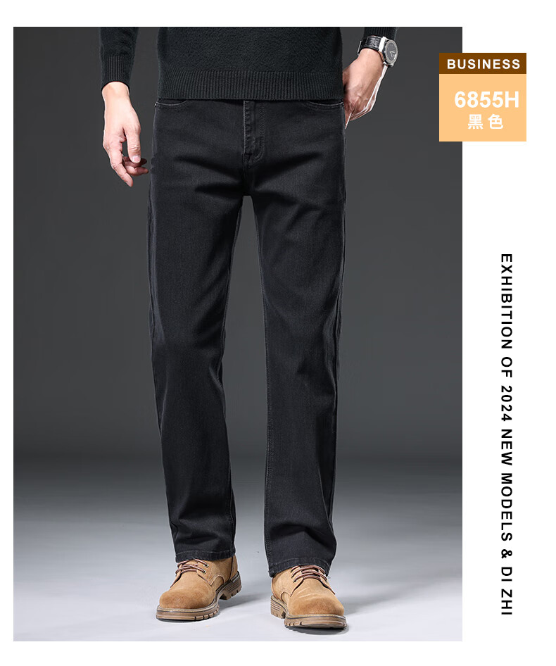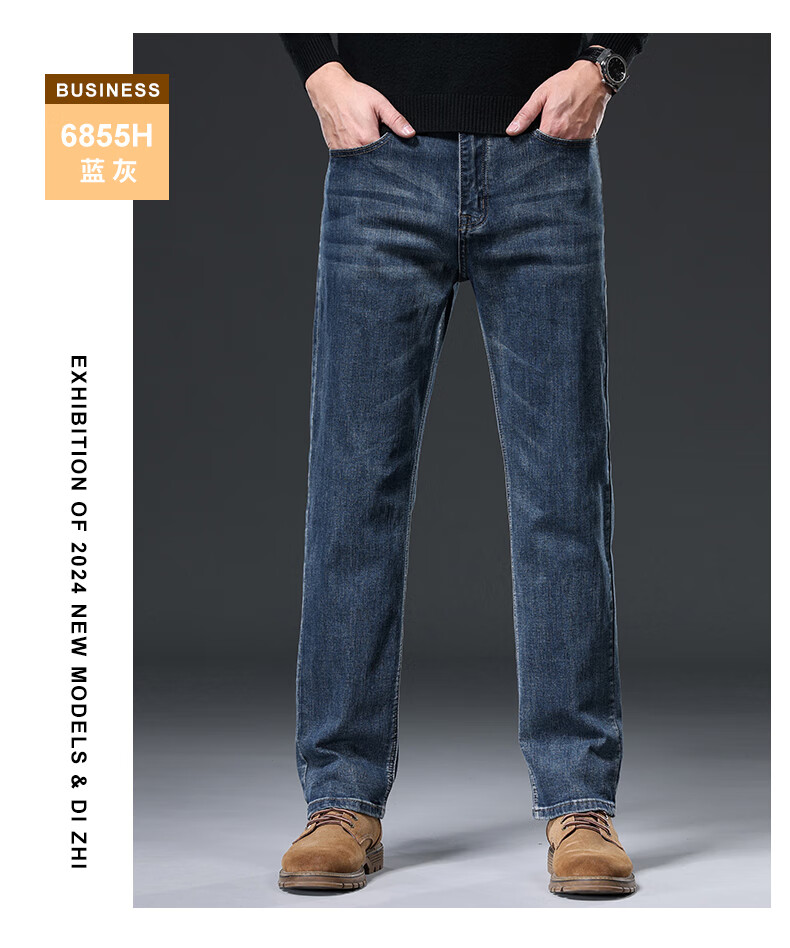 Baleno S&K series jeans for men in autumn and winter plus velvet and thickened straight loose wide-leg elastic casual business long pants for men 6855 ink blue 32 waist circumference 2 feet 5