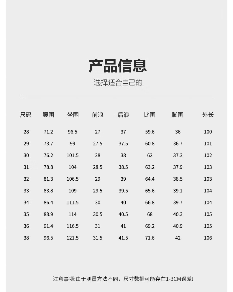 Outseam (cm) 99 cm 101.5 cm 104 cm 106.5 cm 109 cm