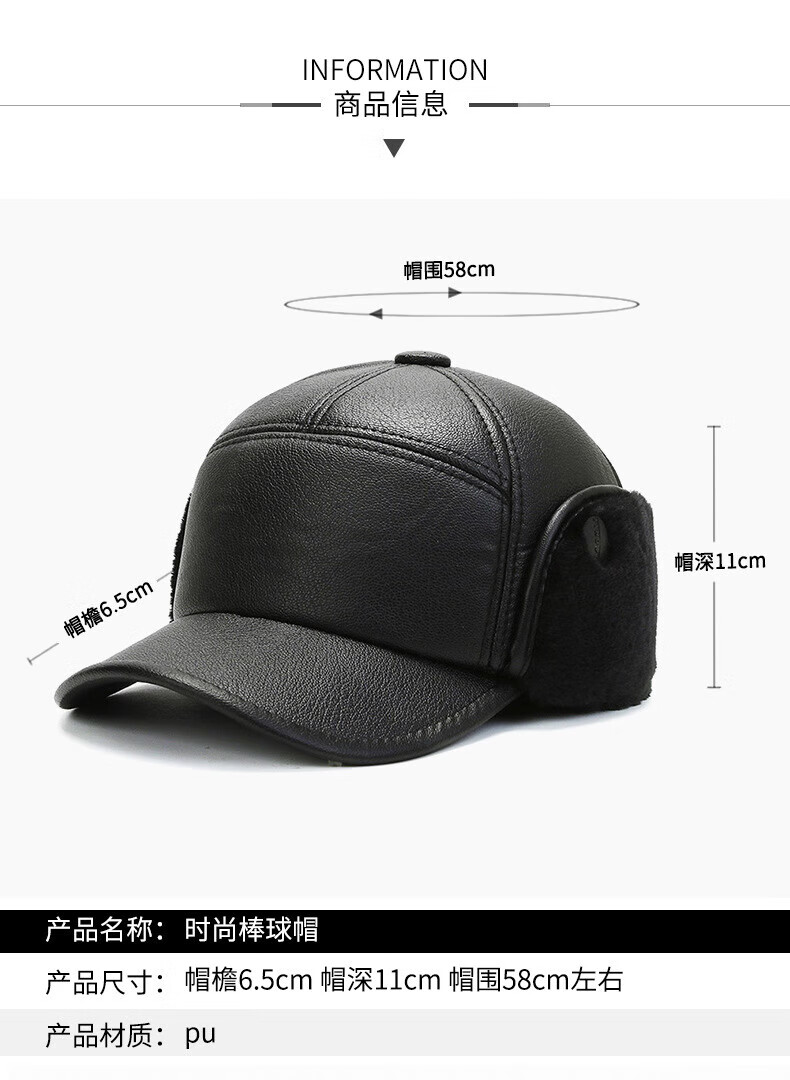 Selected Winter Warm Hats Men's Thickened Warm Old Hats Middle-aged and Elderly Plus Velvet Ear Protection Hats Black