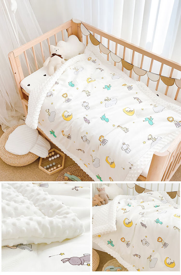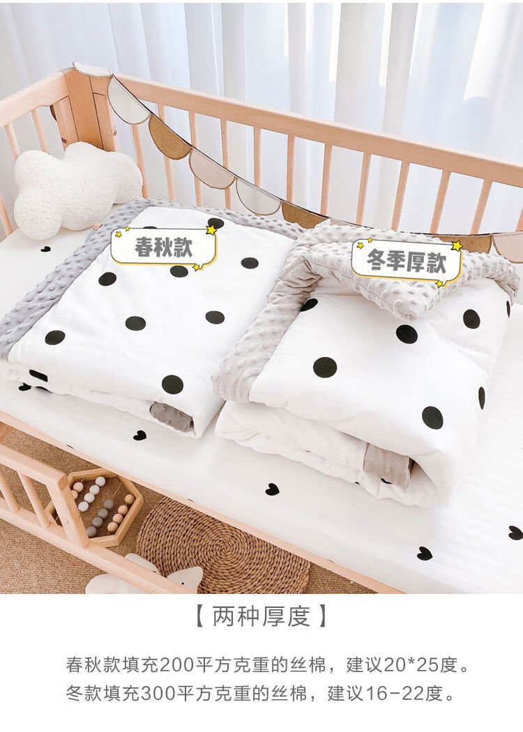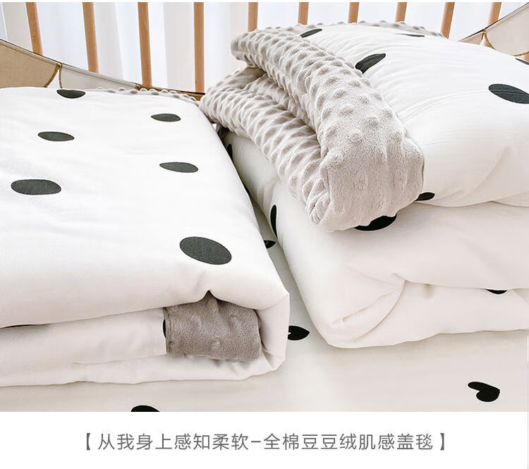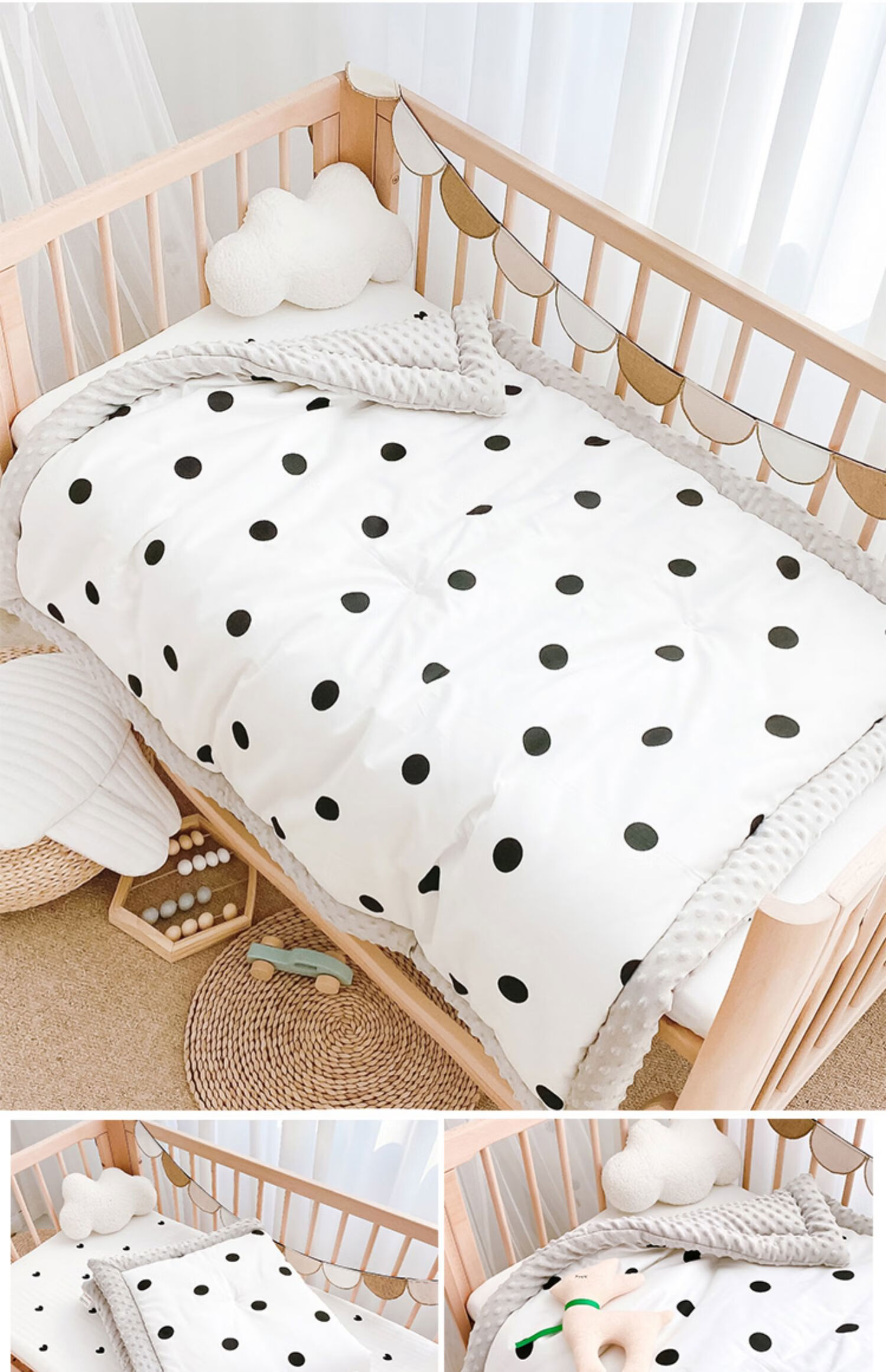 Japanese imported baby quilt pure cotton spring and autumn thin cotton baby beanie comfort blanket newborn autumn and winter small quilt gray edge large polka dot spring and autumn style 120x150cm