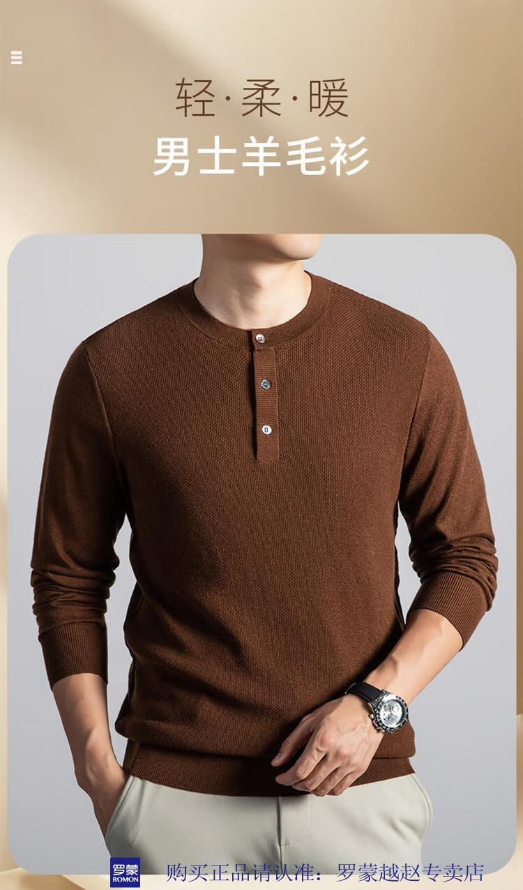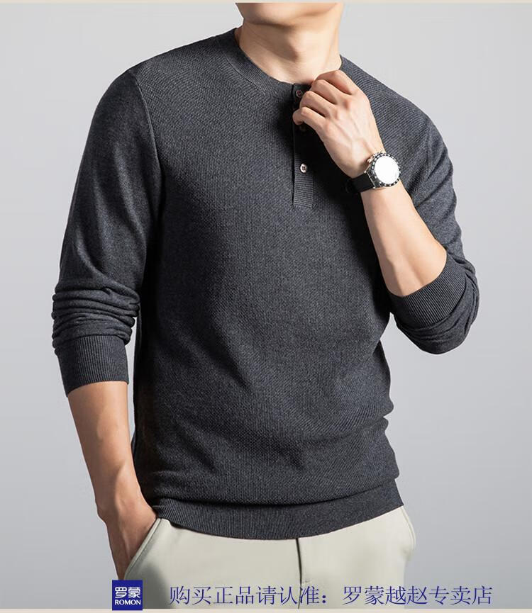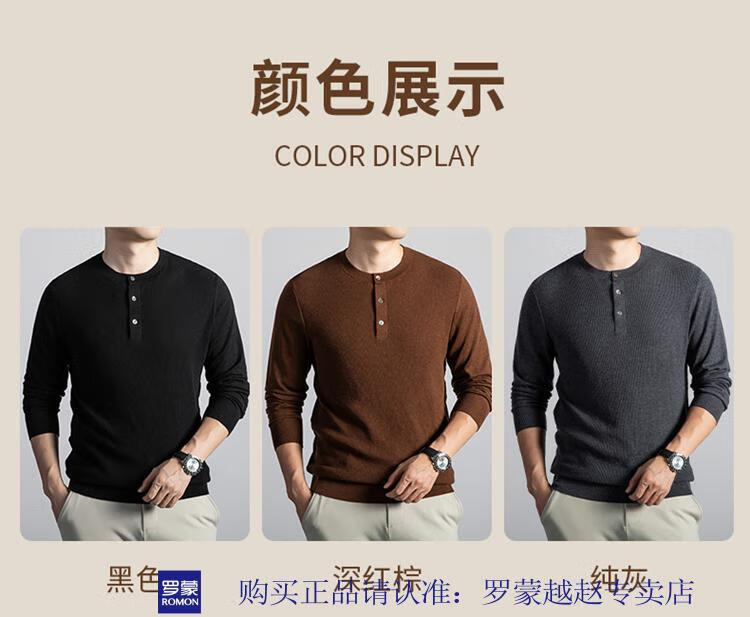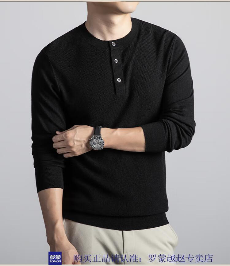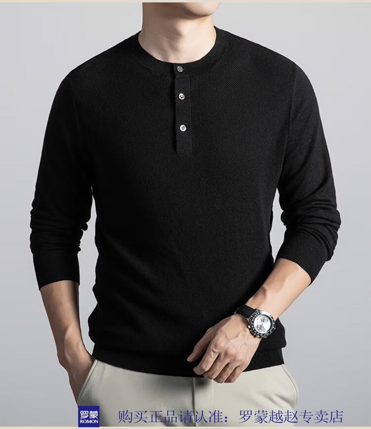 Luo Meng high-end wool sweater solid color Henry collar pullover sweater for men in autumn and winter, simple and light luxury temperament, black M 165/80A