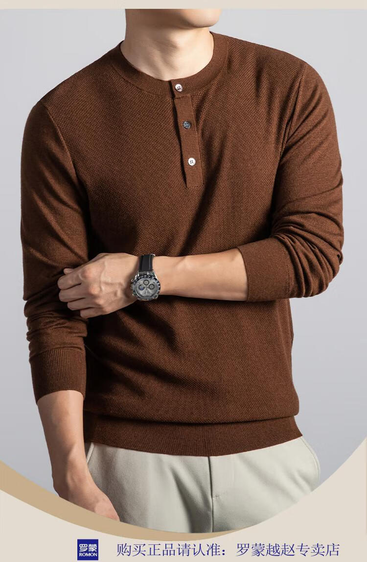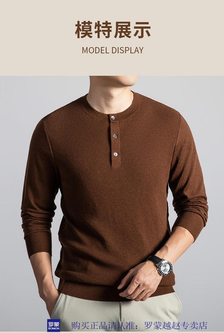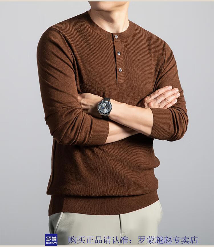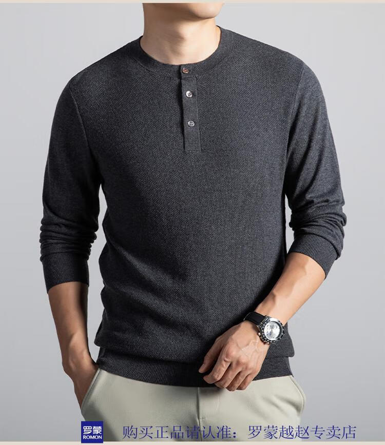 Luo Meng high-end wool sweater solid color Henry collar pullover sweater for men in autumn and winter, simple and light luxury temperament, black M 165/80A