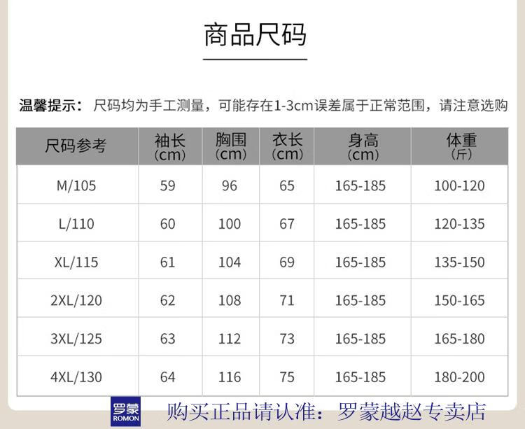 China (cm) 165 / 88-90 170 / 96-98 175 / 108-110 180 / 118-122 185 / 126-130