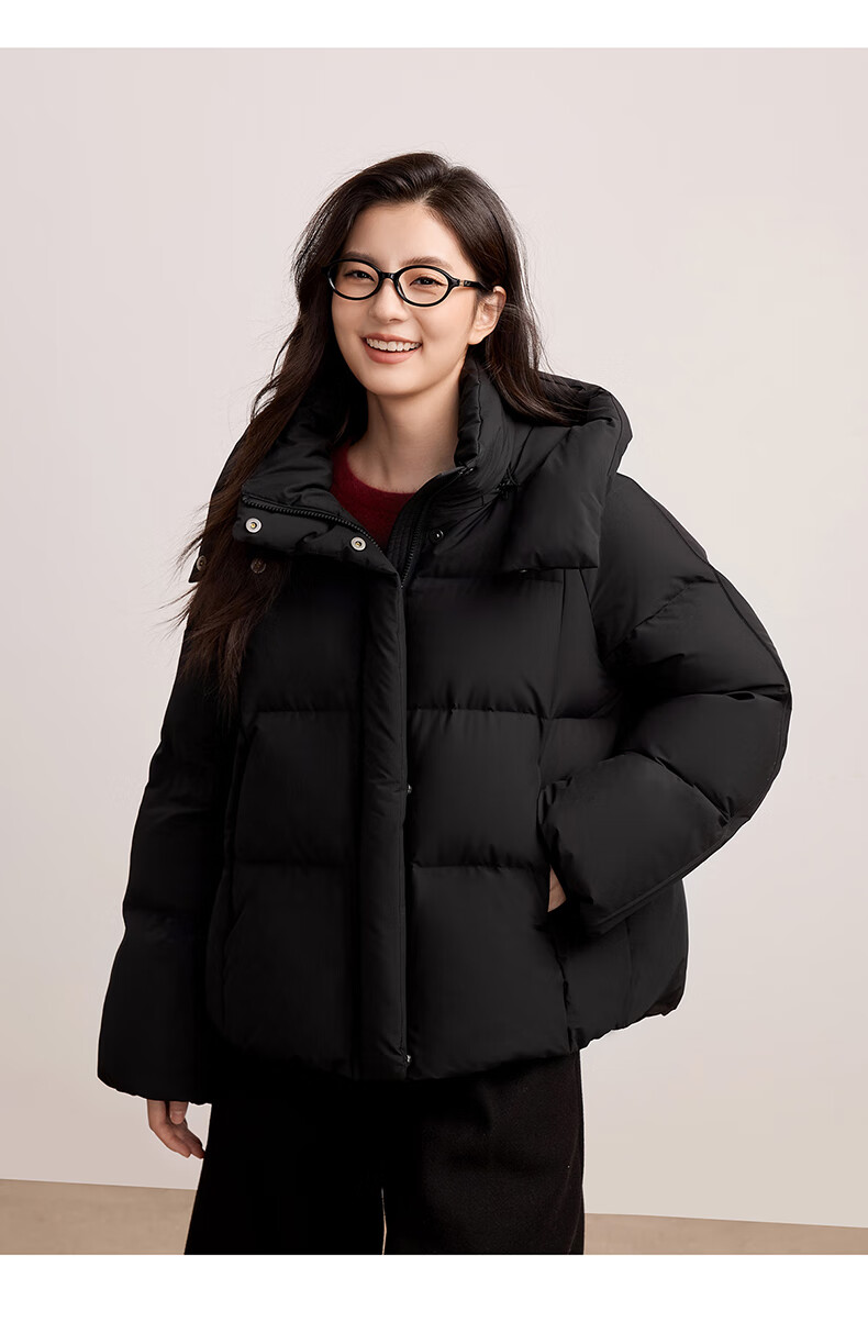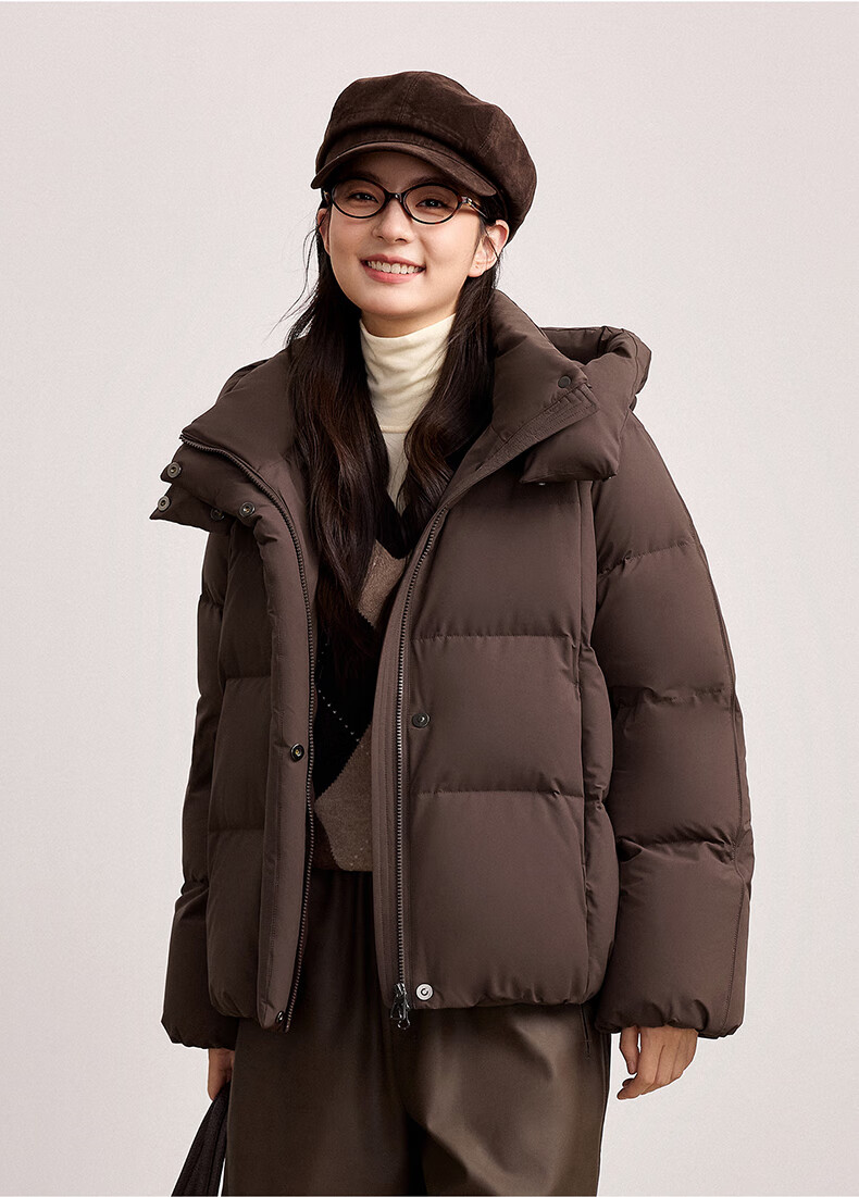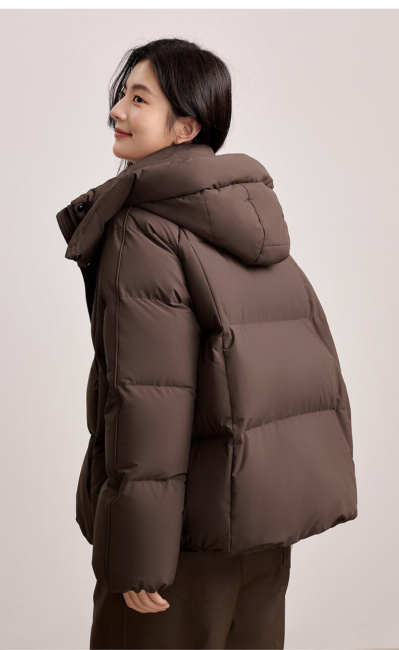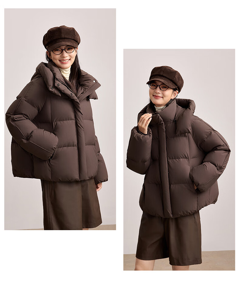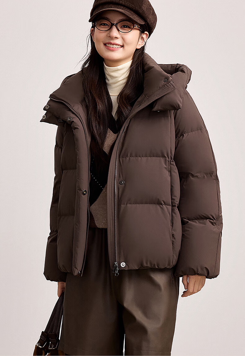 Yalu Puff Short Down Jacket Women's 2025 Autumn and Winter New Removable Hat Fashionable Korean Bread Jacket Brown M Recommended 110-125 Jin Jin equals 0.5 kg