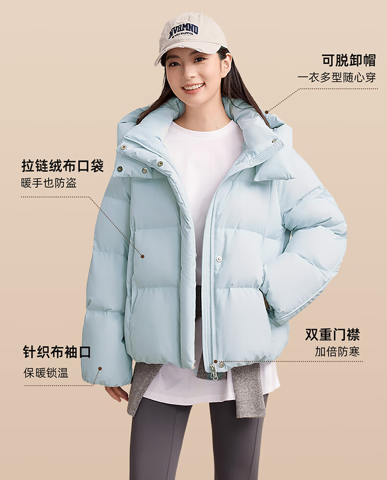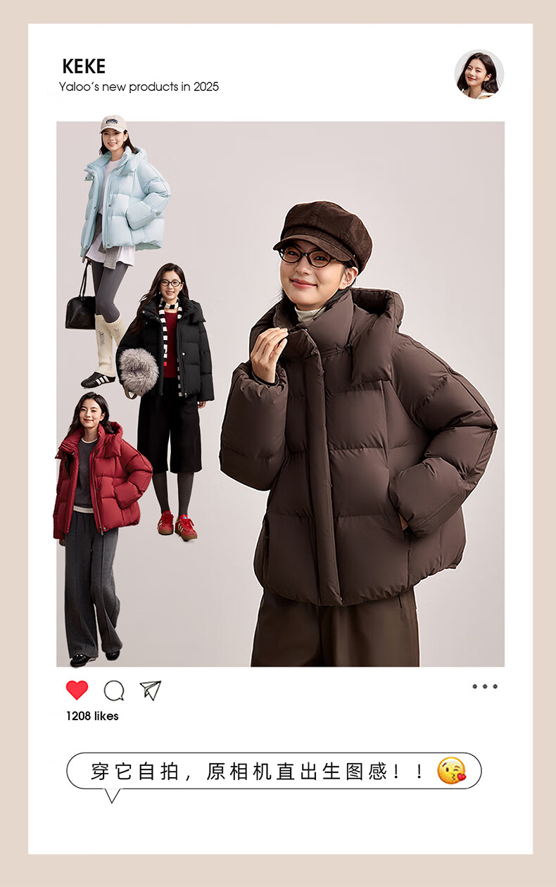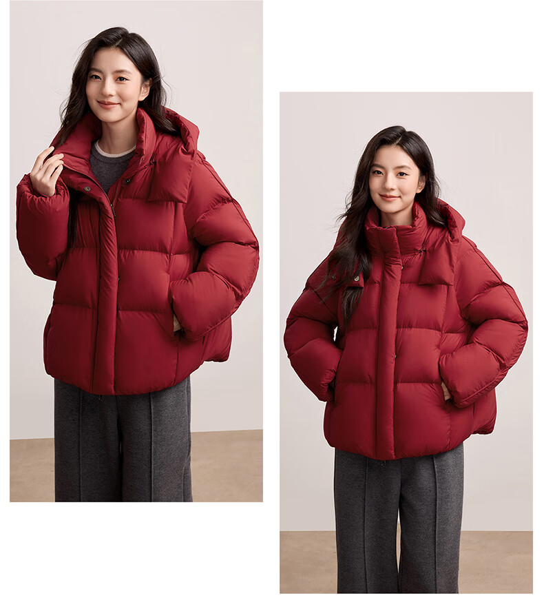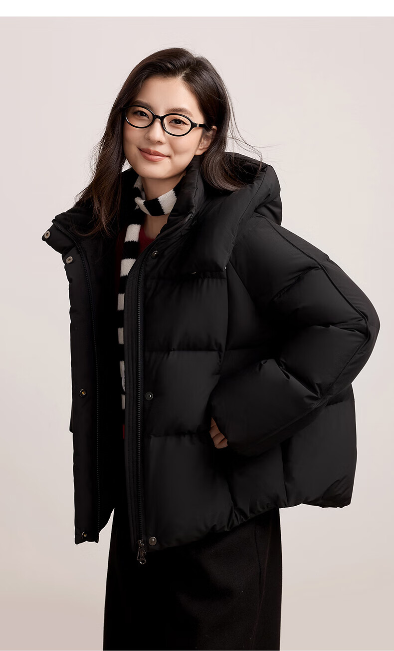 Yalu Puff Short Down Jacket Women's 2025 Autumn and Winter New Removable Hat Fashionable Korean Bread Jacket Brown M Recommended 110-125 Jin Jin equals 0.5 kg