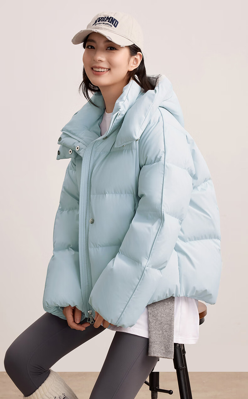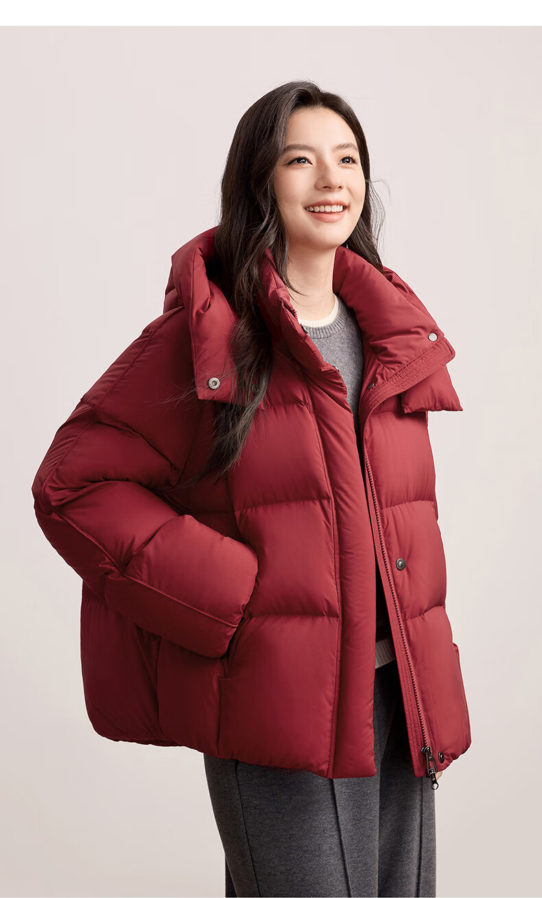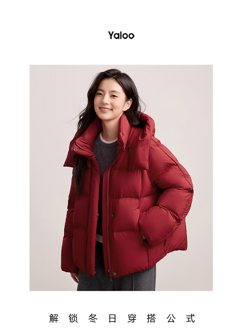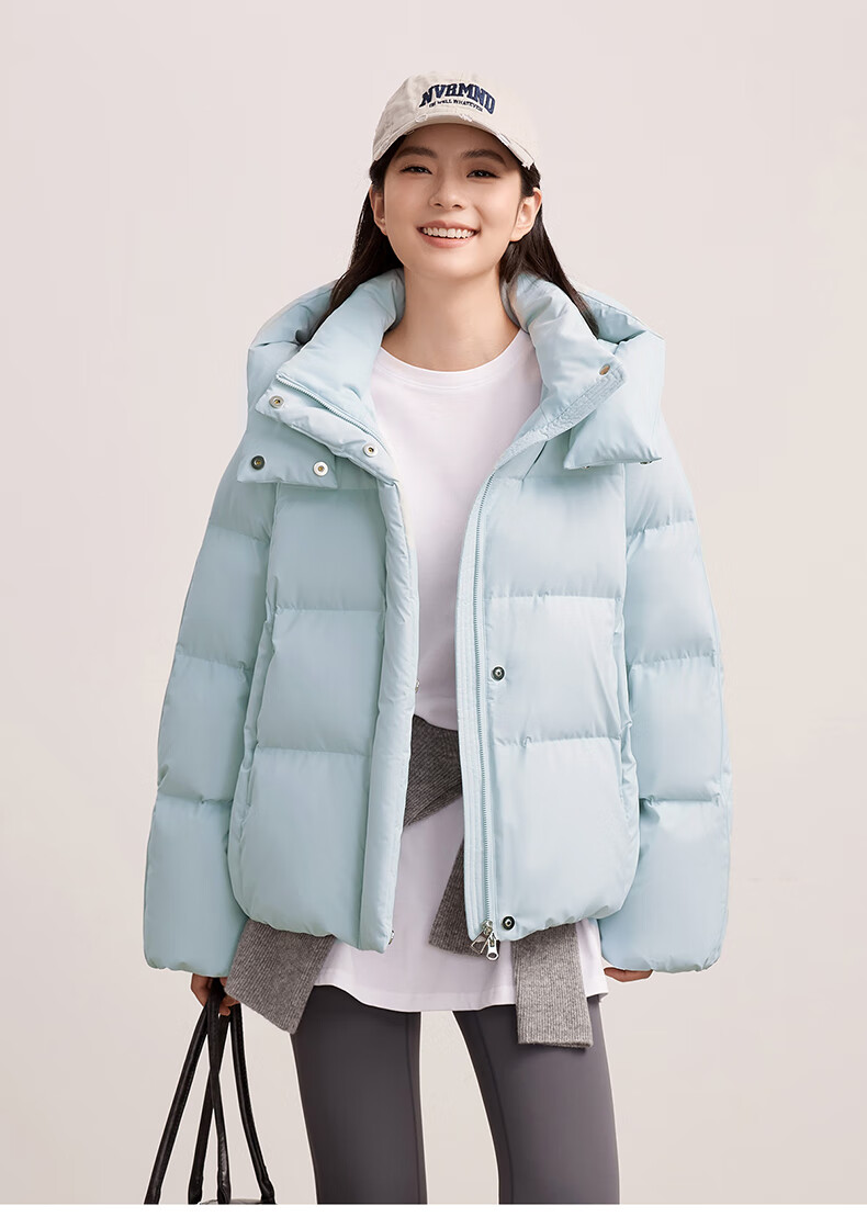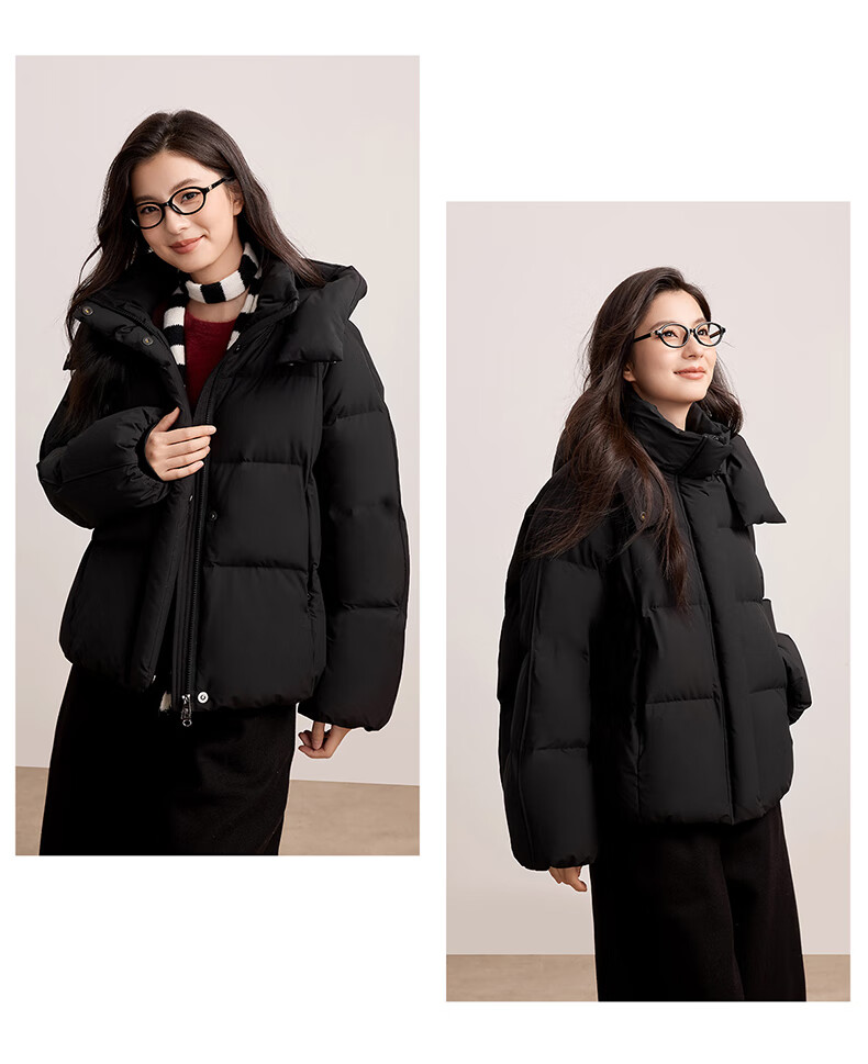 Yalu Puff Short Down Jacket Women's 2025 Autumn and Winter New Removable Hat Fashionable Korean Bread Jacket Brown M Recommended 110-125 Jin Jin equals 0.5 kg