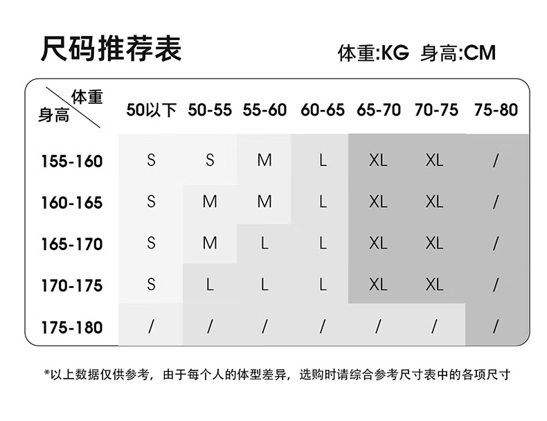 China (cm) 160-165/84-86 165-170 / 88-90 167-172 / 92-96 168-173 / 98-102 170-176 / 106-110
