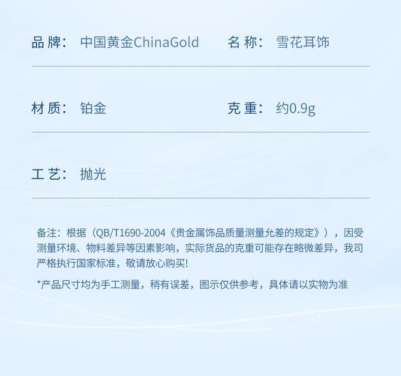 CHINA GOLD PT950 Platinum Snowflake Earrings for Women Dopamine Ear Piercing Earrings Valentine's Day Birthday Gift for Girlfriend and Wife PT950 Platinum Snowflake Earrings About 0.95g