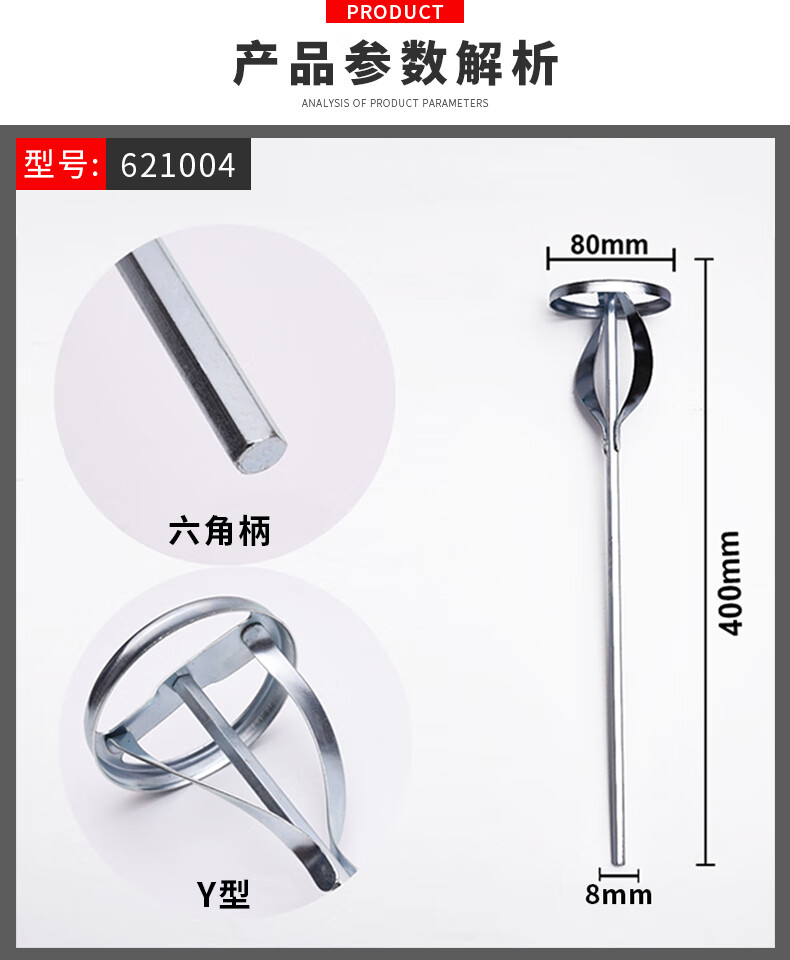 He Jian Gong Hanton hand electric drill mixing rod electric hammer impact drill mixing rod putty powder coating mixing ash rod cement extended ash hexagonal rod length 40 cm thick 8mm hand electric drill can