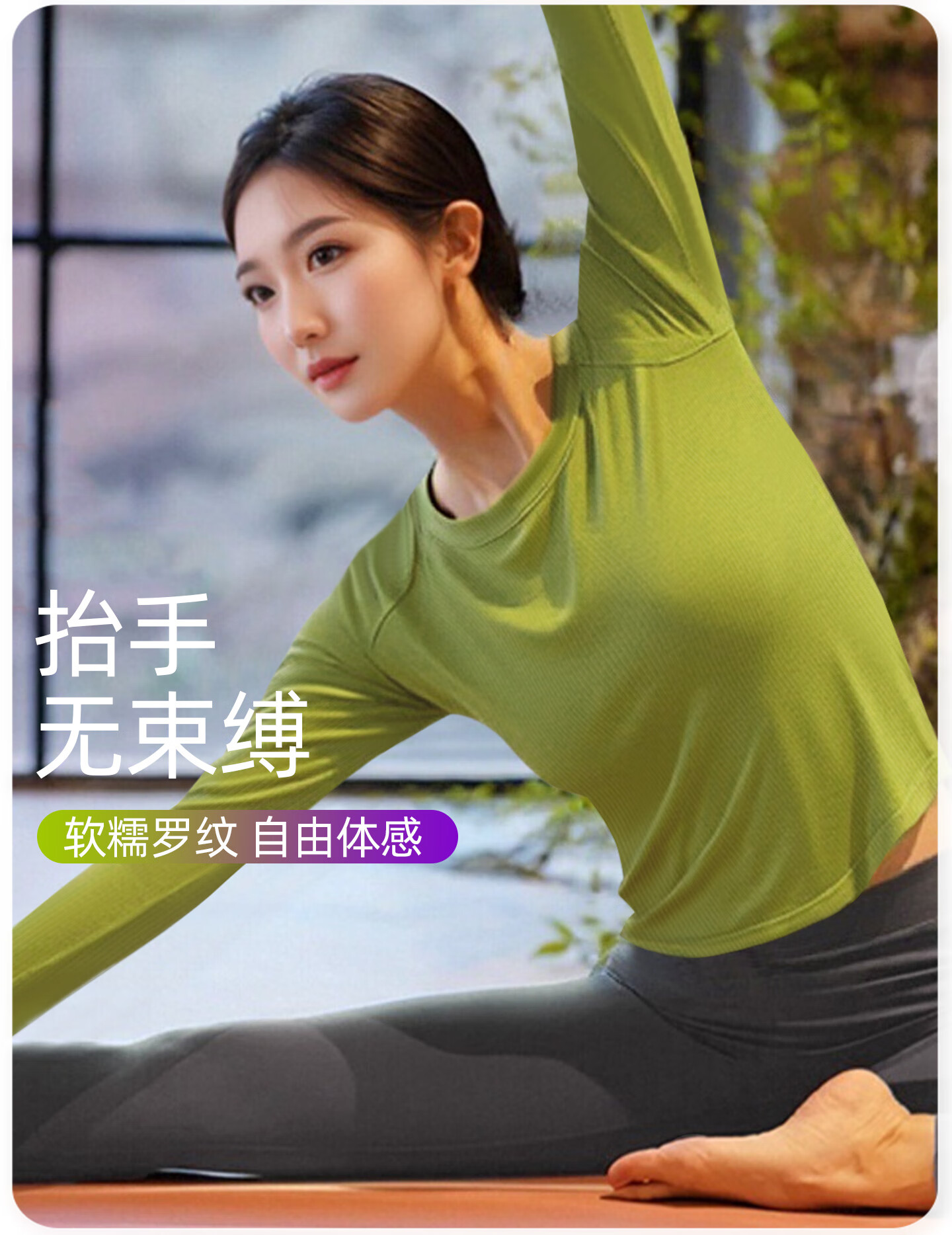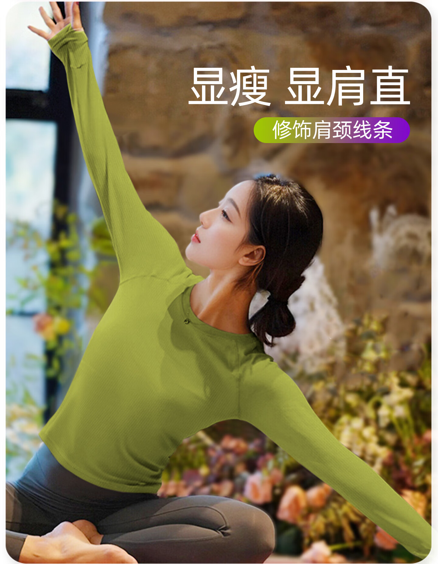 Double Show 2025 Super Hot Yoga Clothing Tops for Women New Nude Skin Friendly Belly Covering Long Sleeve Professional Pilates Fitness Suit Olive Green Top M 100-110
