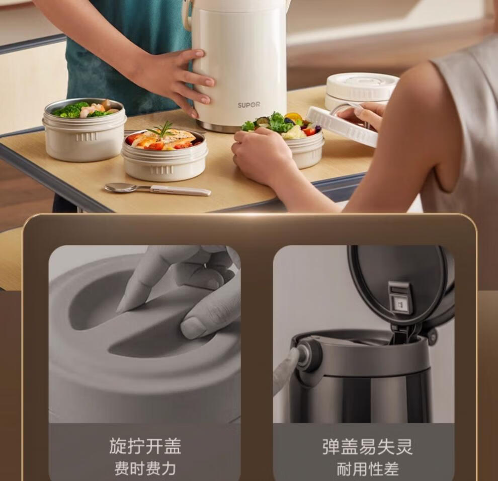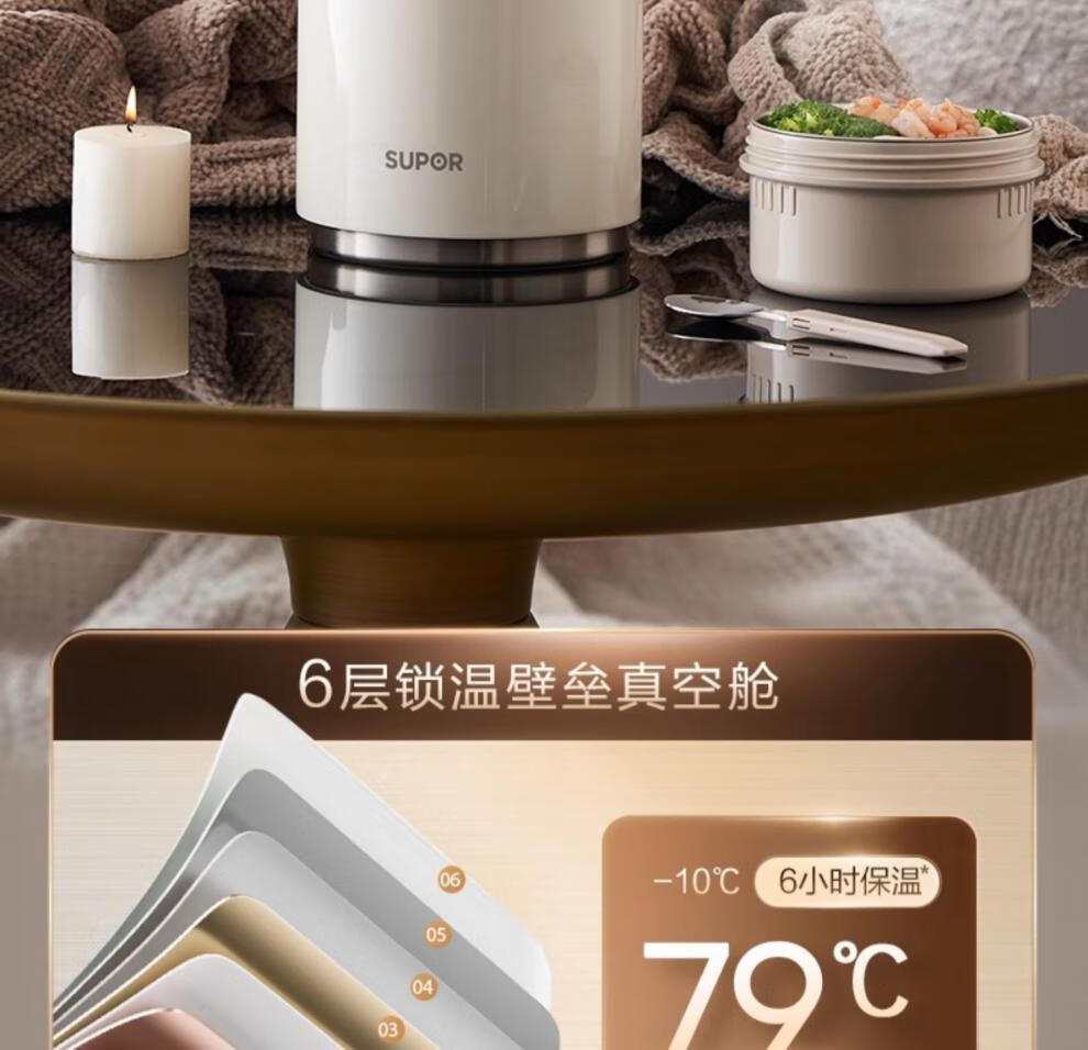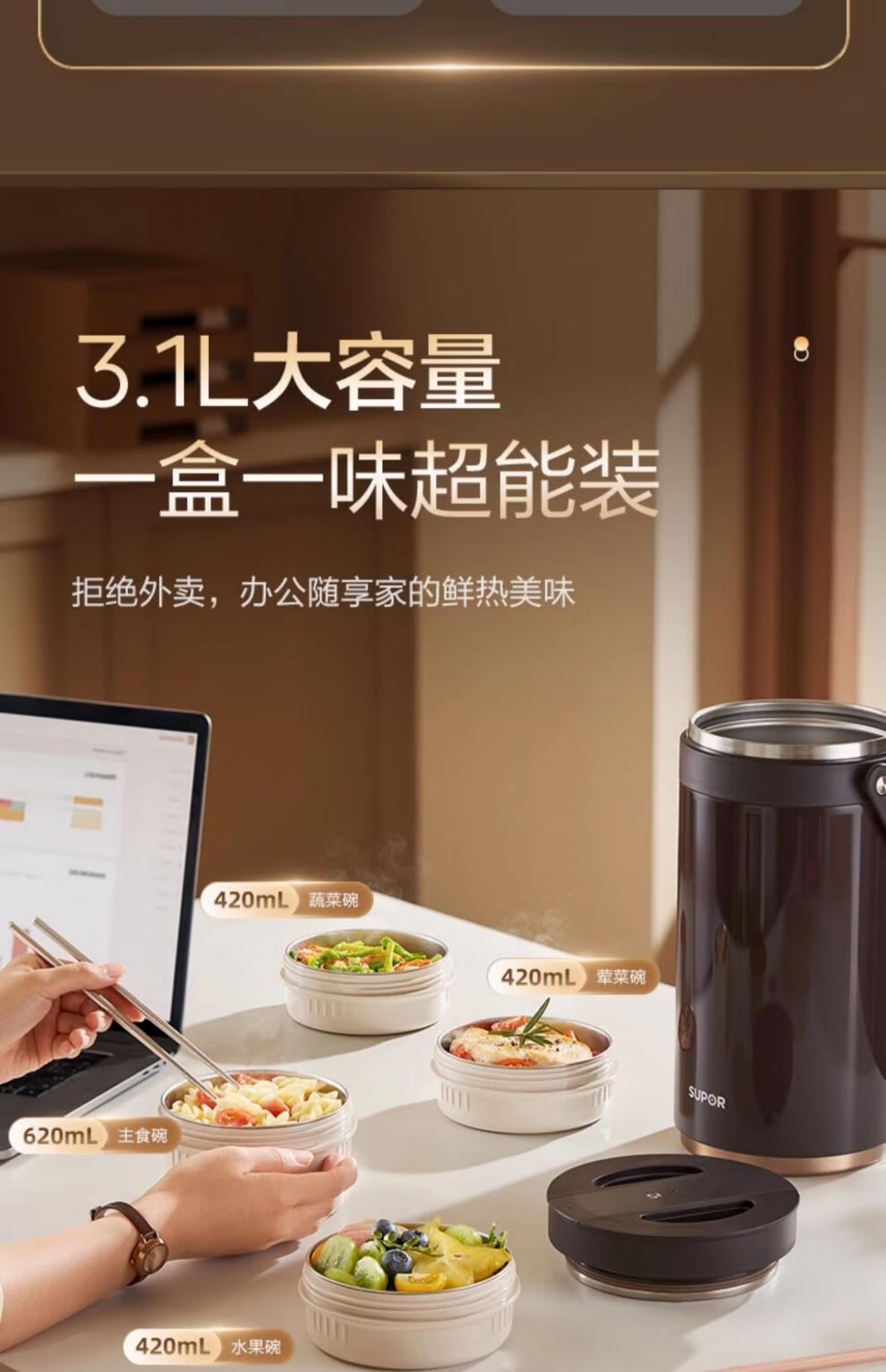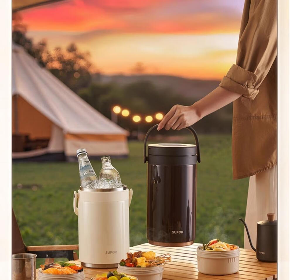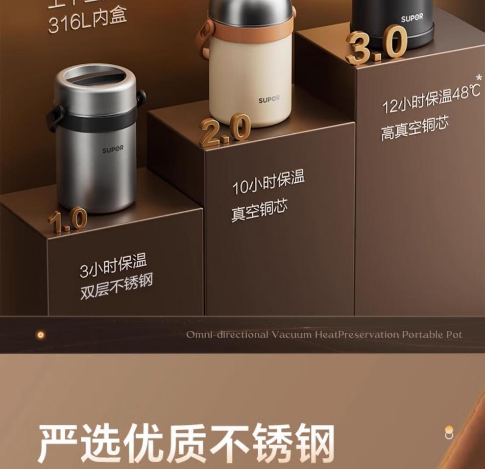 SUPOR Insulated Bucket Lunch Box 24-hour Extra Long Insulation Compartment Adult Large Capacity Office Worker 2025 New 3.1L Chestnut Brown Four Layers with Tableware 丨24 Hours