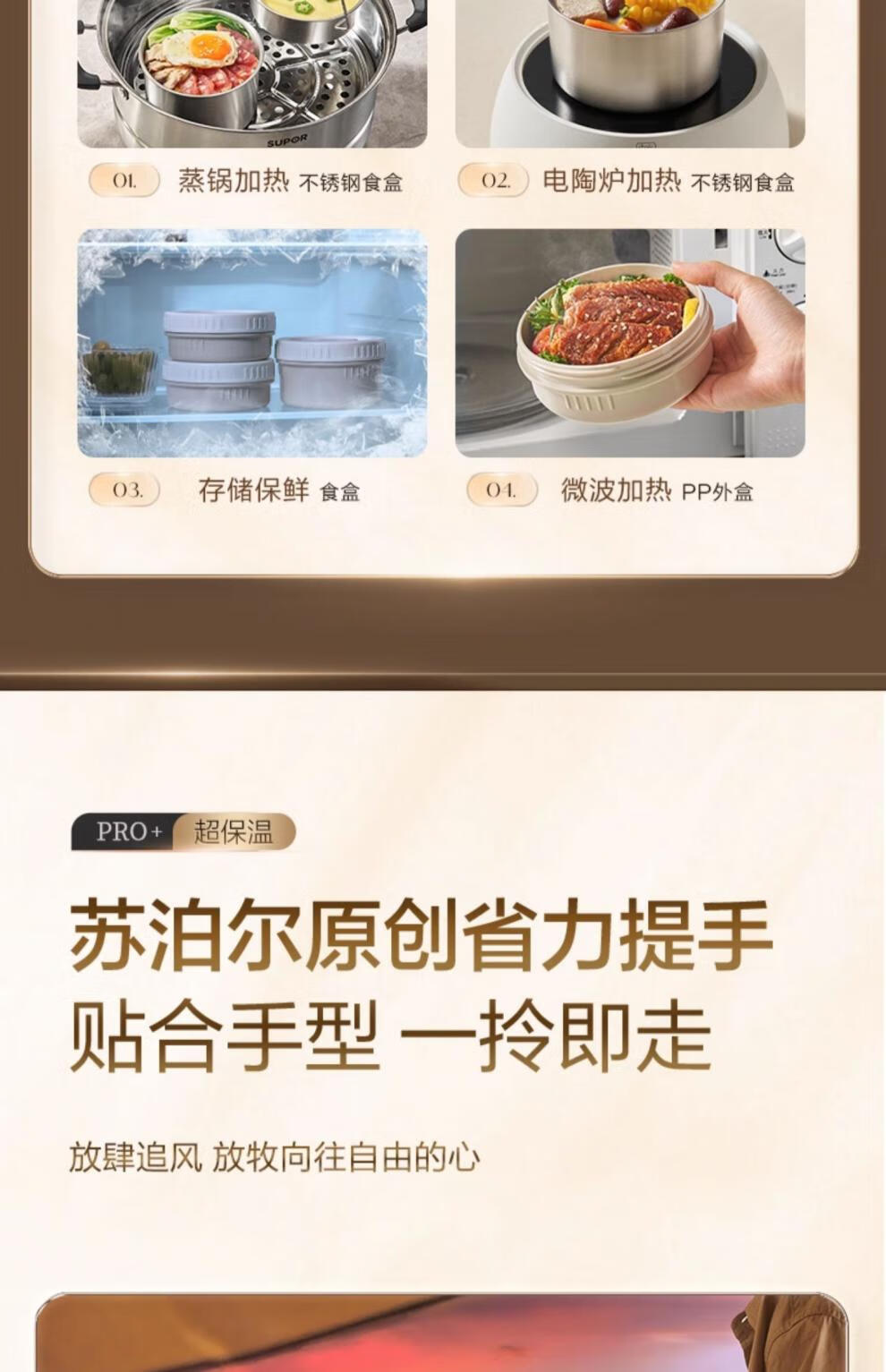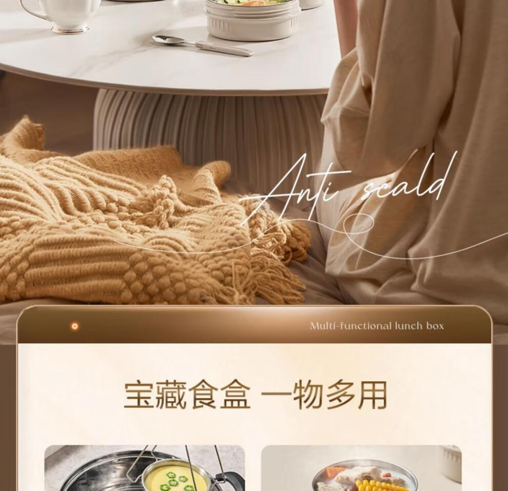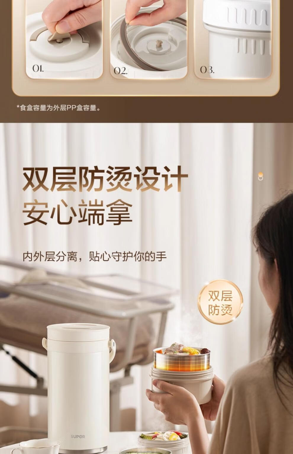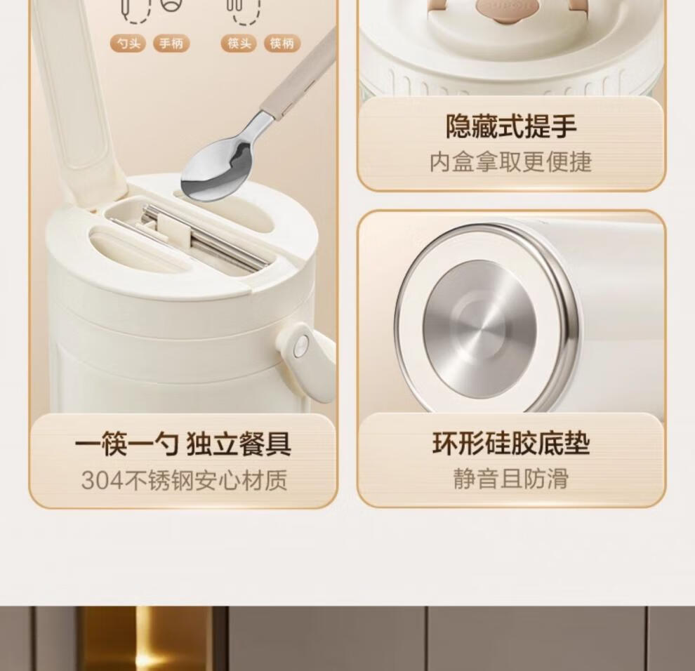 SUPOR Insulated Bucket Lunch Box 24-hour Extra Long Insulation Compartment Adult Large Capacity Office Worker 2025 New 3.1L Chestnut Brown Four Layers with Tableware 丨24 Hours