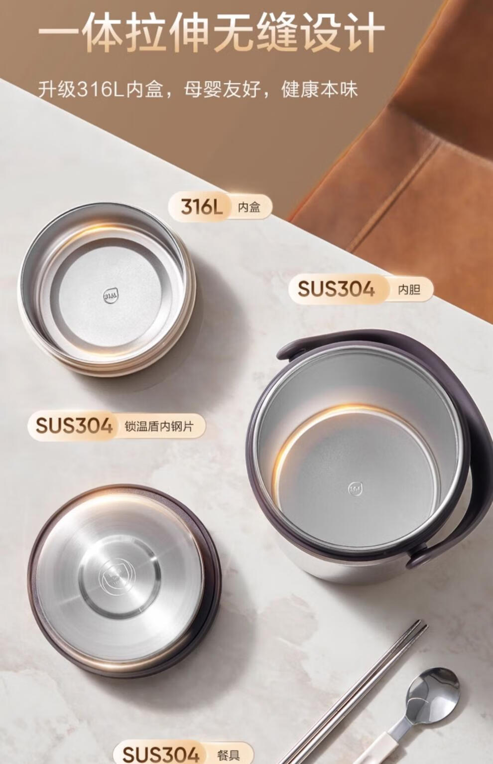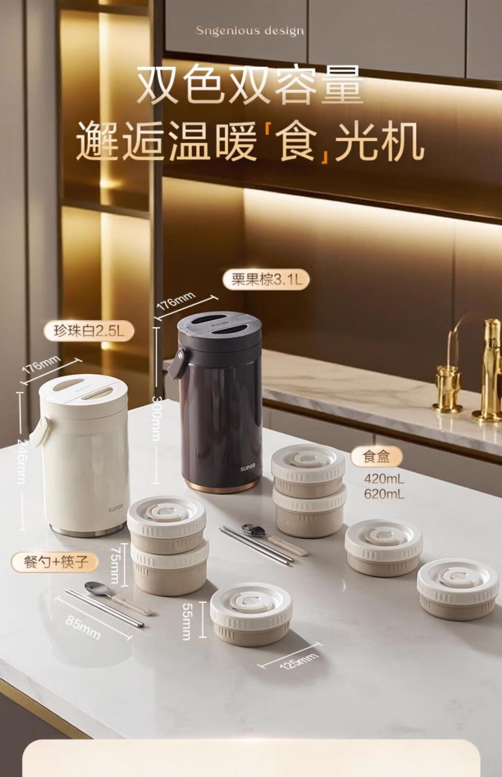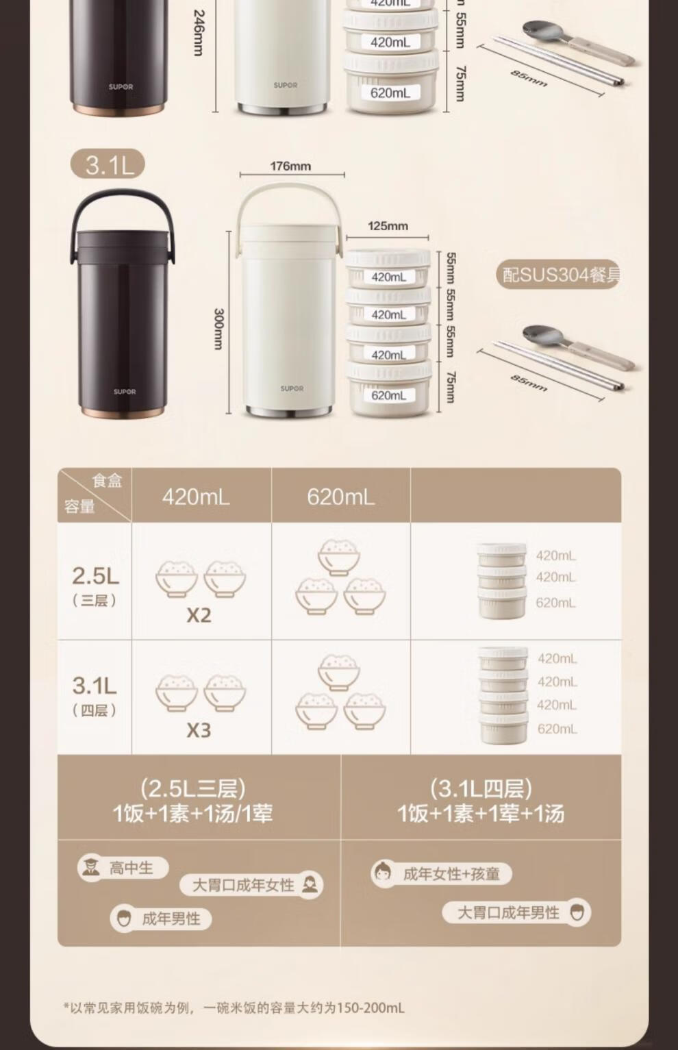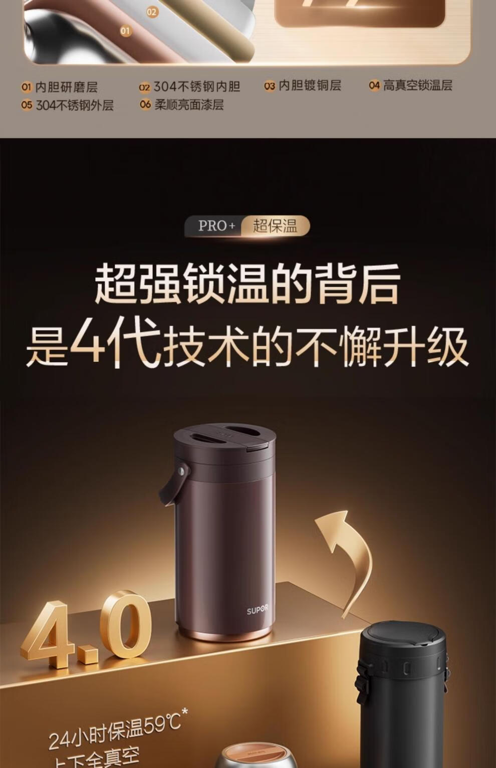 SUPOR Insulated Bucket Lunch Box 24-hour Extra Long Insulation Compartment Adult Large Capacity Office Worker 2025 New 3.1L Chestnut Brown Four Layers with Tableware 丨24 Hours