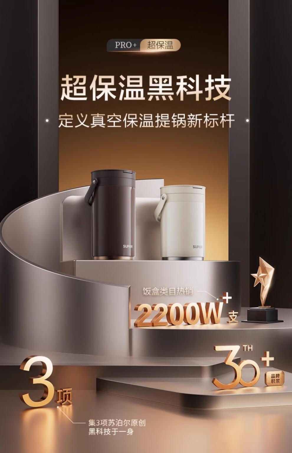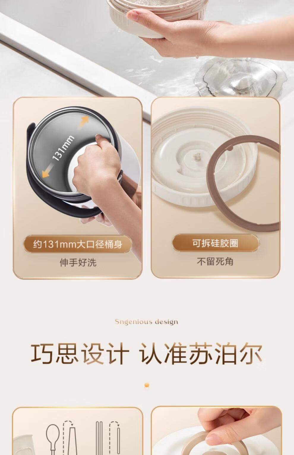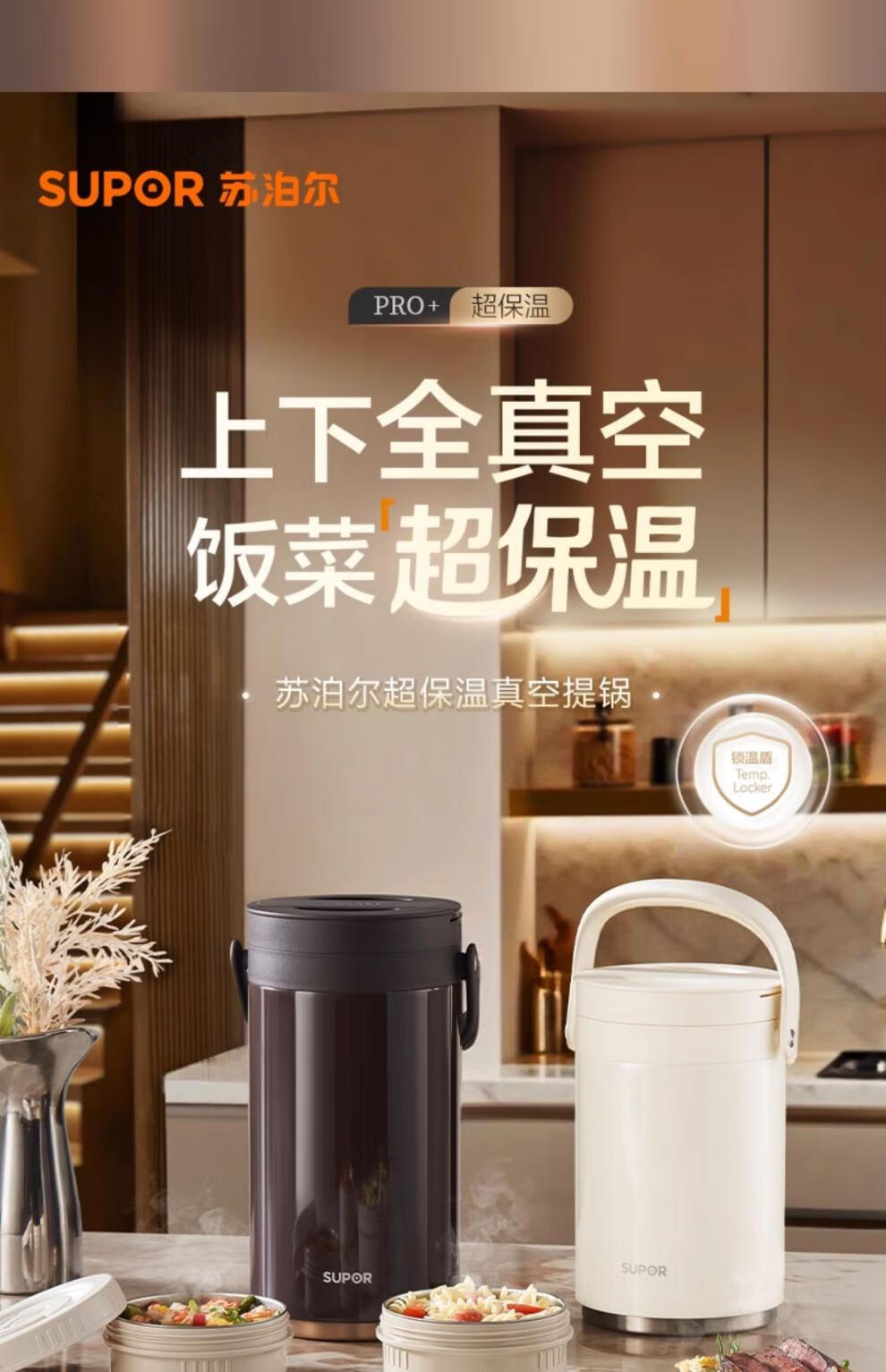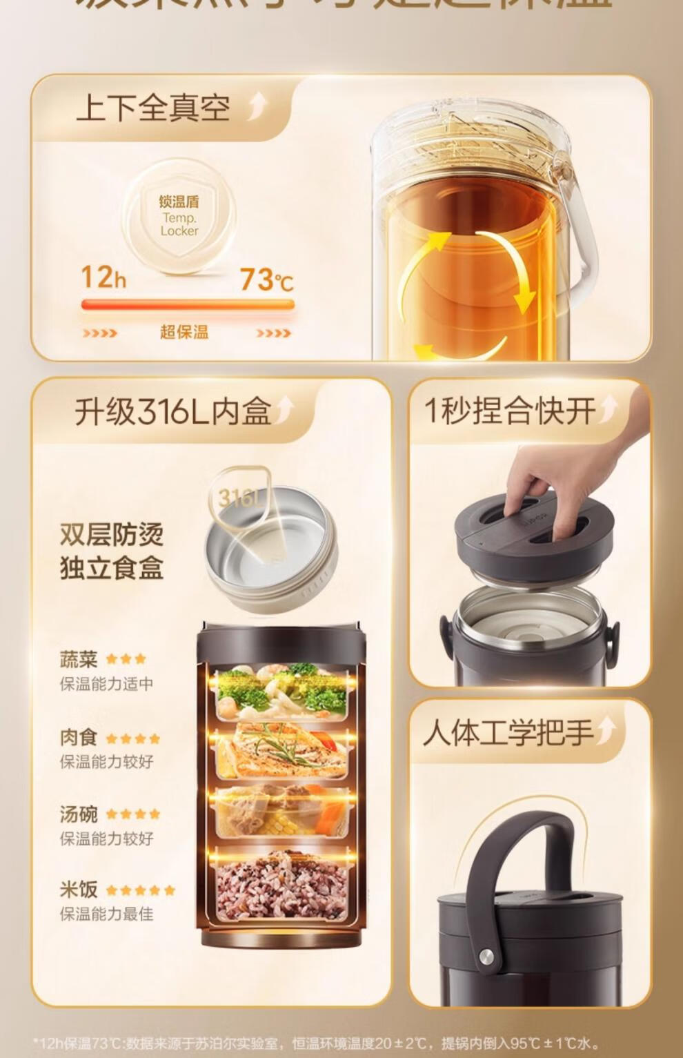 SUPOR Insulated Bucket Lunch Box 24-hour Extra Long Insulation Compartment Adult Large Capacity Office Worker 2025 New 3.1L Chestnut Brown Four Layers with Tableware 丨24 Hours