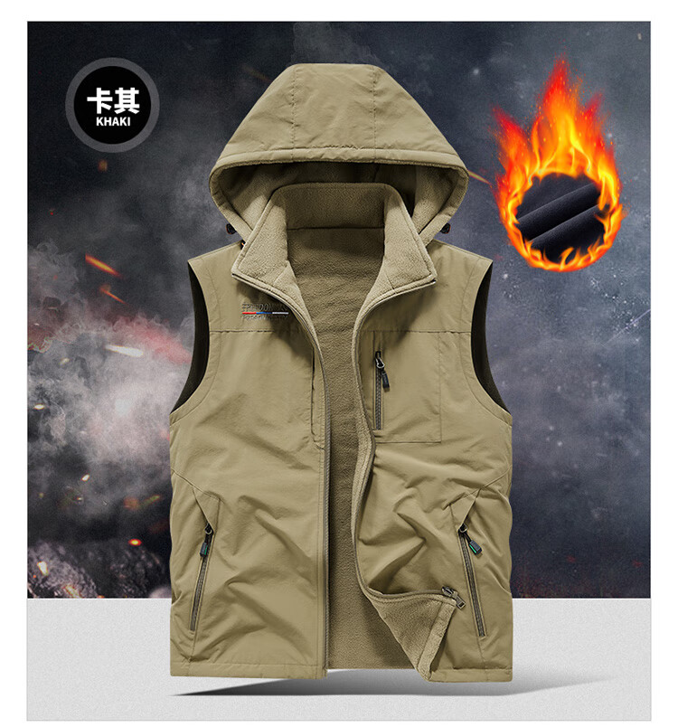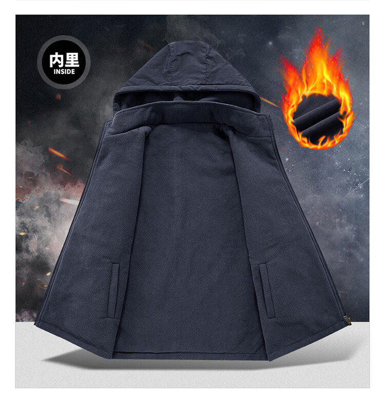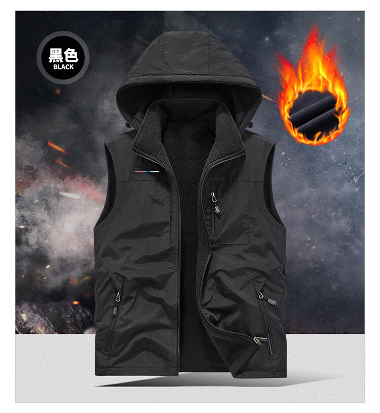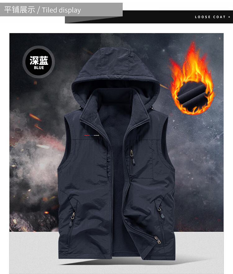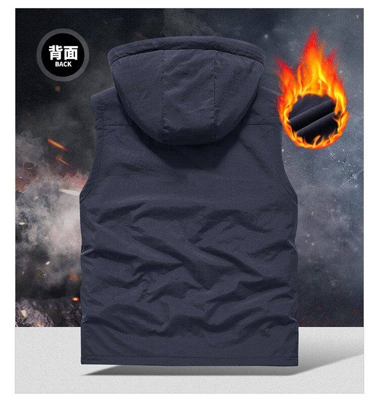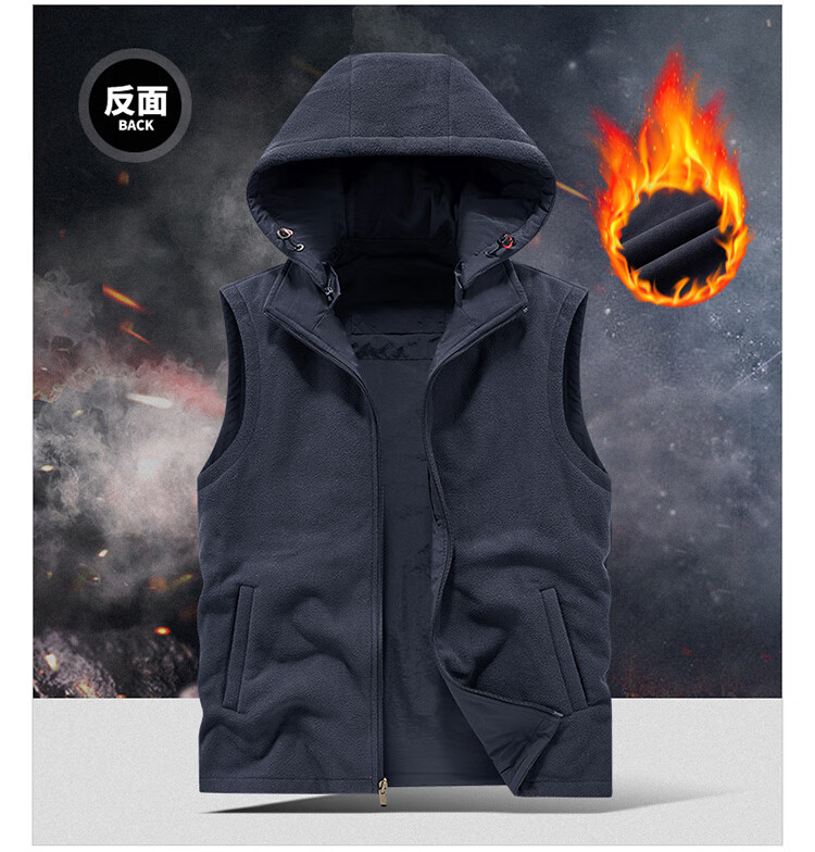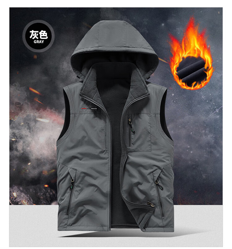 Autumn and winter men's velvet thickened reversible vest with multiple pockets for outdoor fishing shooting jacket detachable hooded vest Gray XL 130-145Jin Jin equals 0.5kg