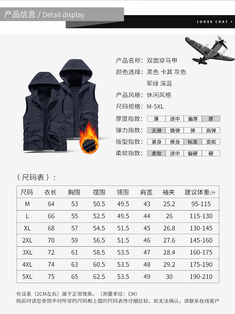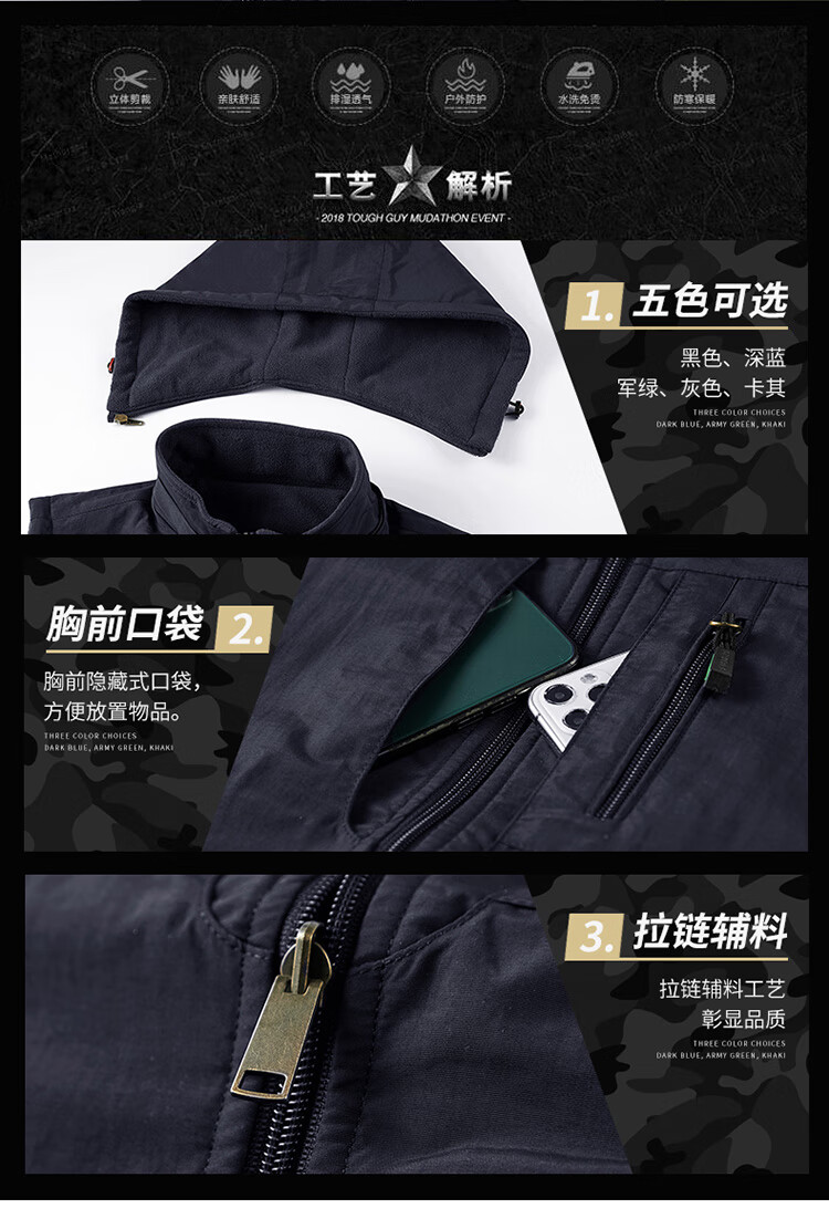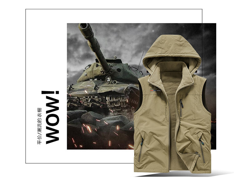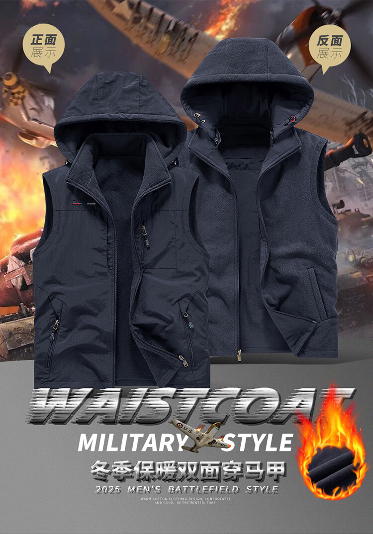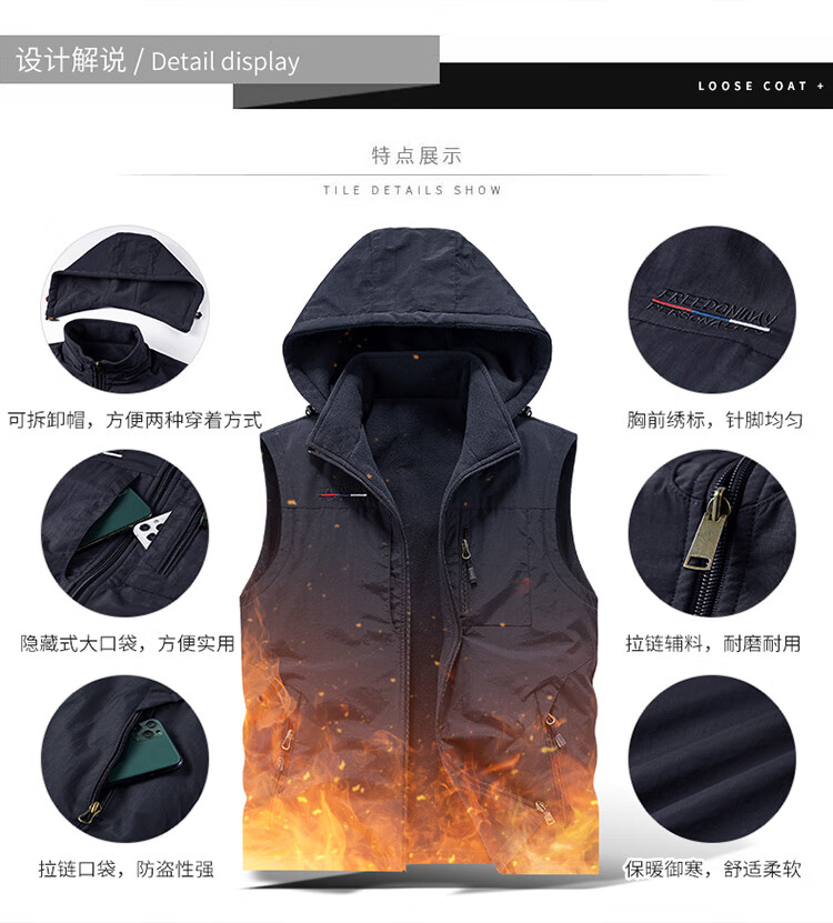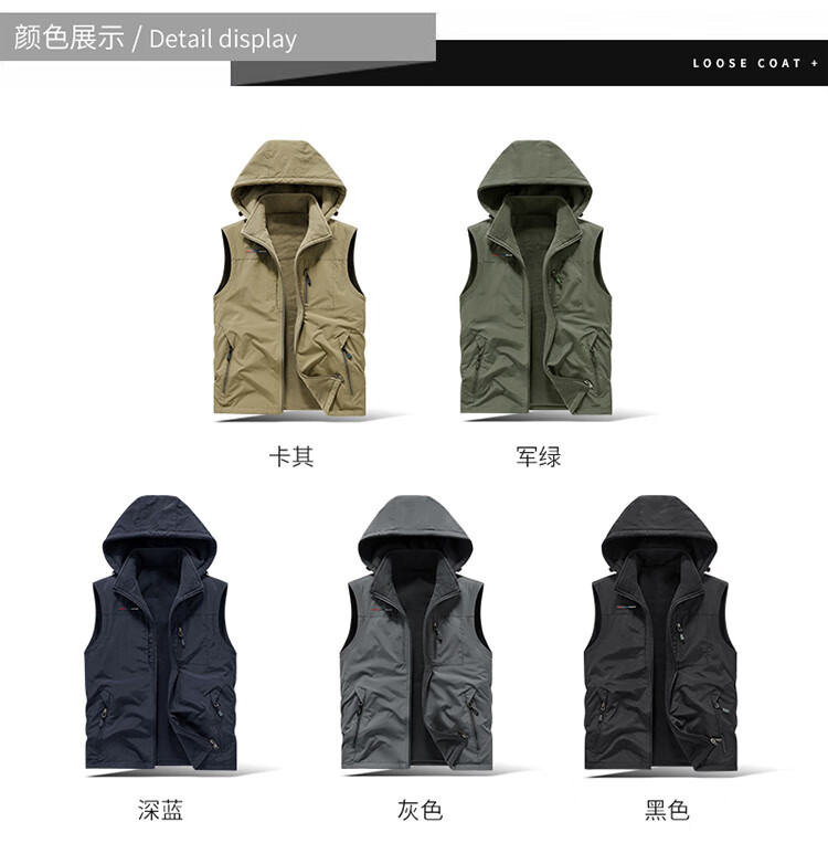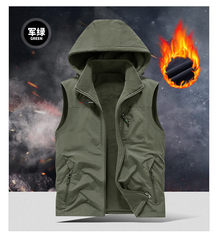 Autumn and winter men's velvet thickened reversible vest with multiple pockets for outdoor fishing shooting jacket detachable hooded vest Gray XL 130-145Jin Jin equals 0.5kg