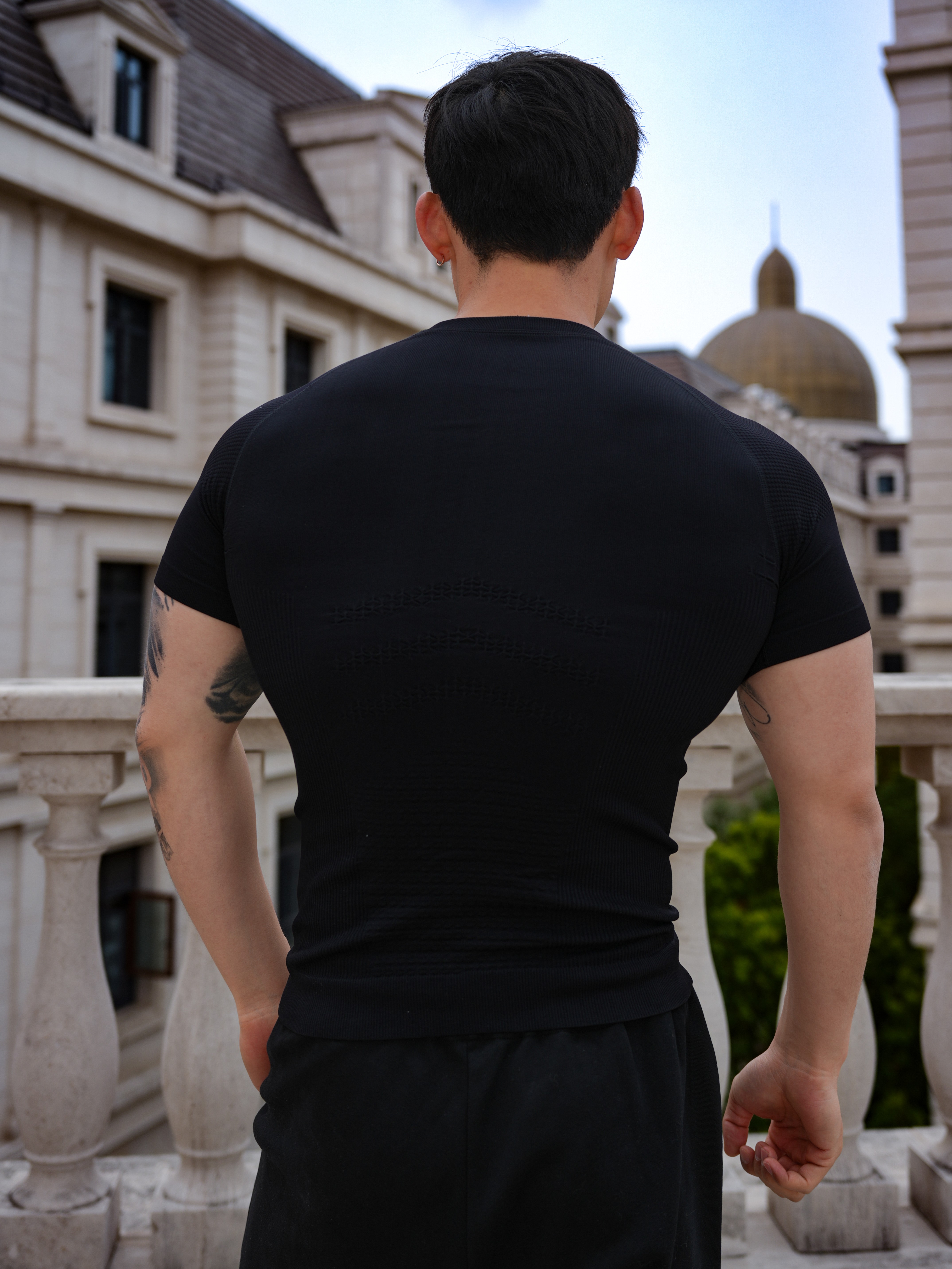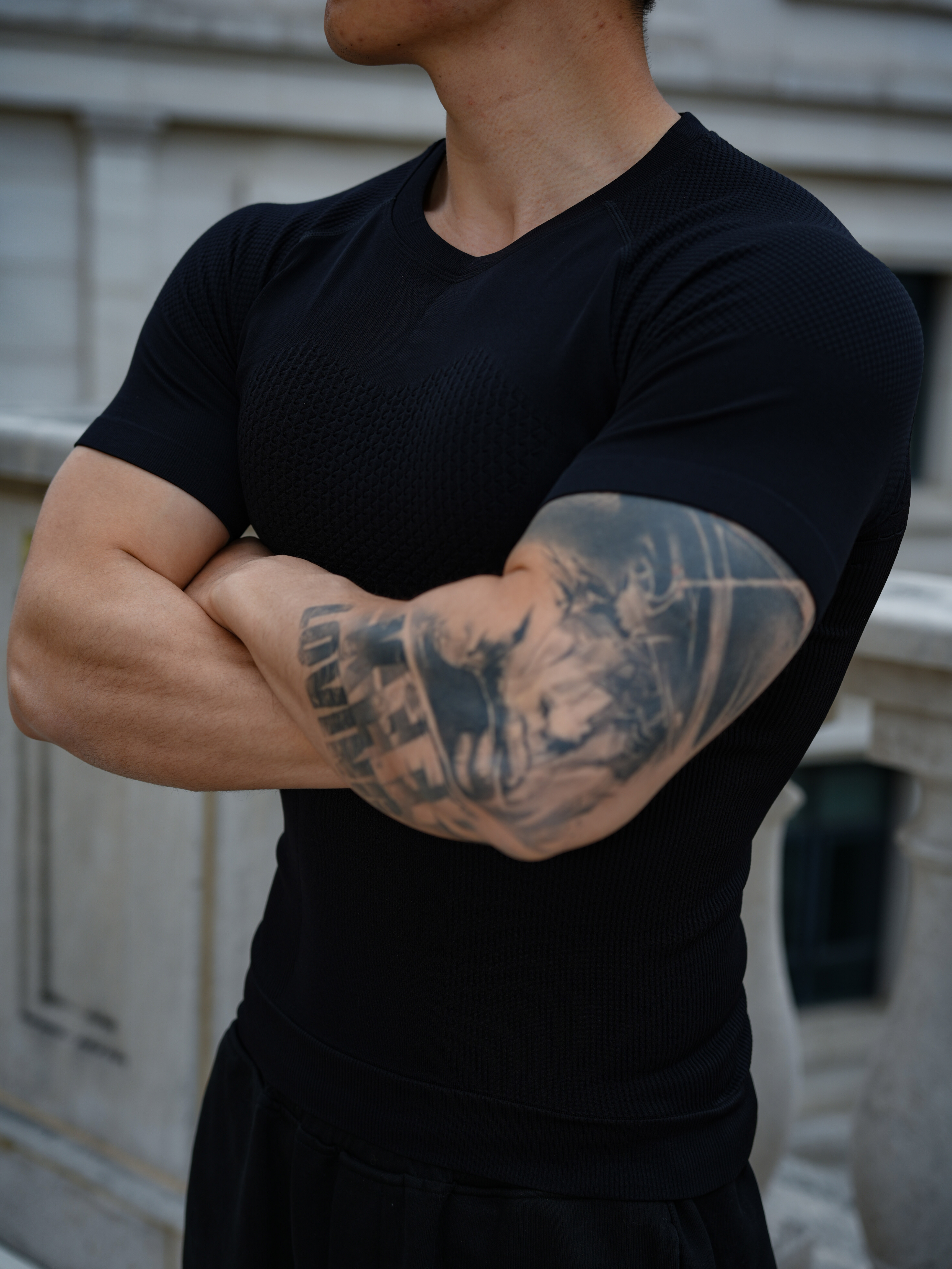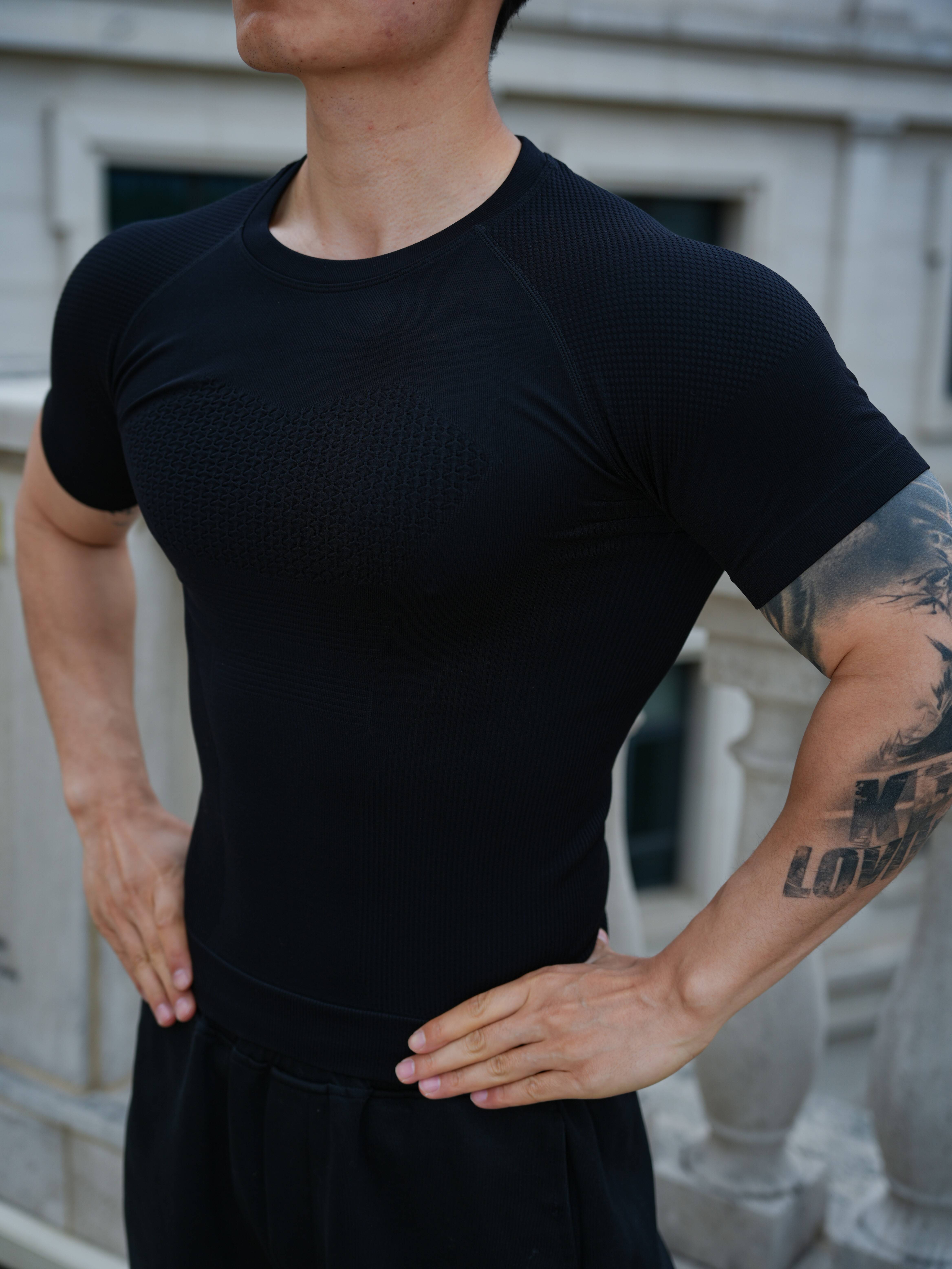 Seamless quick-drying breathable sports fitness short-sleeved T-shirt running training cycling clothing compression tight elastic top for men gray 2XL