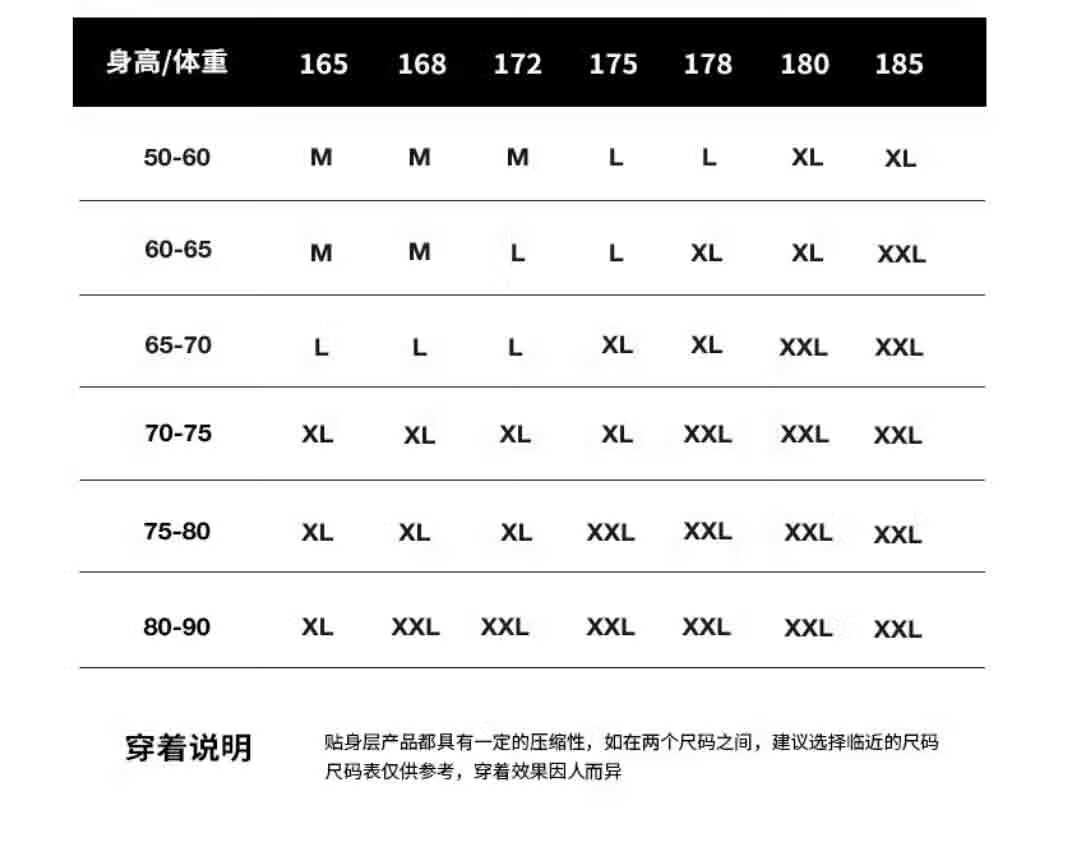 China (cm) 165 / 88-90 170 / 96-98 175 / 108-110 180 / 118-122 185 / 126-130