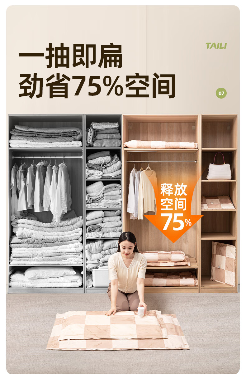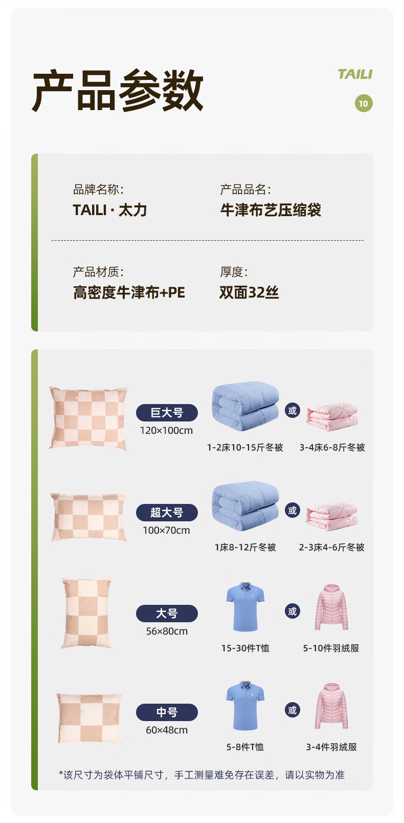 Taili thickened Oxford fabric vacuum compression bag clothes quilt storage bag durable reusable vacuum bag 10-piece set 3 huge + 2 extra large + 3 large + 2 medium + 1 electric pump