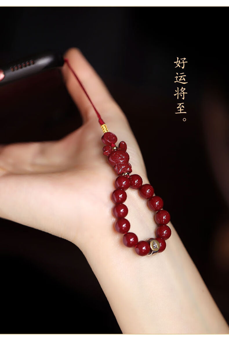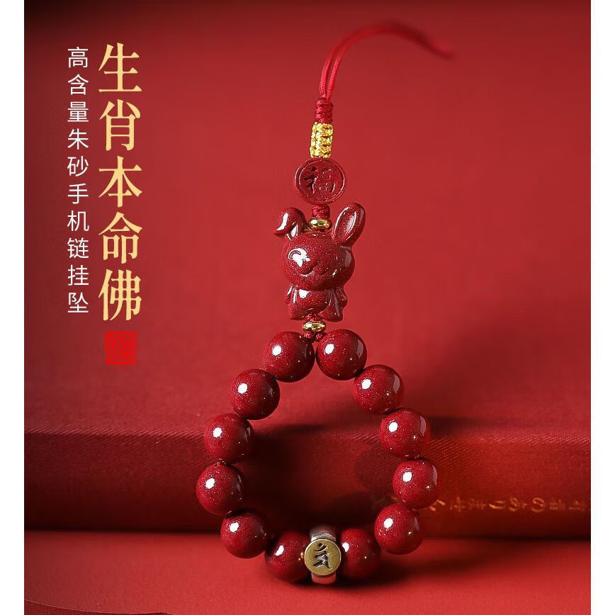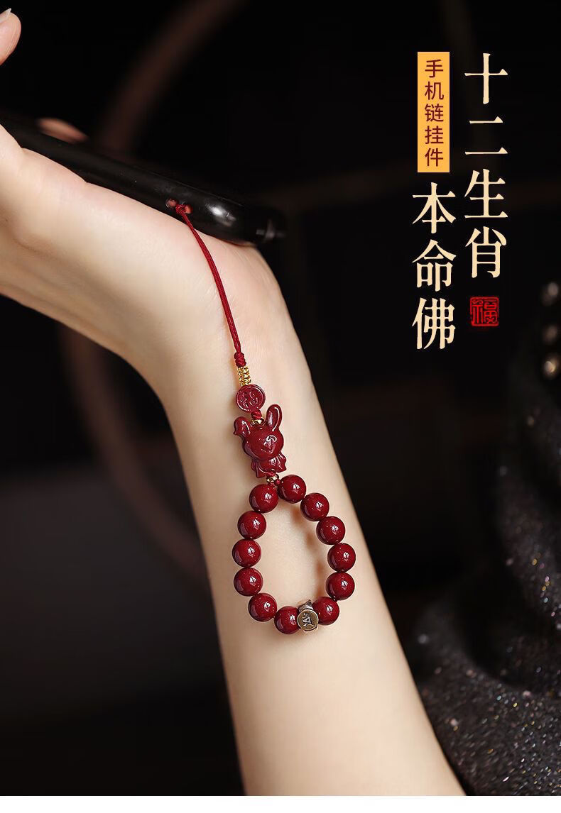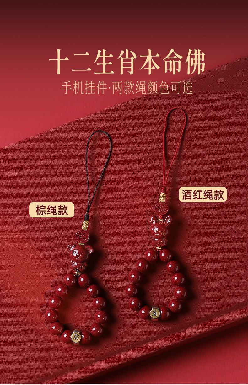 Natural cinnabar mobile phone chain, twelve zodiac signs, natal Buddha pendant, exquisite mobile phone pendant, female Douyin model, wine red rope-sheep (Great Sun Tathagata)