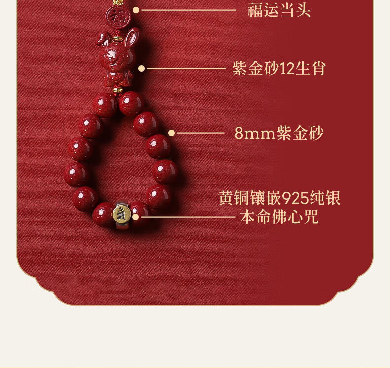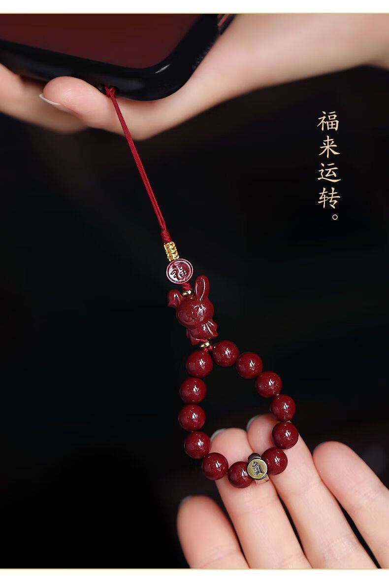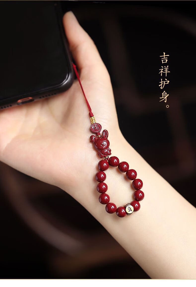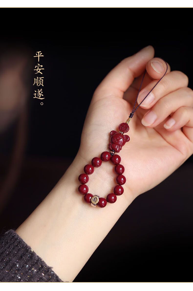 Natural cinnabar mobile phone chain, twelve zodiac signs, natal Buddha pendant, exquisite mobile phone pendant, female Douyin model, wine red rope-sheep (Great Sun Tathagata)