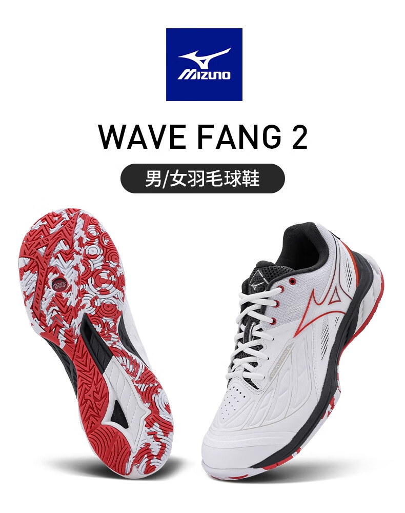 Mizuno's new WAVE FANG 2 men's and women's advanced stable support cushioning and wear-resistant badminton shoes 71GA231330 white/blue 42