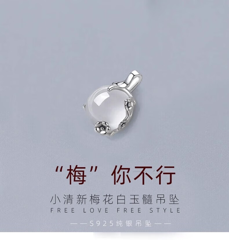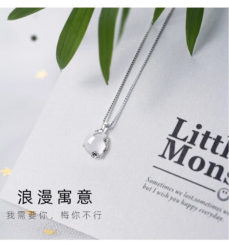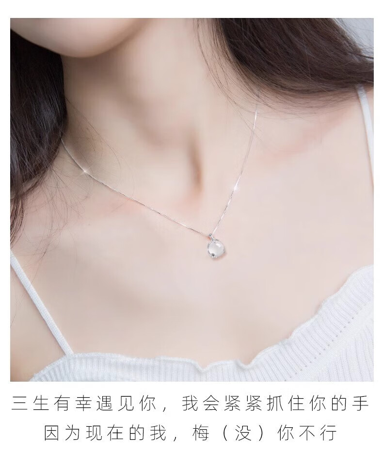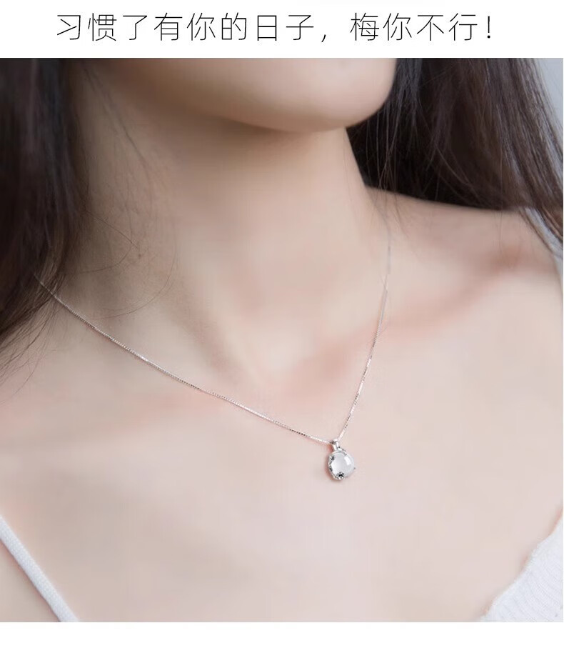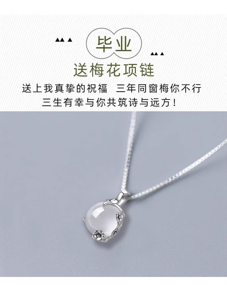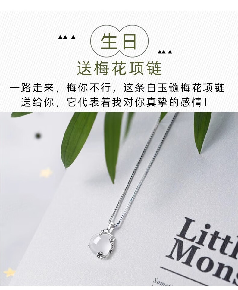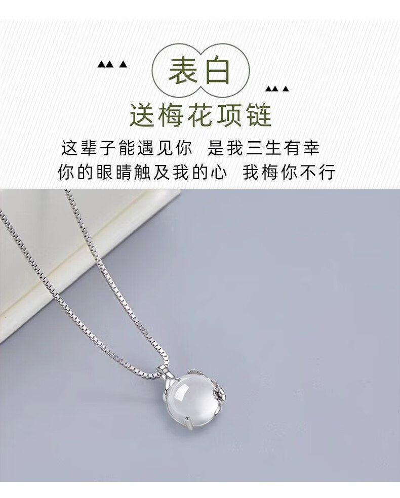 Zhouke fashionable and simple platinum necklace women's plum blossom pendant white chalcedony temperament niche imitation white gold clavicle chain gift pt950 plum blossom white chalcedony single pendant