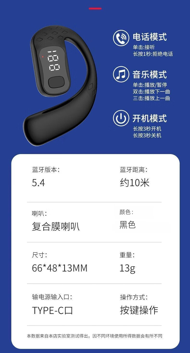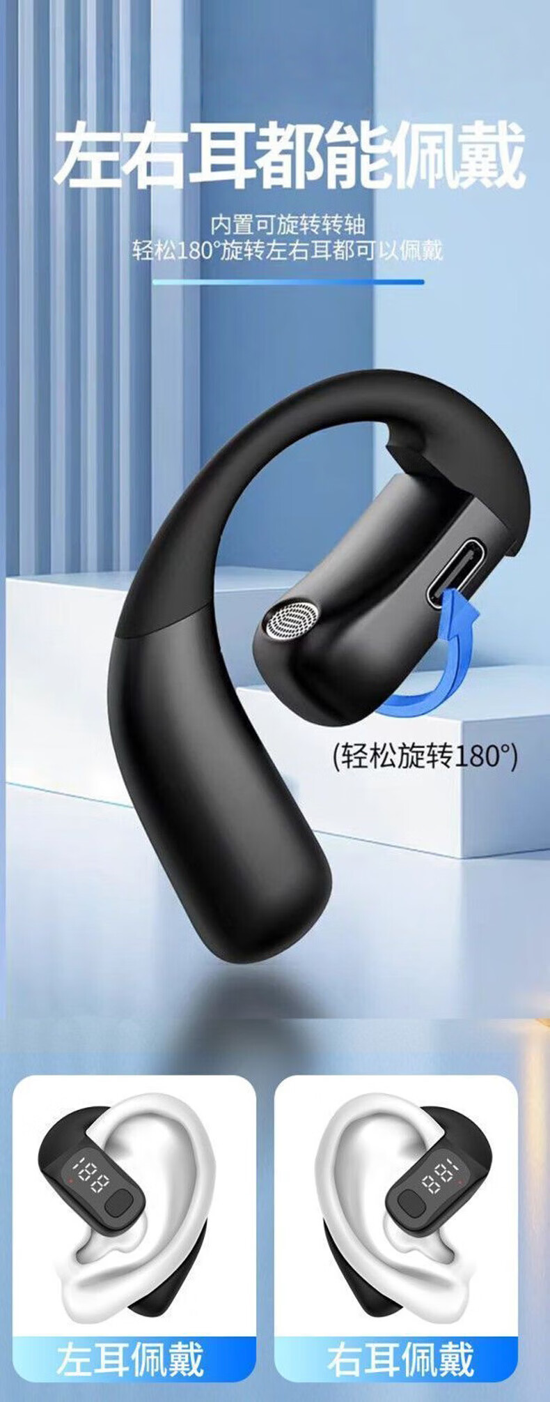Smart Digital Display Car Earhook Sports Wireless Bluetooth Headset Sports Noise Reduction High Quality B01 Digital Display Black Single Ear-Top Configuration-Bluetooth 5.4+ No Sensitive Delay