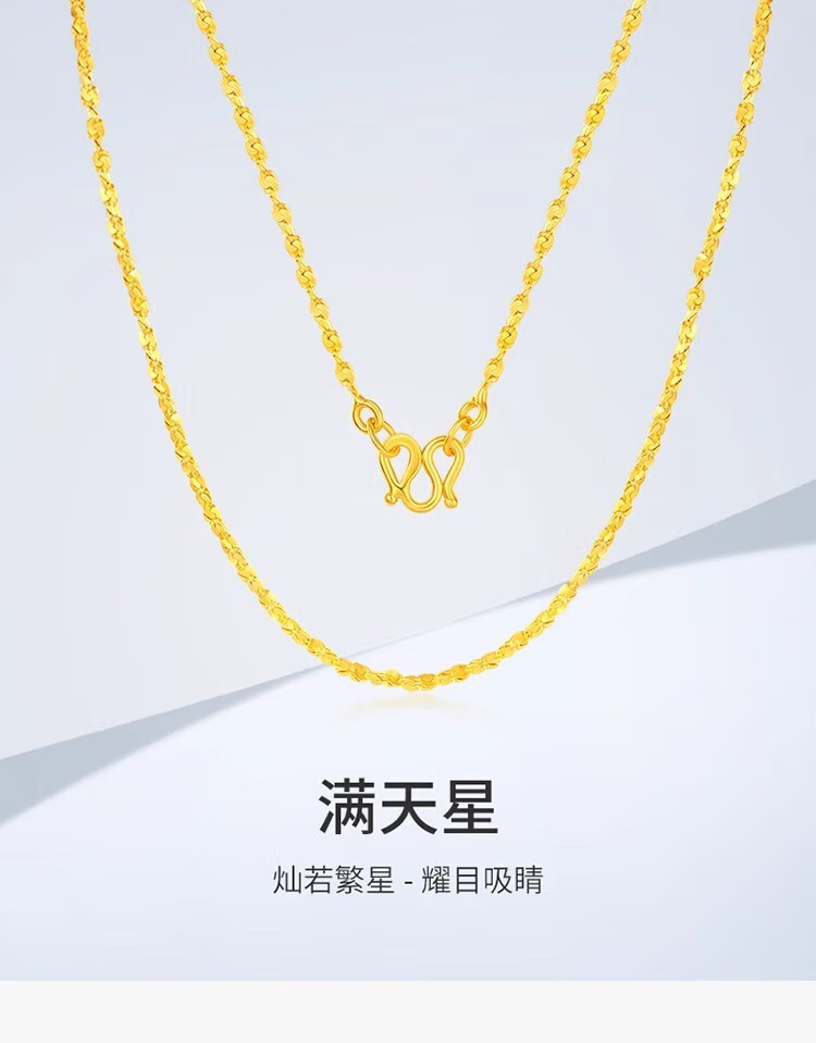 Yue Bu Lao Phoenix 999 gold pure gold necklace full of stars 24k female clavicle chain imitation gold color classic versatile Valentine's Day 2.81g