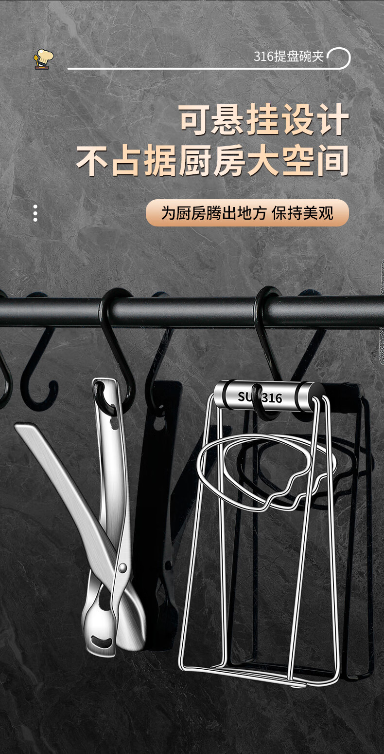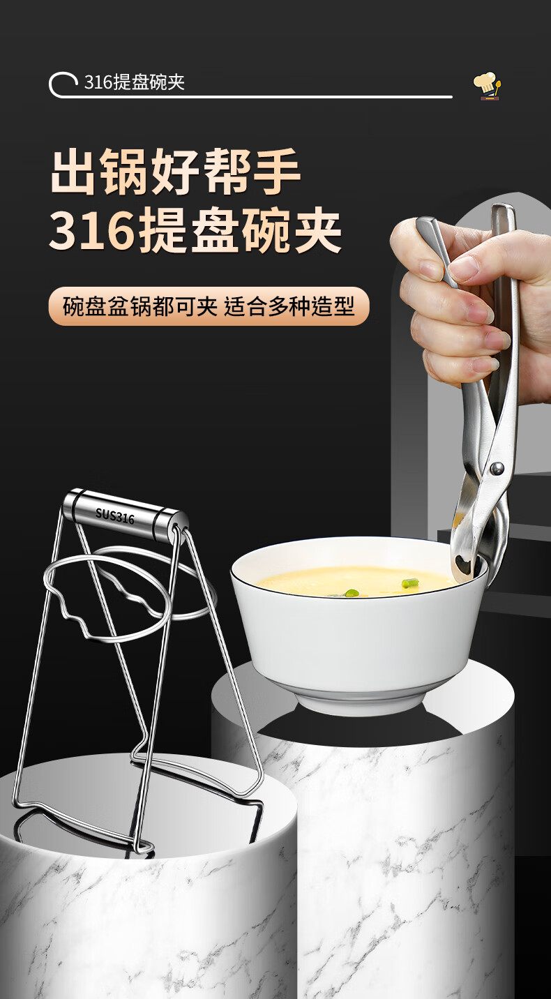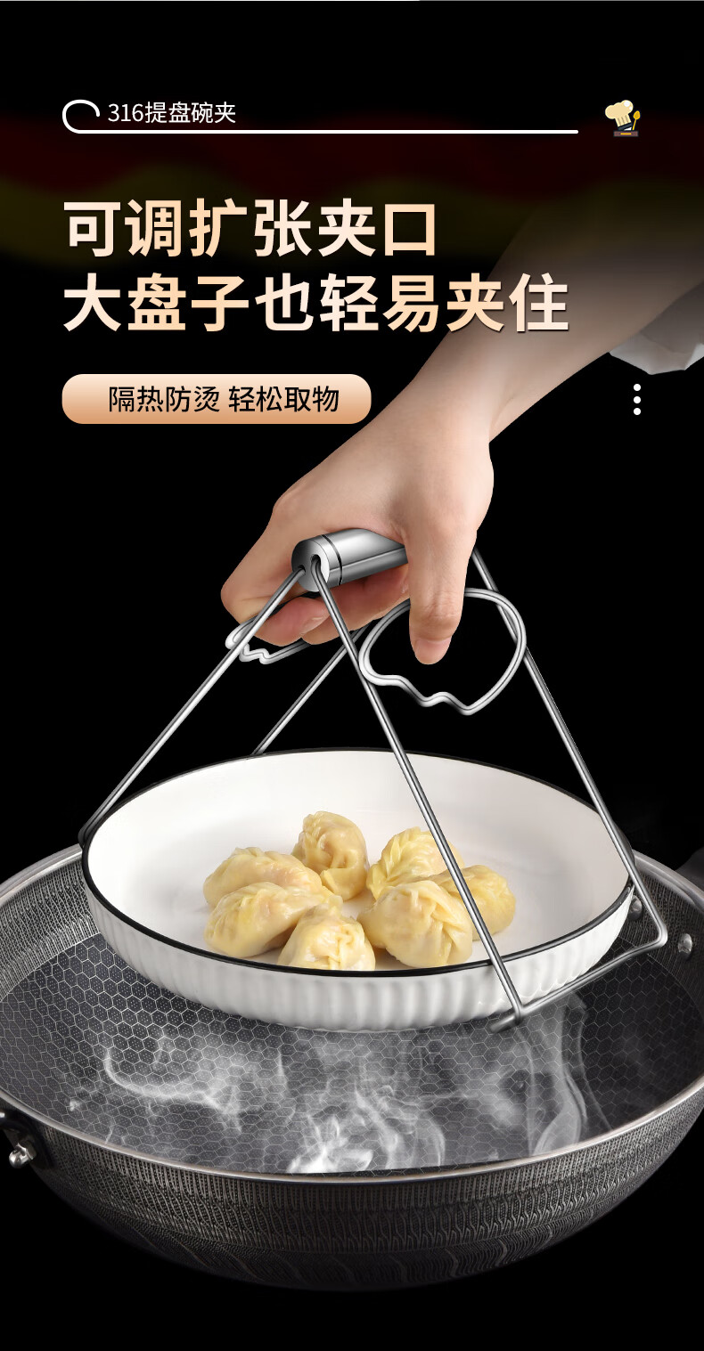 Baichunbao 316 stainless steel anti-scalding bowl clamp casserole clamp plate bowl clamp kitchen 316 steel bowl clamp + 304 steel 4cm steam rack