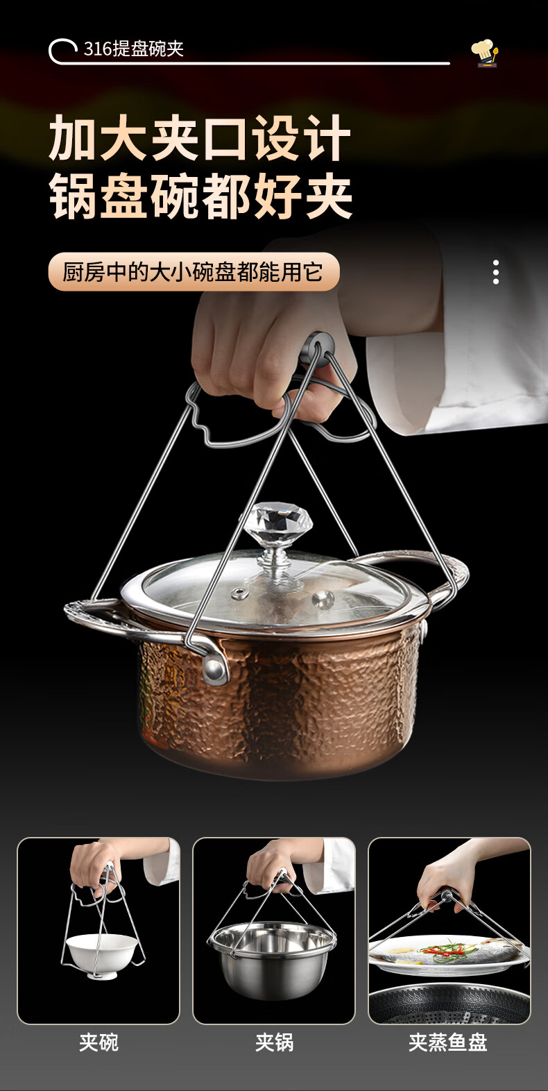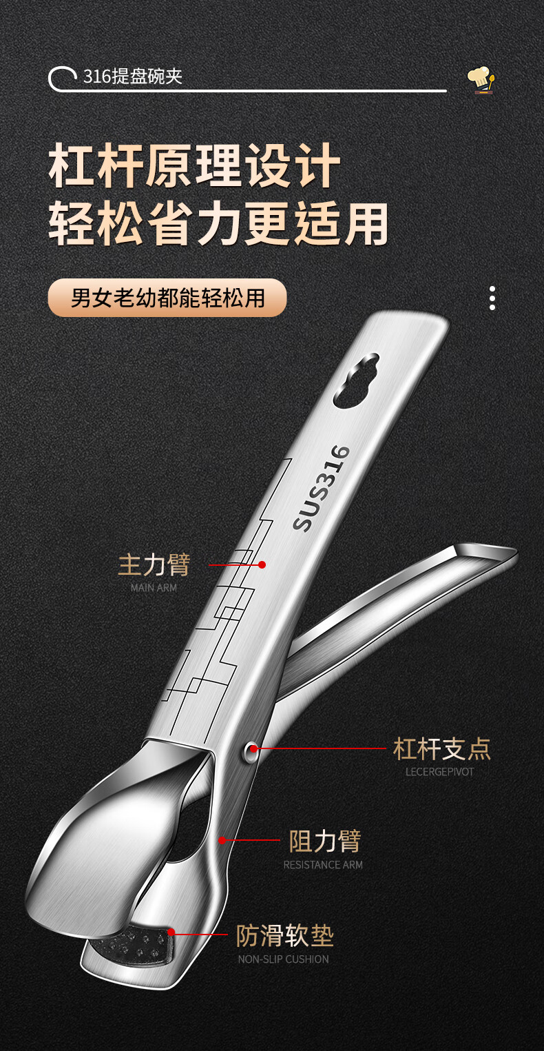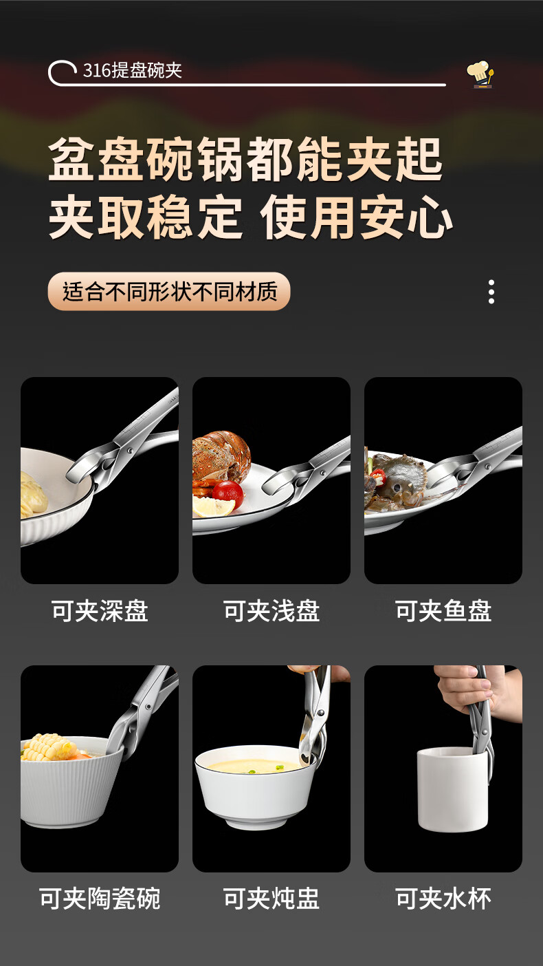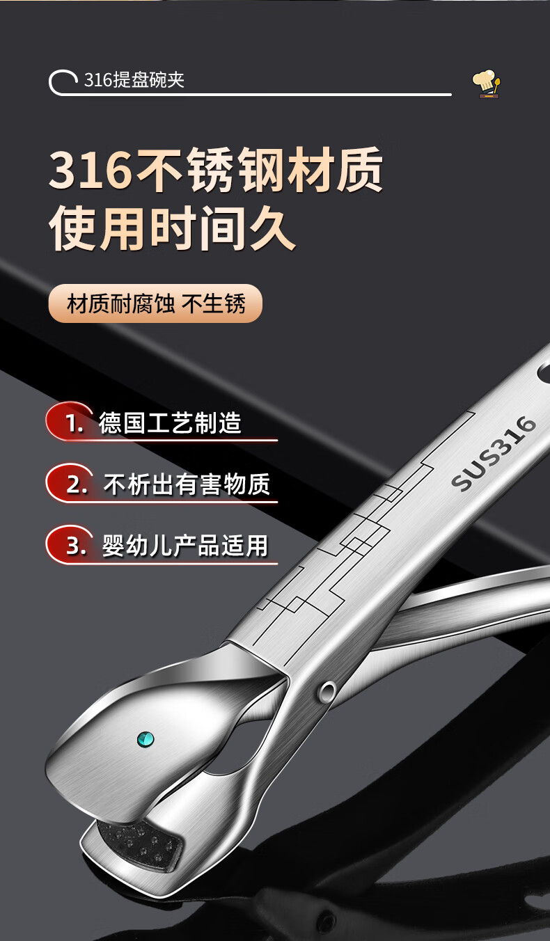 Baichunbao 316 stainless steel anti-scalding bowl clamp casserole clamp plate bowl clamp kitchen 316 steel bowl clamp + 304 steel 4cm steam rack