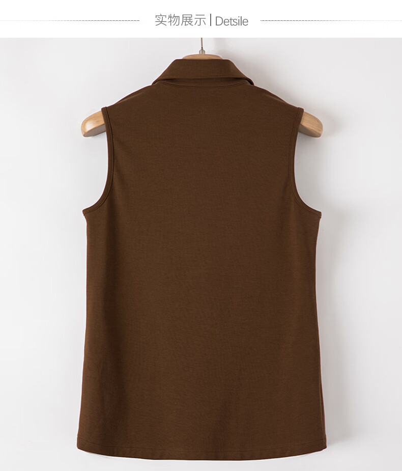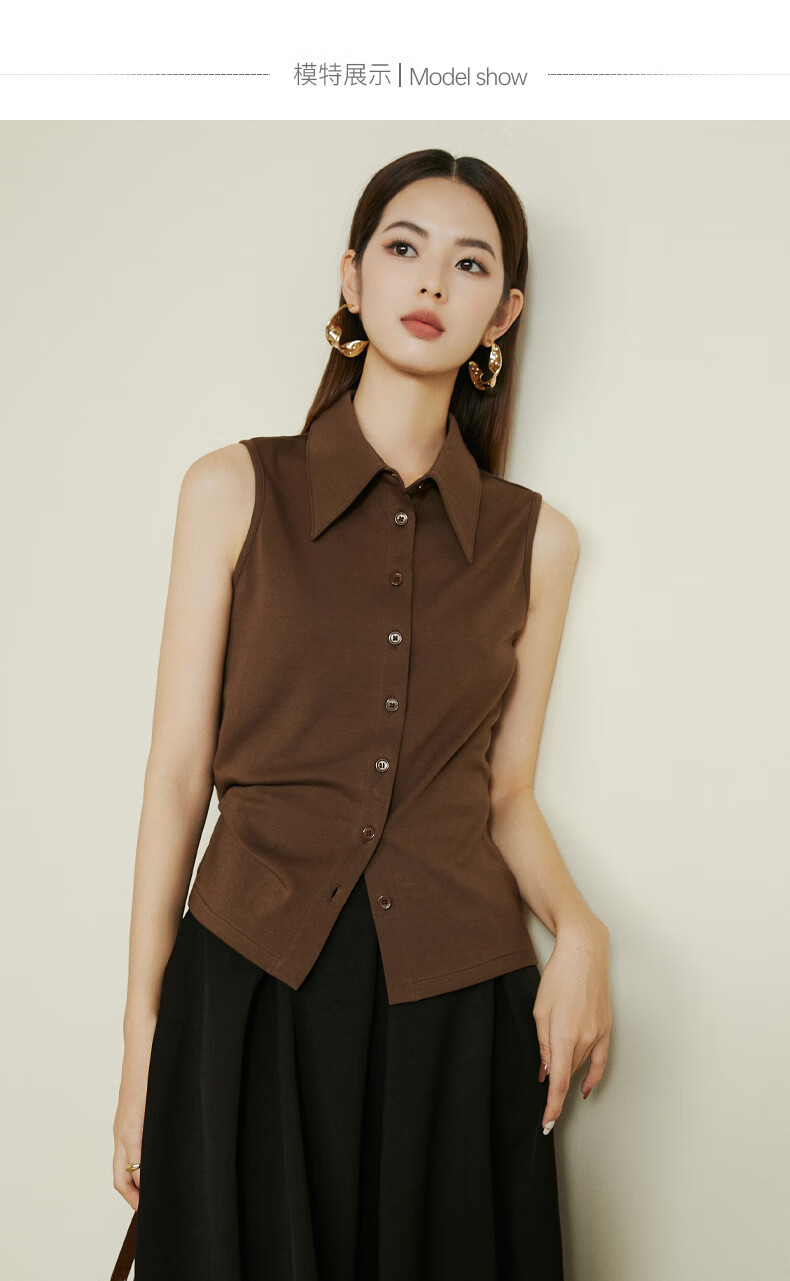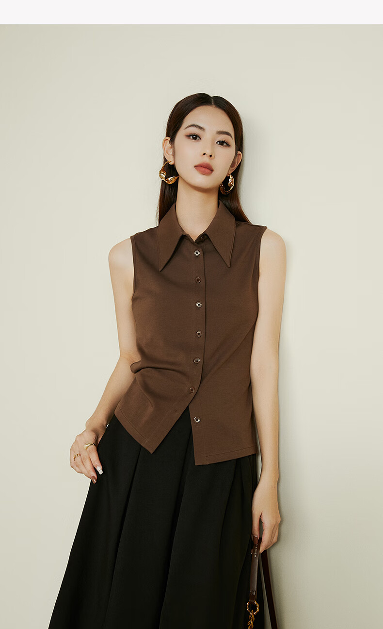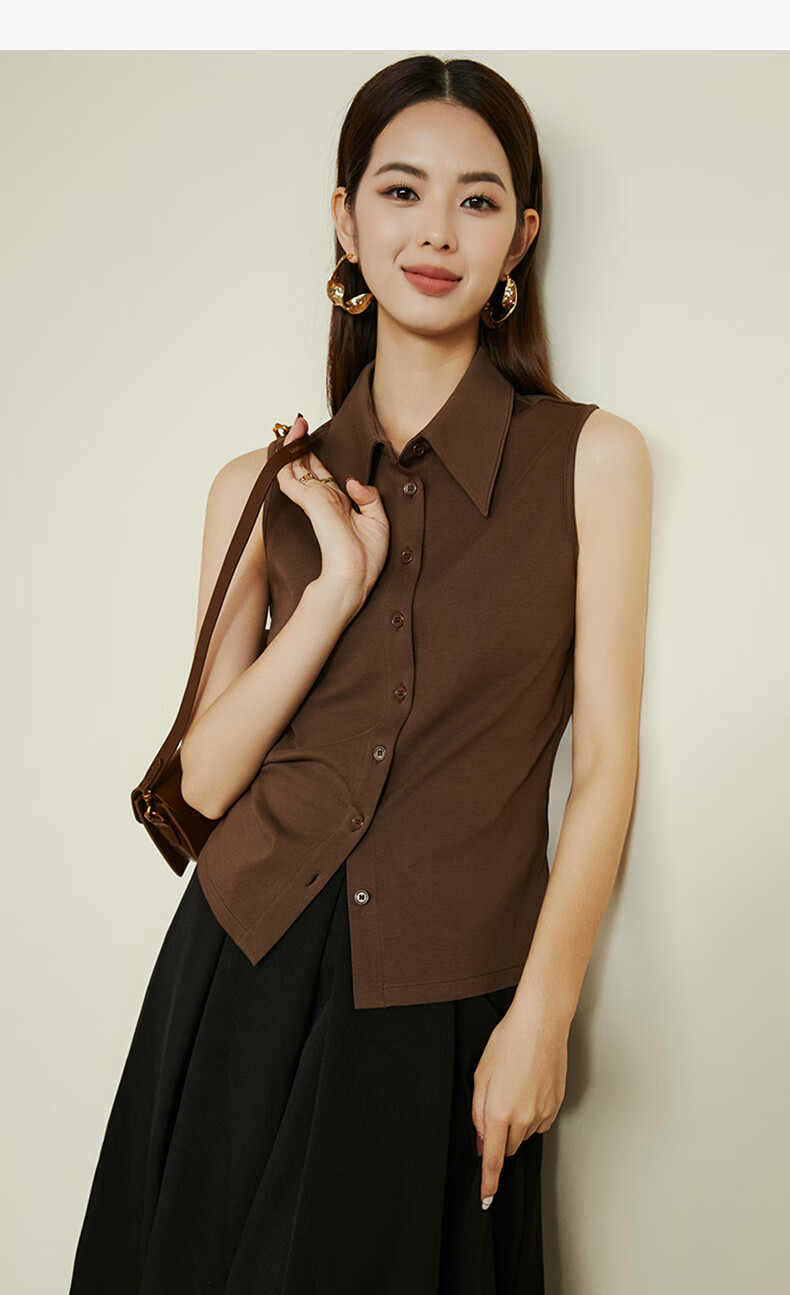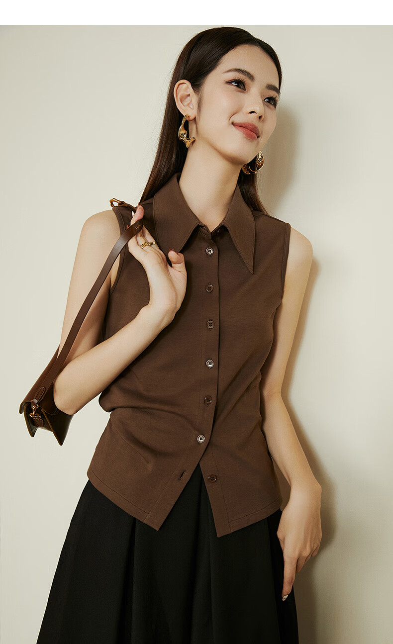 Late white new product 2026 spring layering artifact cotton lapel top simple and versatile commuting sleeveless shirt for women coffee color XL