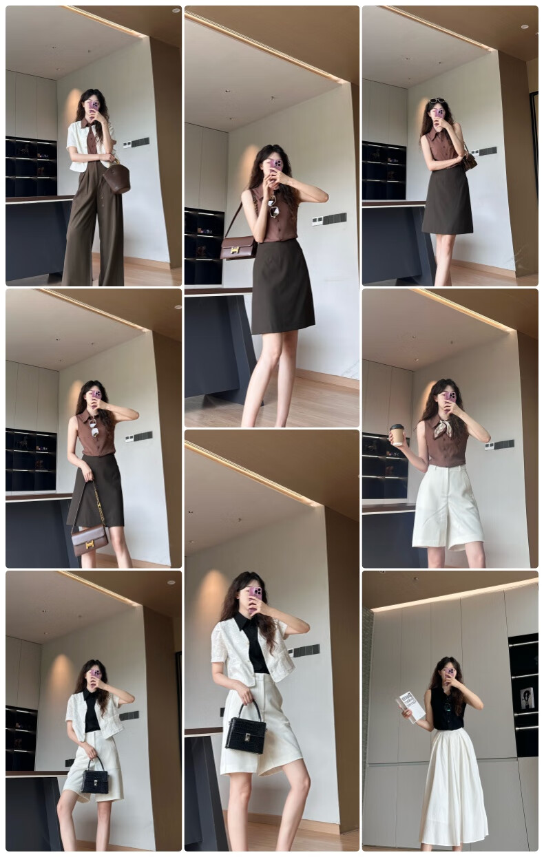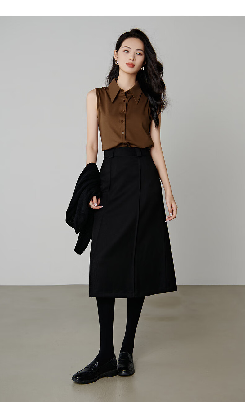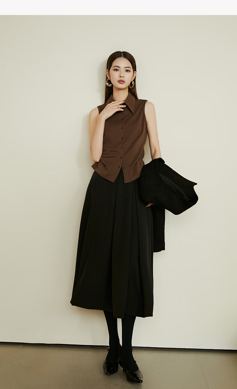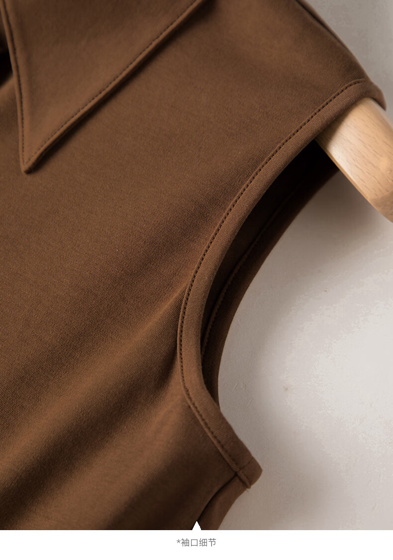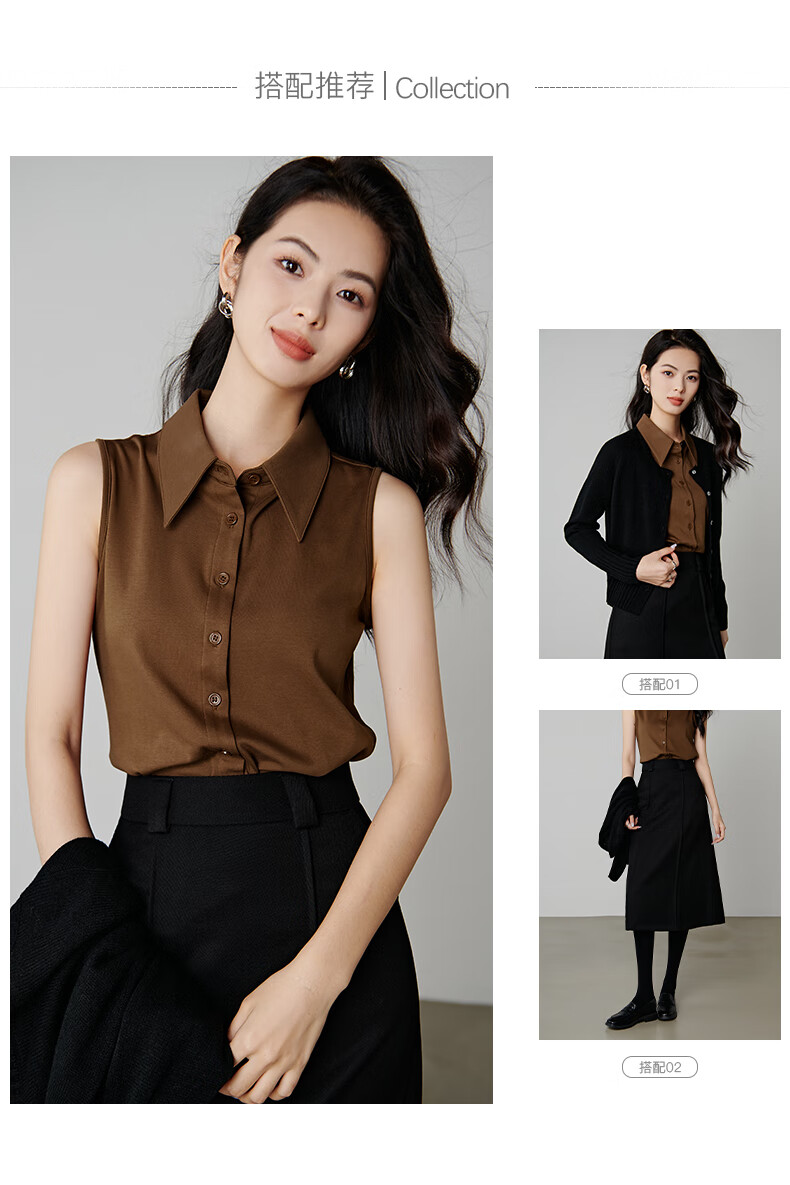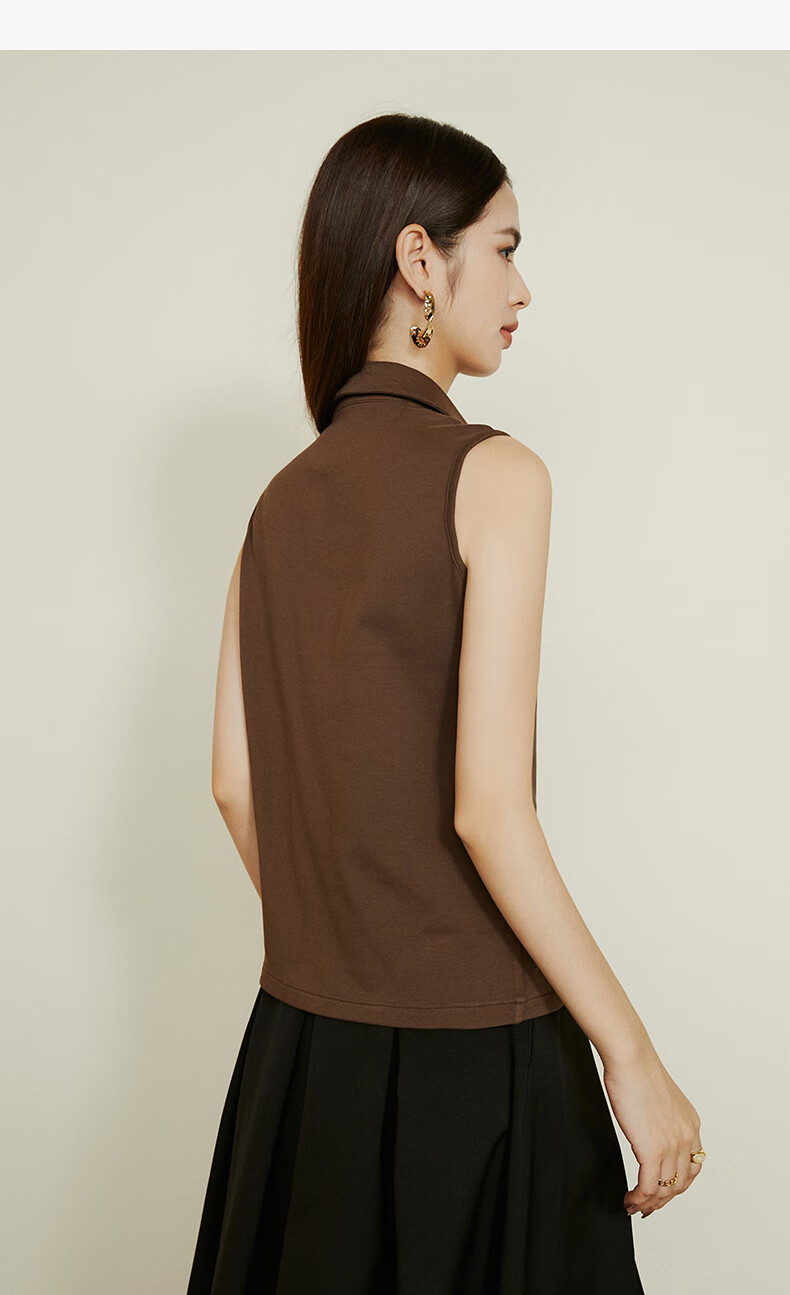 Late white new product 2026 spring layering artifact cotton lapel top simple and versatile commuting sleeveless shirt for women coffee color XL