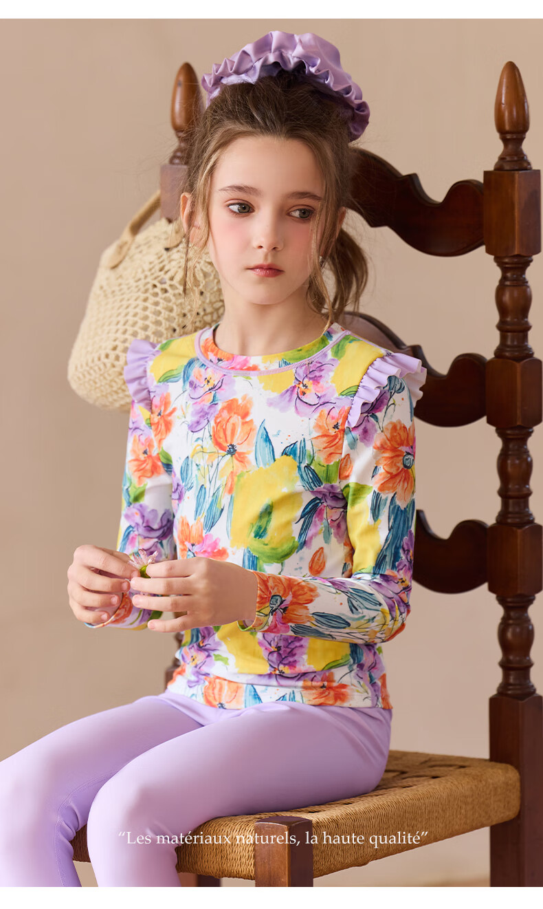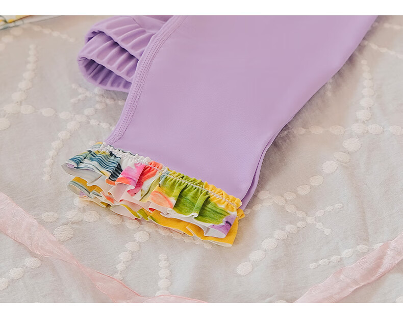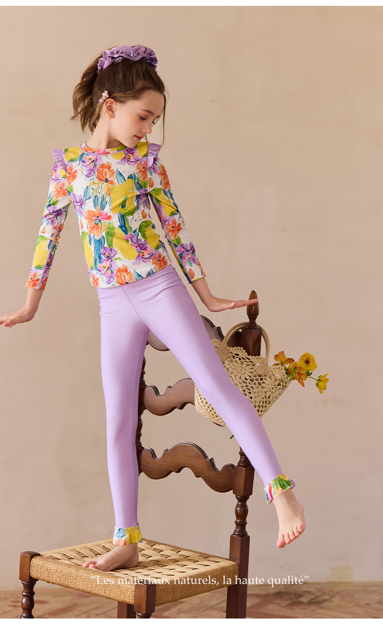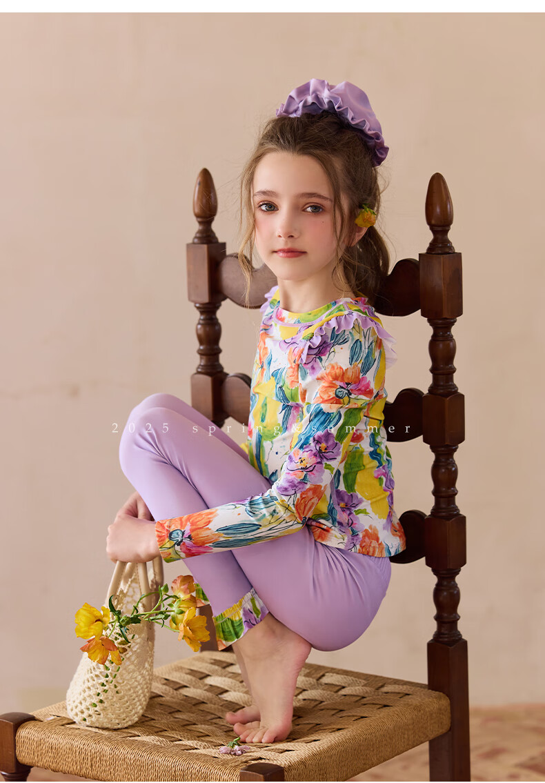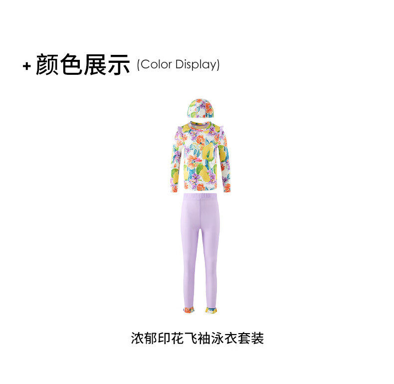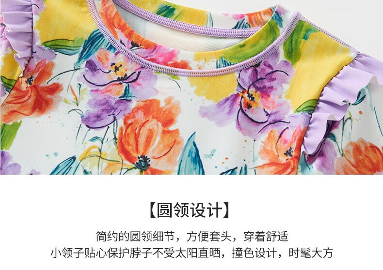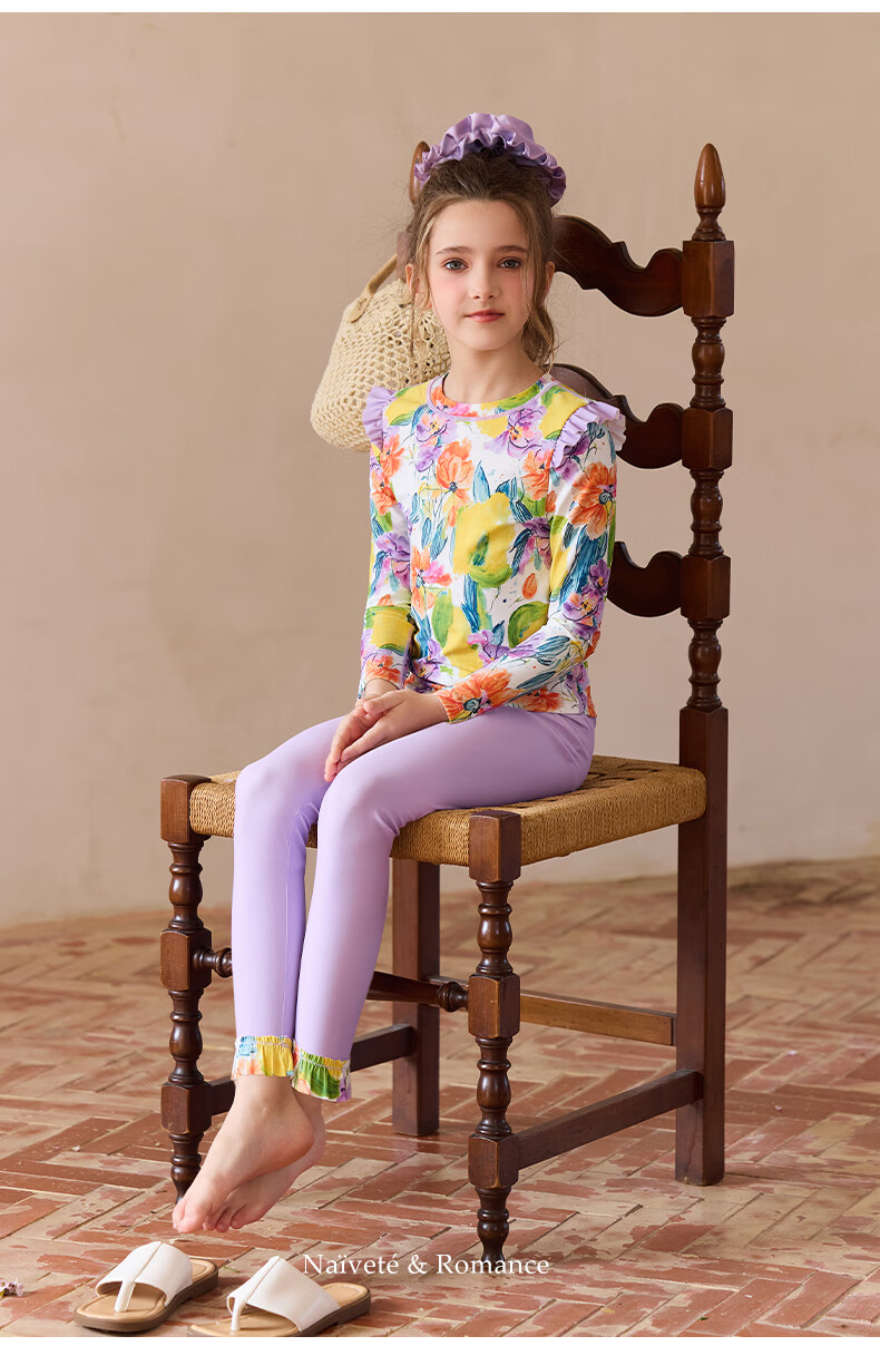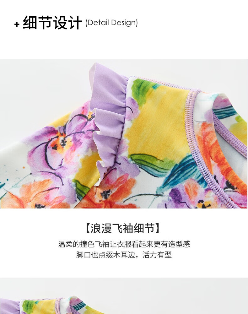 Little Naive girls split swimsuit summer new style printed flying sleeves children's sun protection swimming suit printed purple 130
