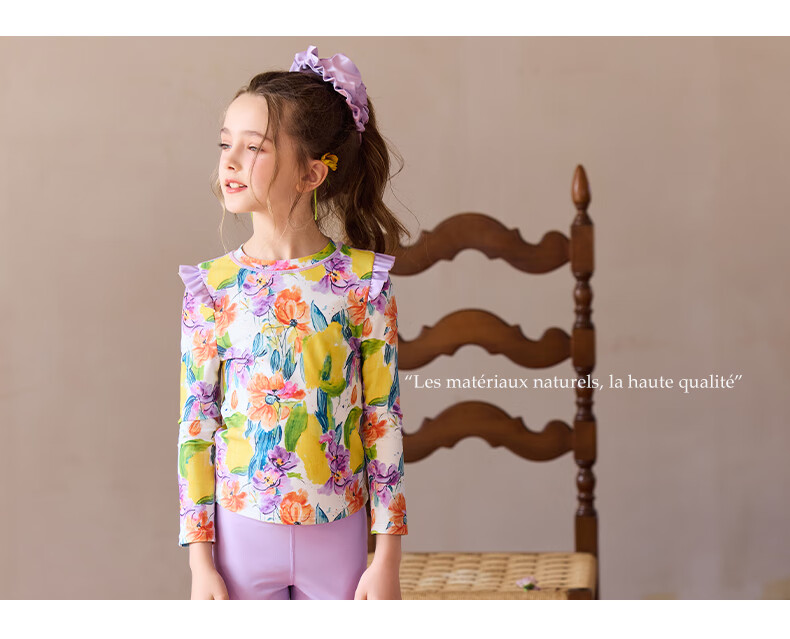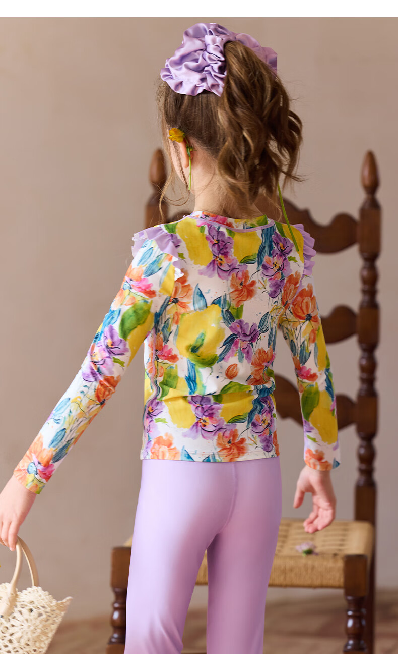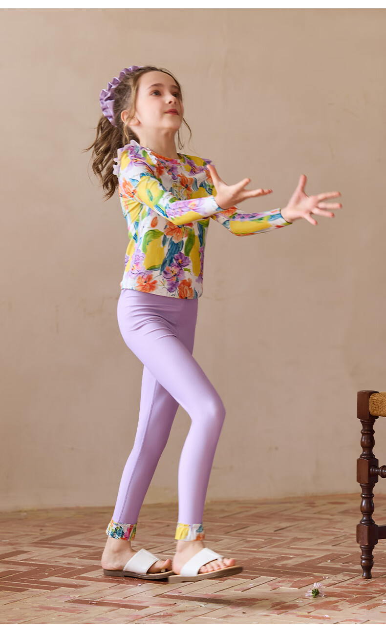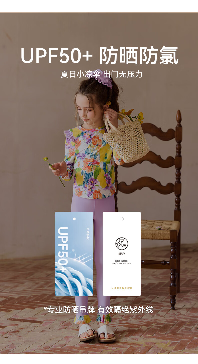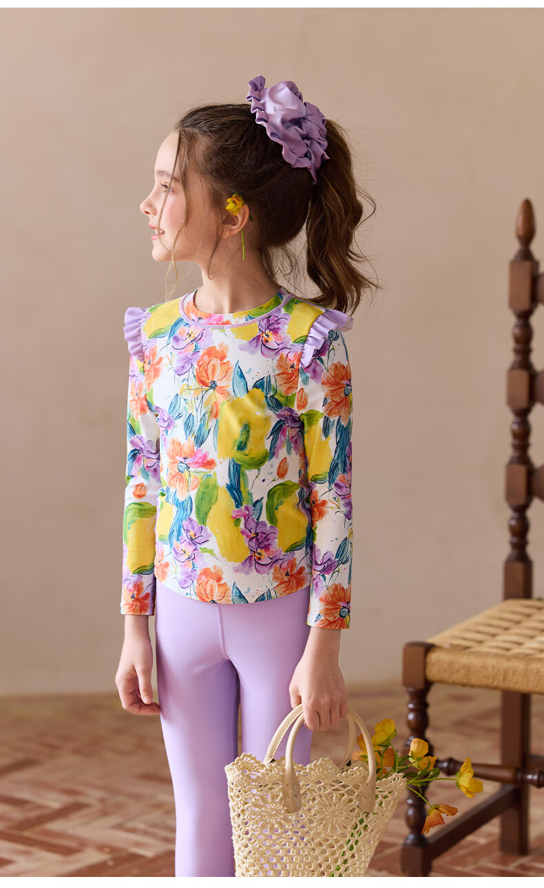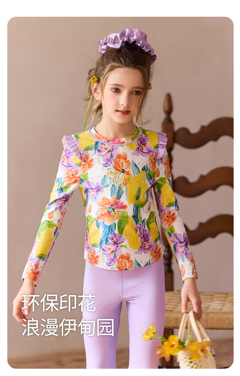 Little Naive girls split swimsuit summer new style printed flying sleeves children's sun protection swimming suit printed purple 130