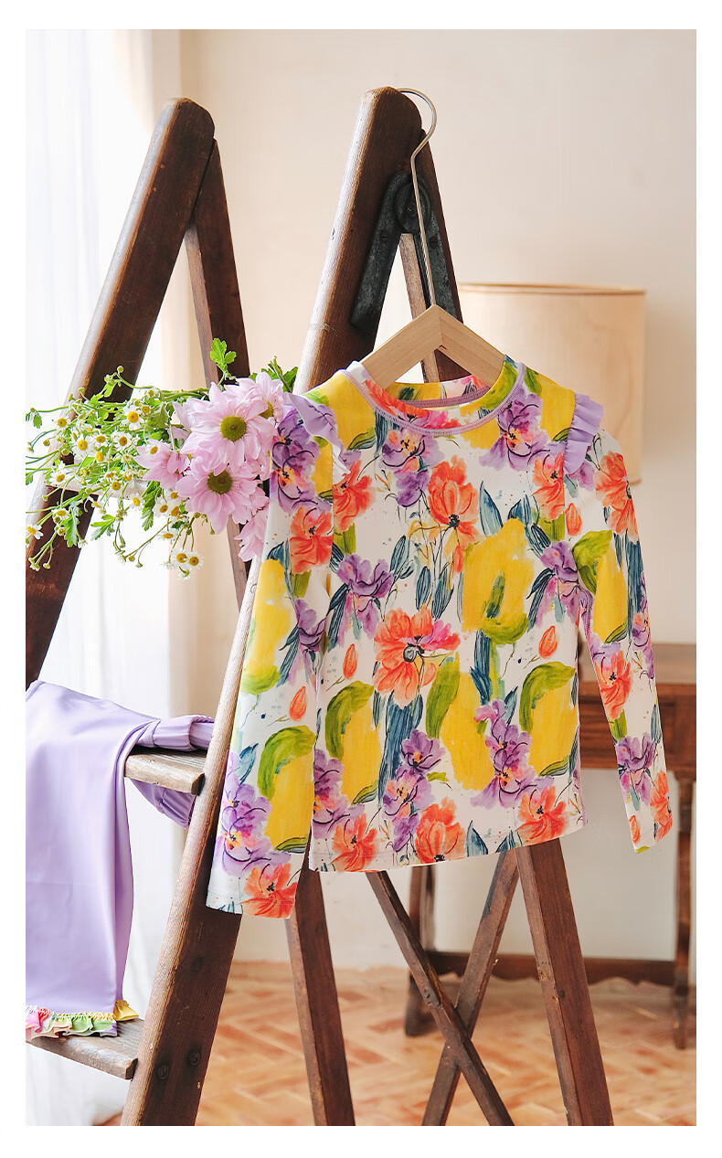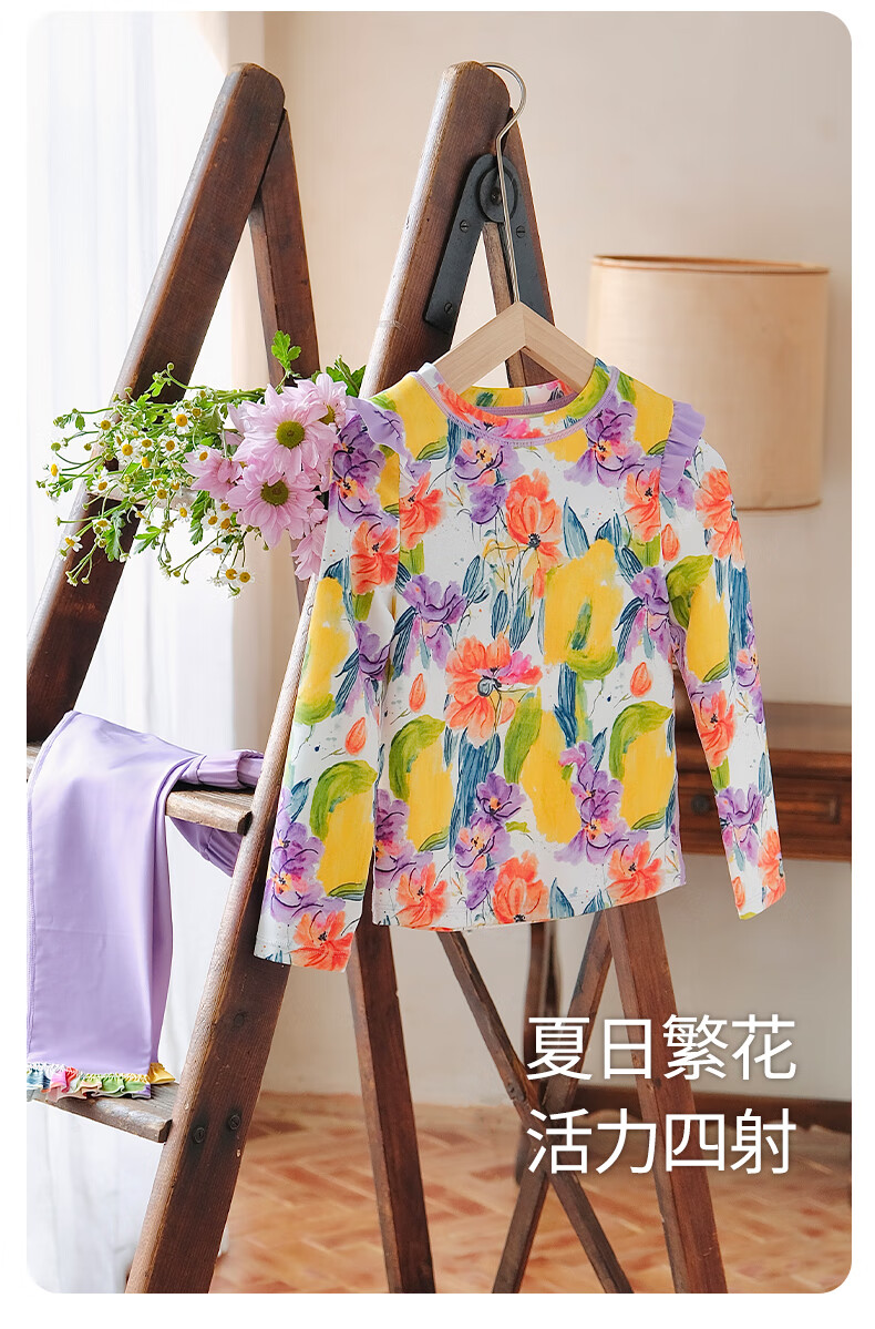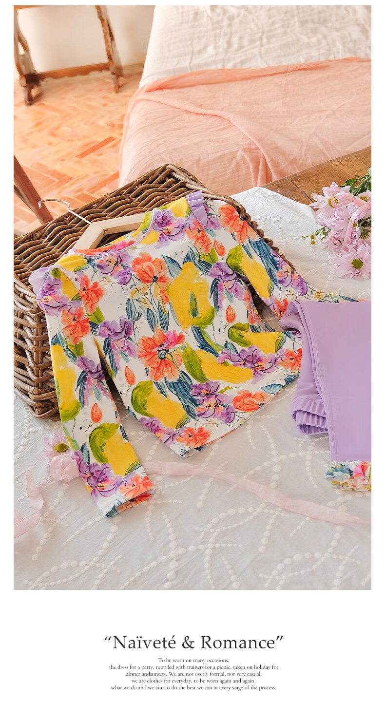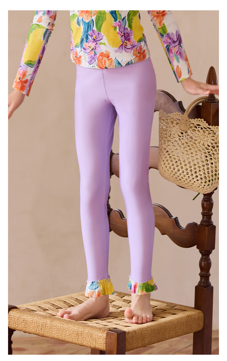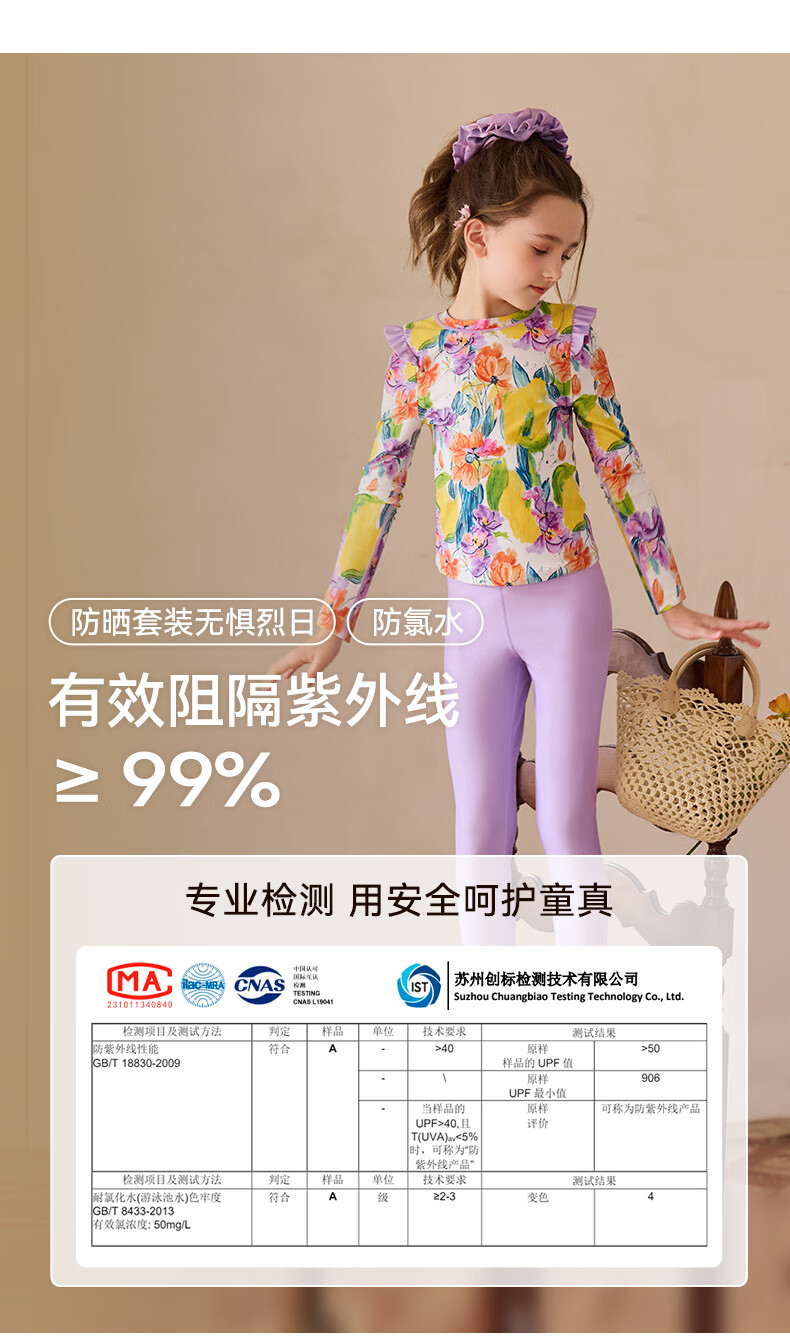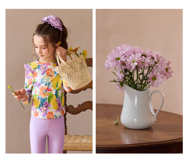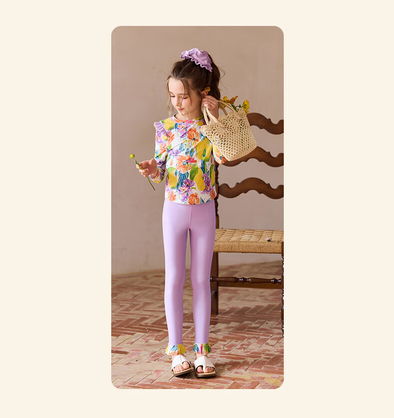 Little Naive girls split swimsuit summer new style printed flying sleeves children's sun protection swimming suit printed purple 130
