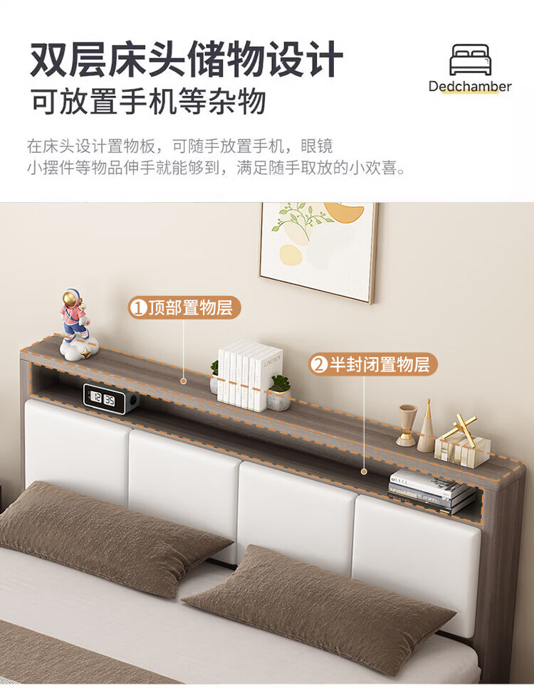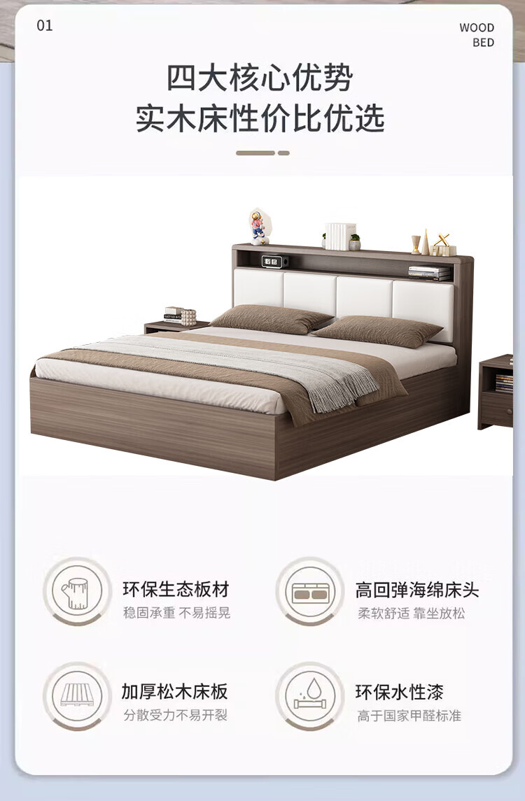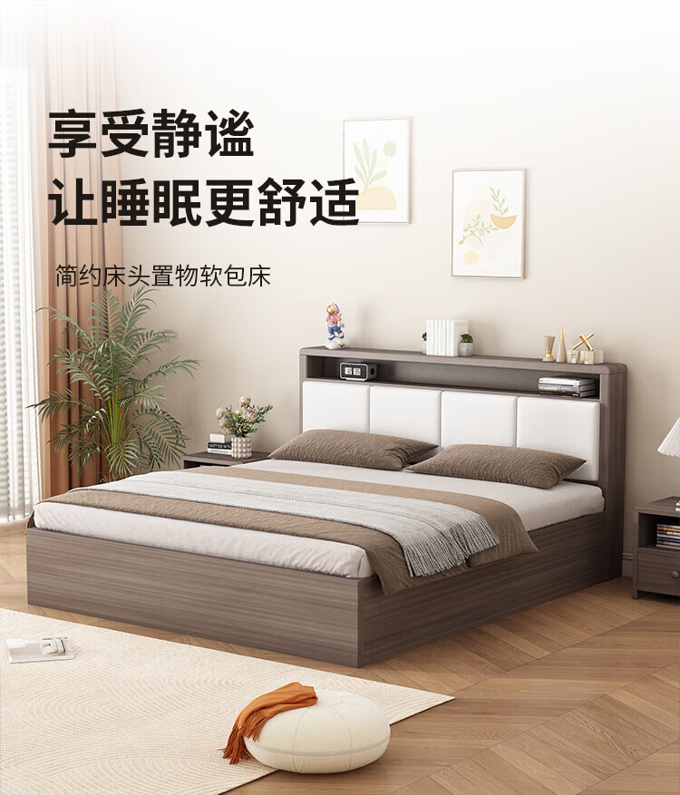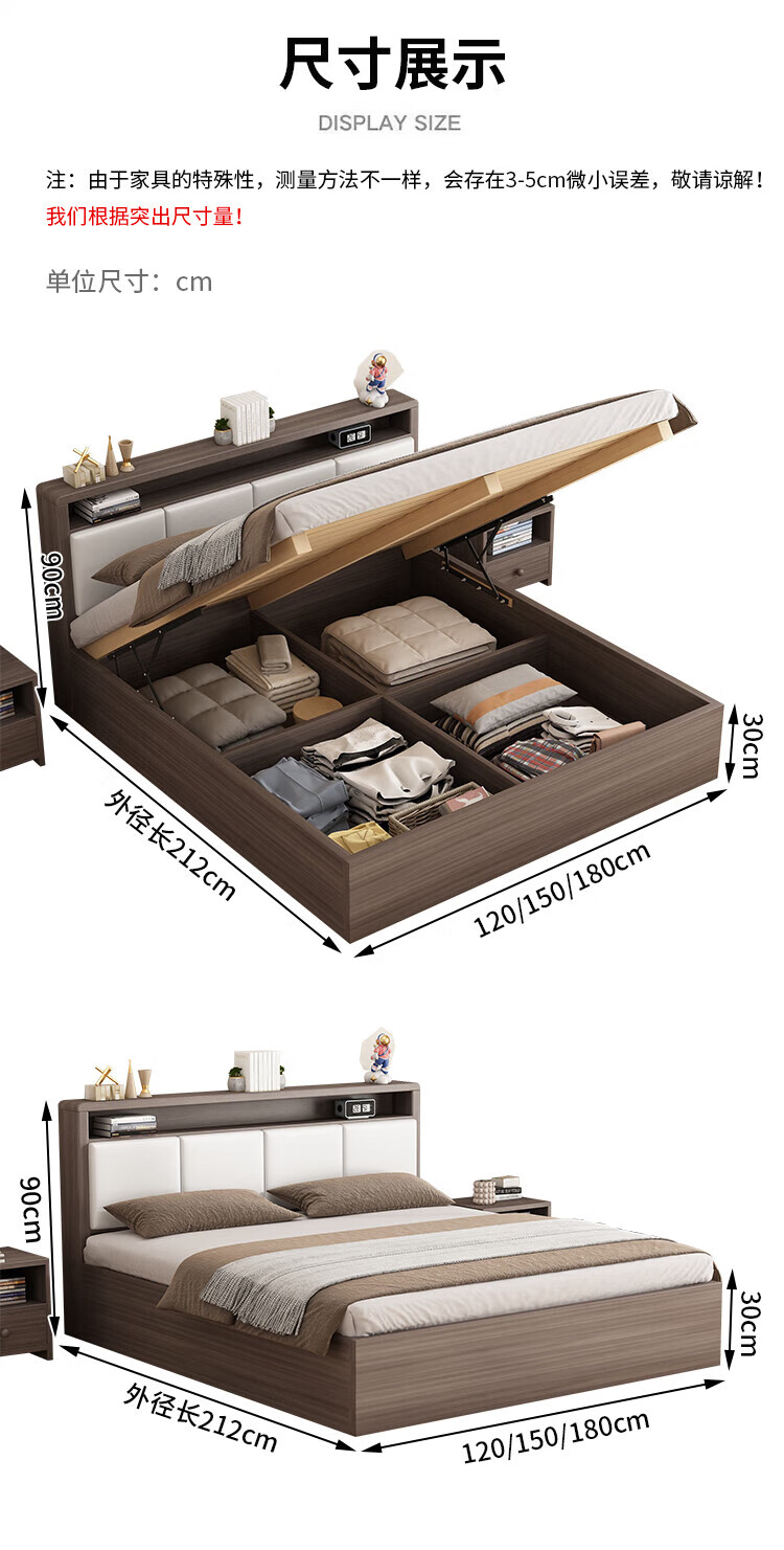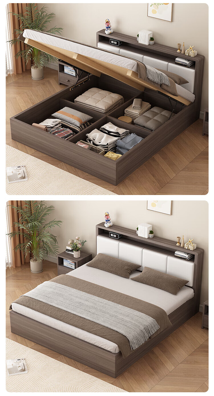 Shengfeile bed air pressure high box storage bed 1.8m double solid wood bed master bedroom simple storage bed single bed air pressure type 1.5m*2.0m air pressure type