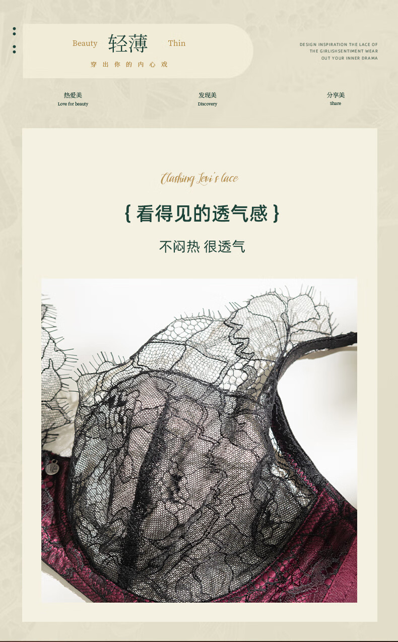 Atelier intimo Xunyou series eyelash lace women's underwear bra Daihei-3/4 cup single bra 80B