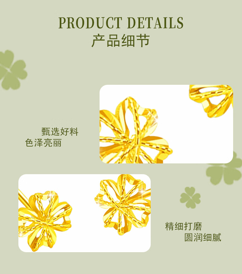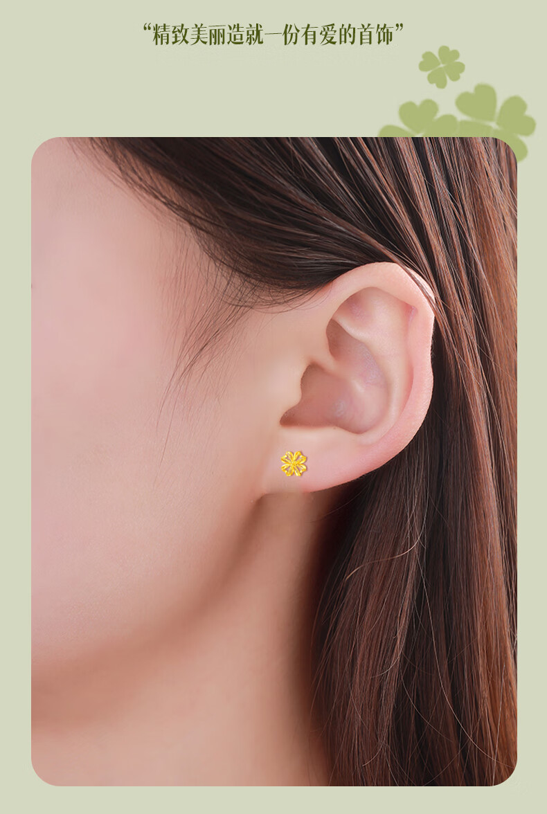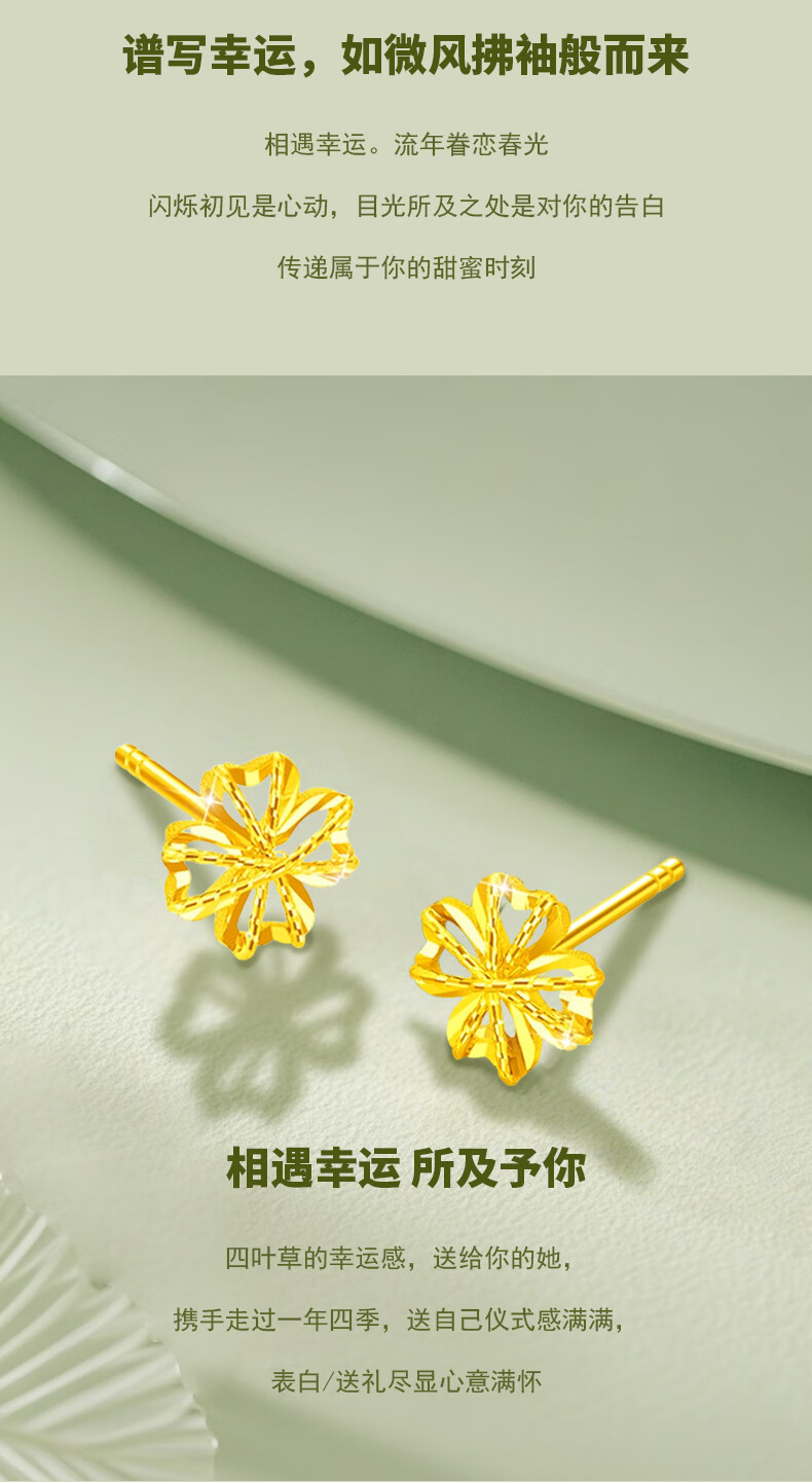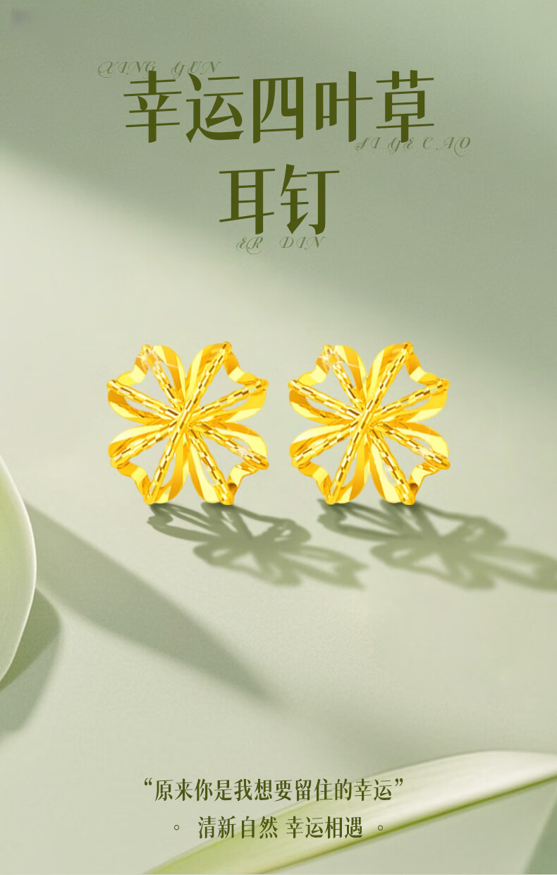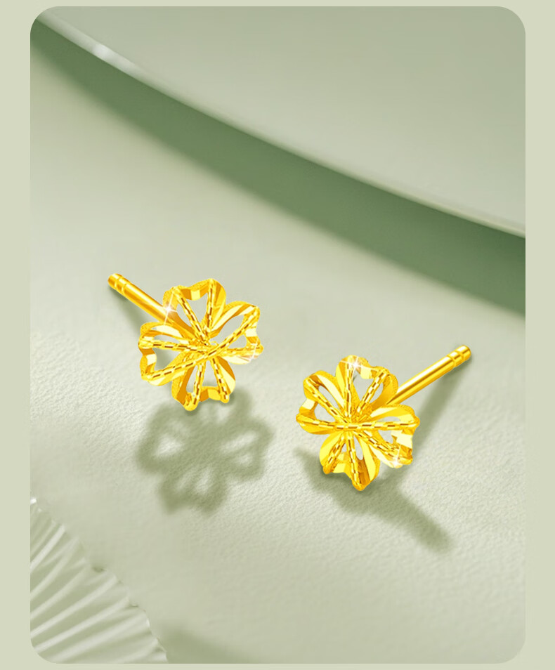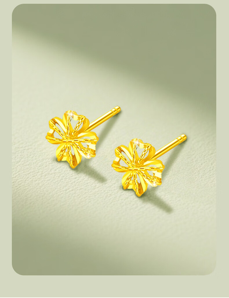 CHINA GOLD 18K Gold Stud Earrings for Women Lucky Wound Four-leaf Clover Earrings Chinese Valentine's Day Birthday Gift for Girlfriend and Wife 18K Wound Four-leaf Clover Earrings