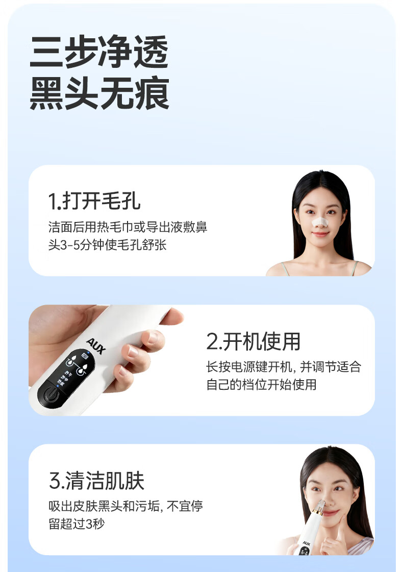AUX blackhead extractor, blackhead remover for men and women, facial blackhead extractor, acne pore cleaner, blackhead remover, cleansing beauty instrument, vacuum adsorption rechargeable blackhead instrument, holiday gift, rechargeable blackhead instrument