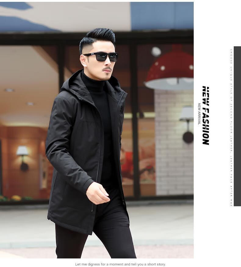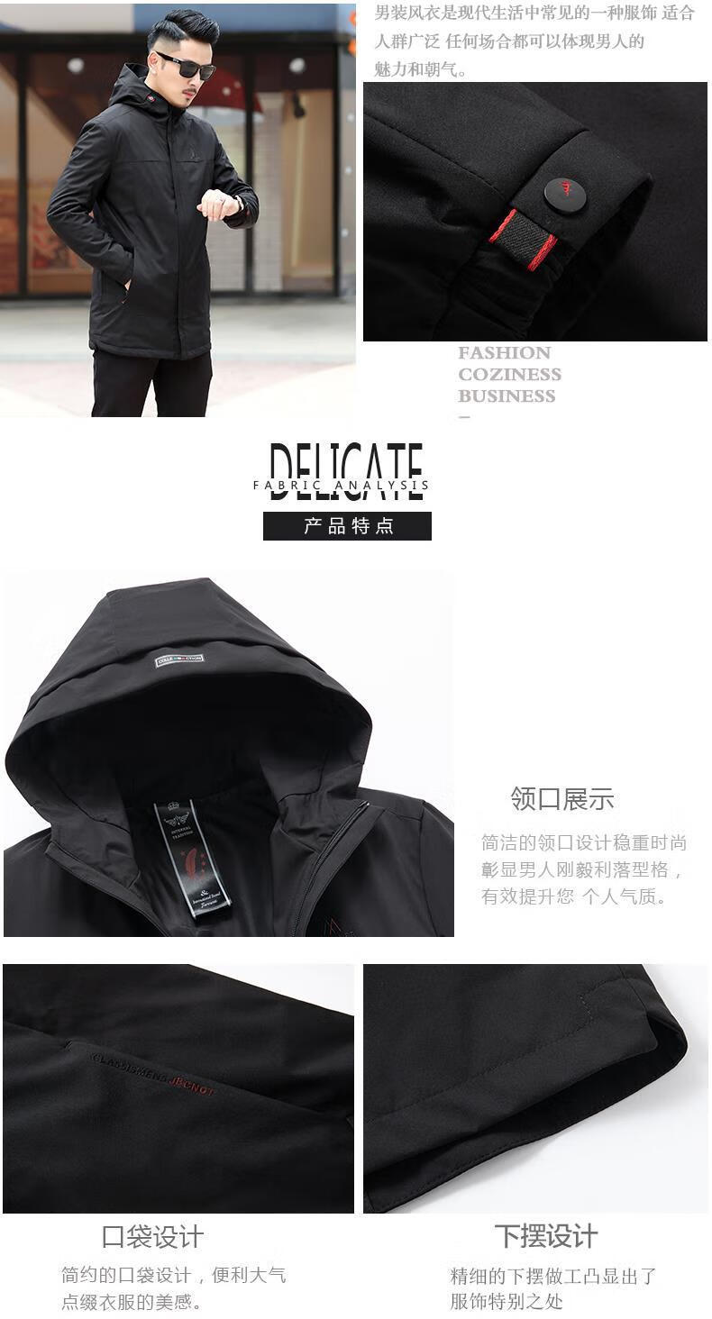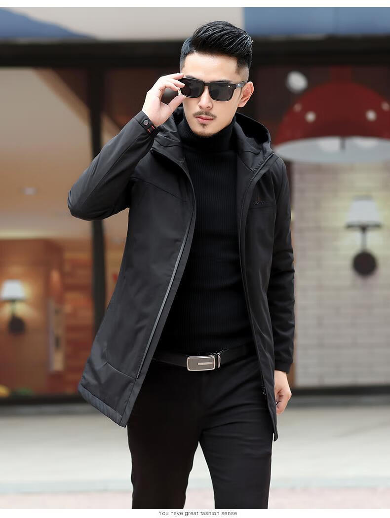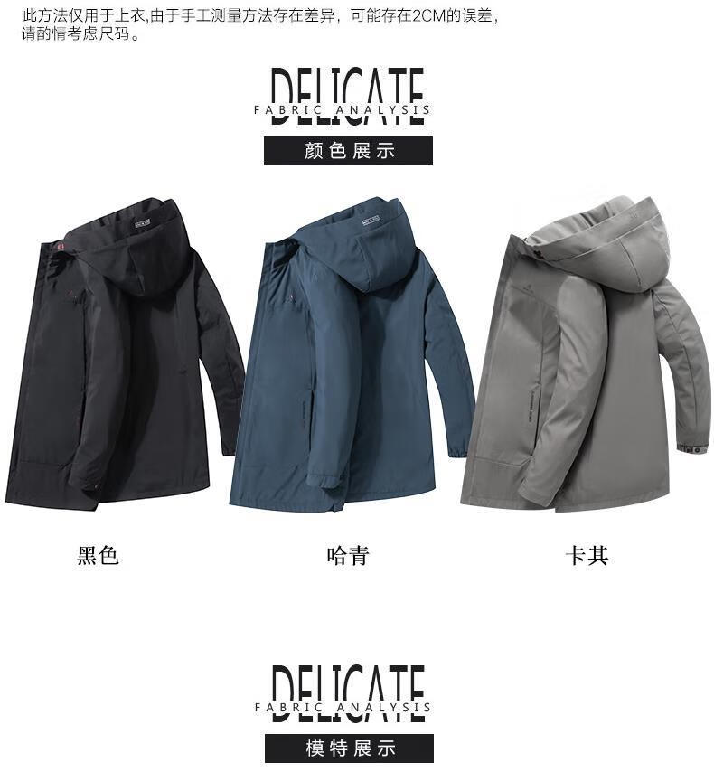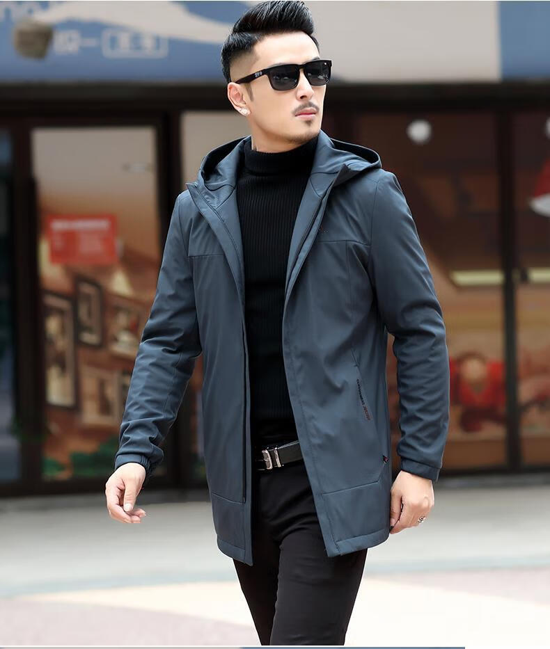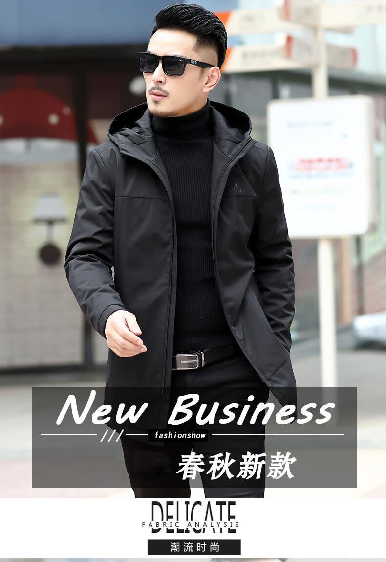 Ветровка BABOCHEN, мужская повседневная куртка средней длины с капюшоном, весна-осень 2025, новая хлопковая куртка, весеннее верхнее пальто, модное черное хлопковое стильное пальто L