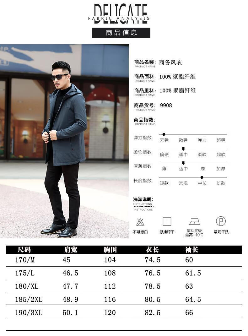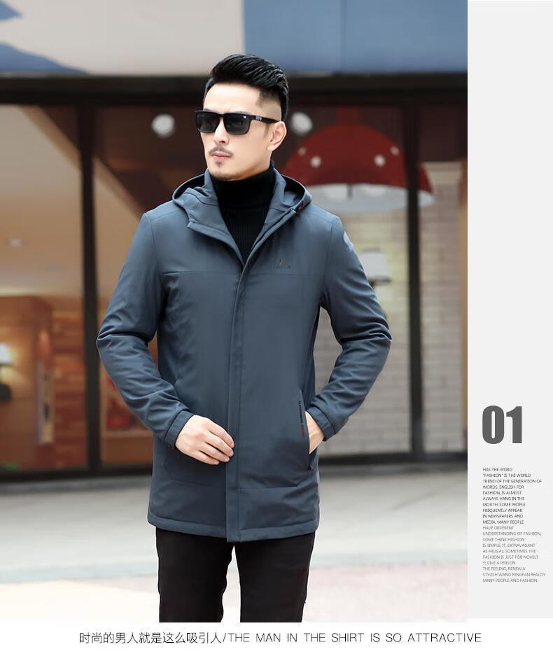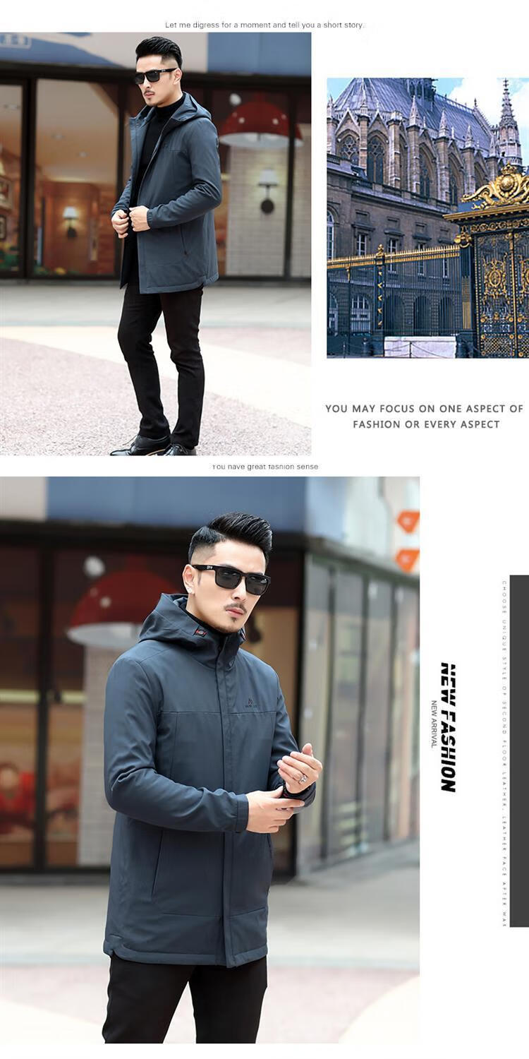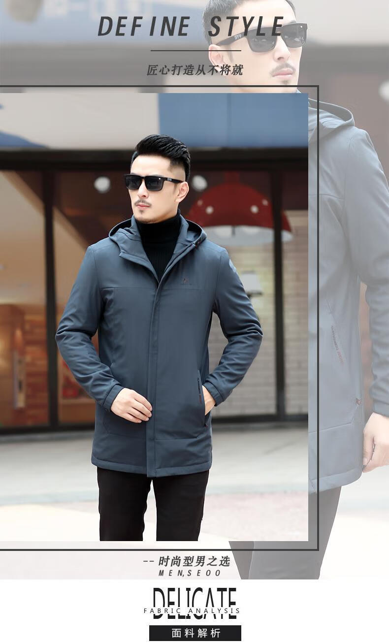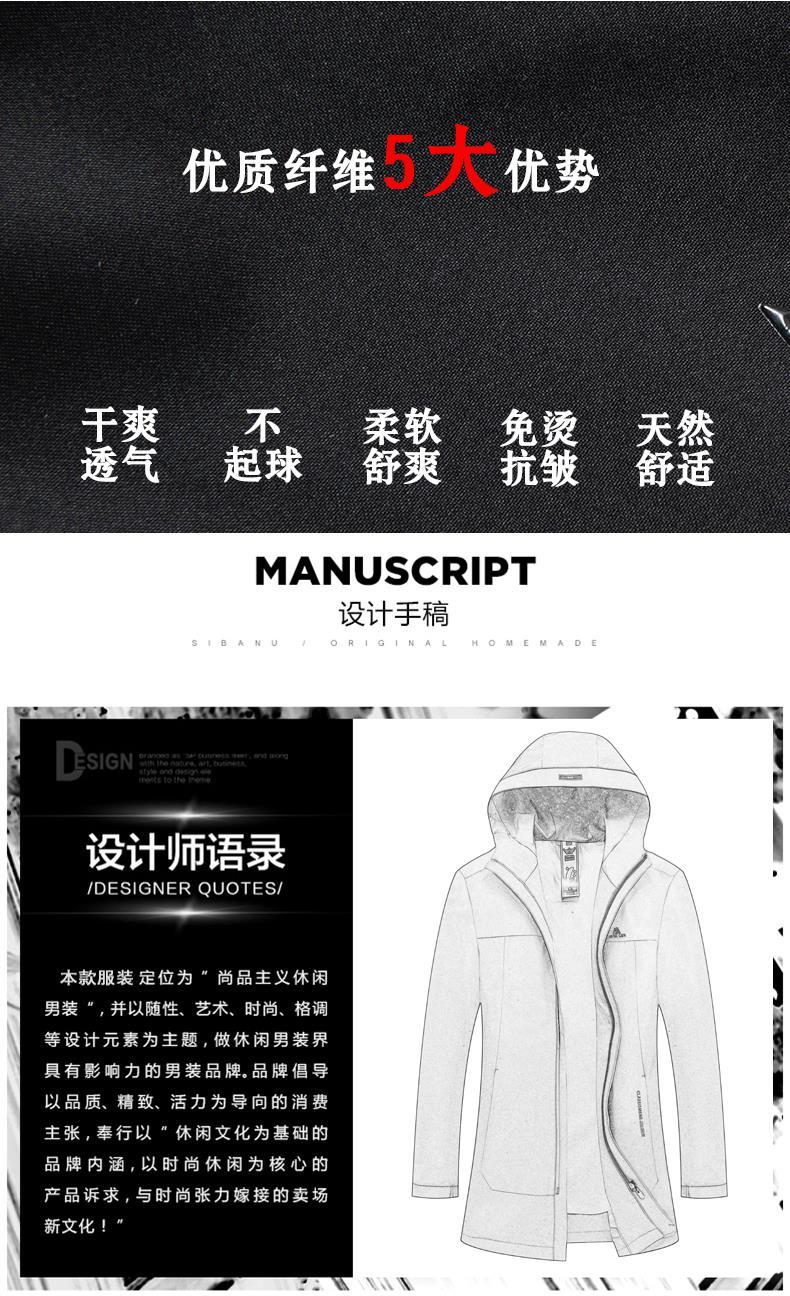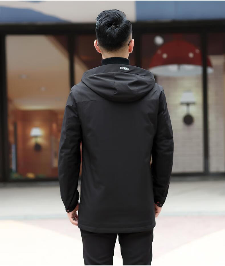 Ветровка BABOCHEN, мужская повседневная куртка средней длины с капюшоном, весна-осень 2025, новая хлопковая куртка, весеннее верхнее пальто, модное черное хлопковое стильное пальто L