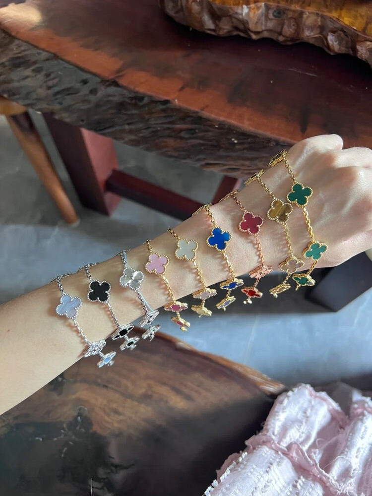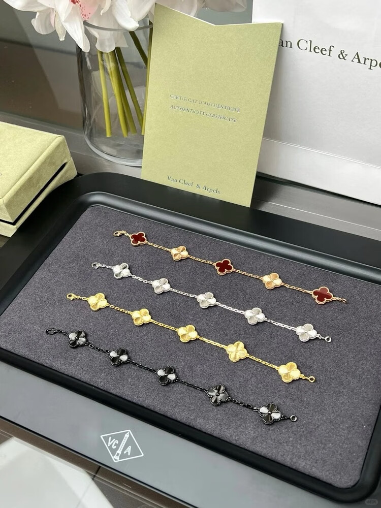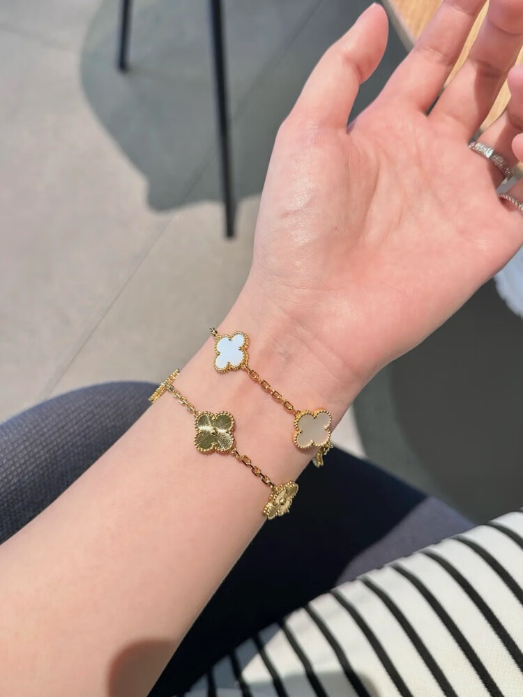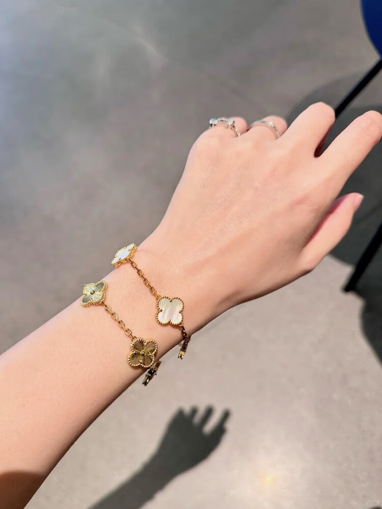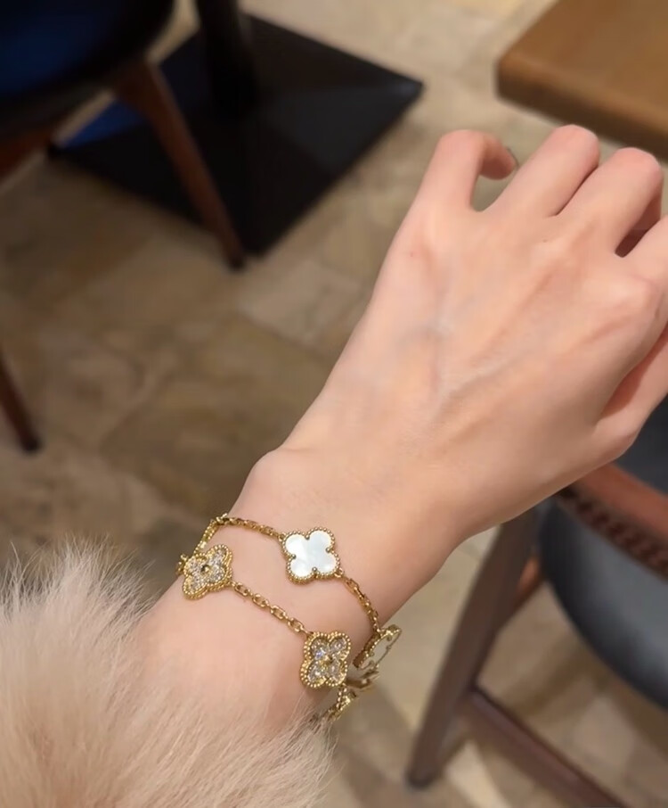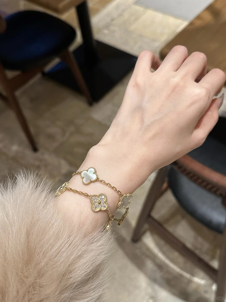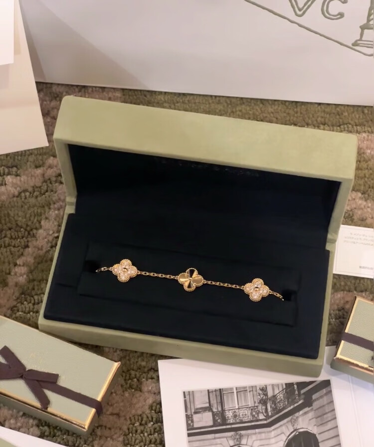 VCA Van Cleef's same four-leaf clover 18K gold bracelet for girls, light luxury high-end five-flower bracelet, versatile gift, gold white mother-of-pearl precision five-flower bracelet, with counter gift box